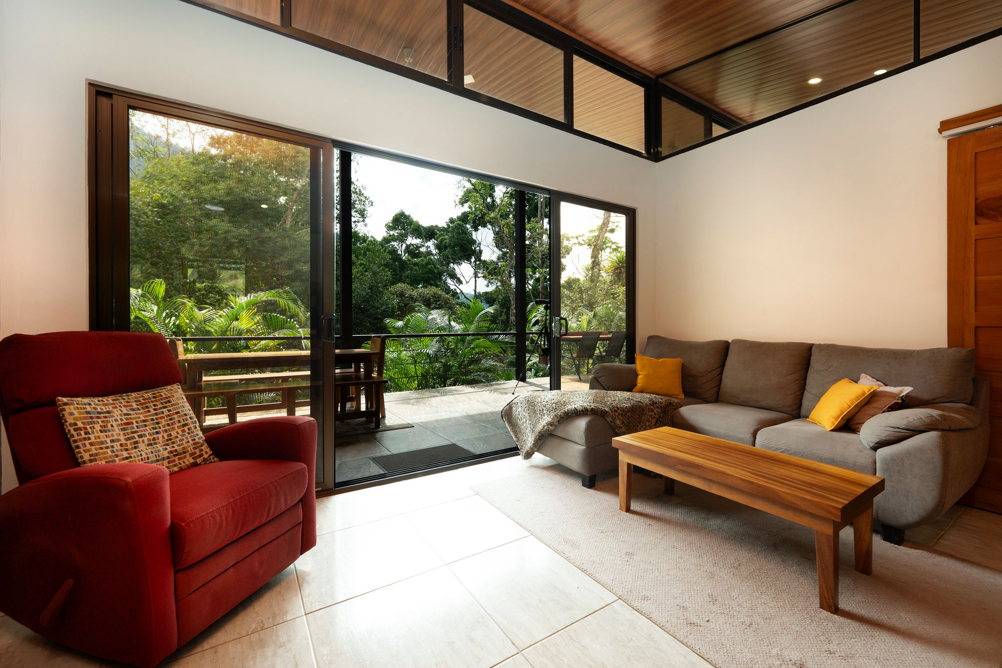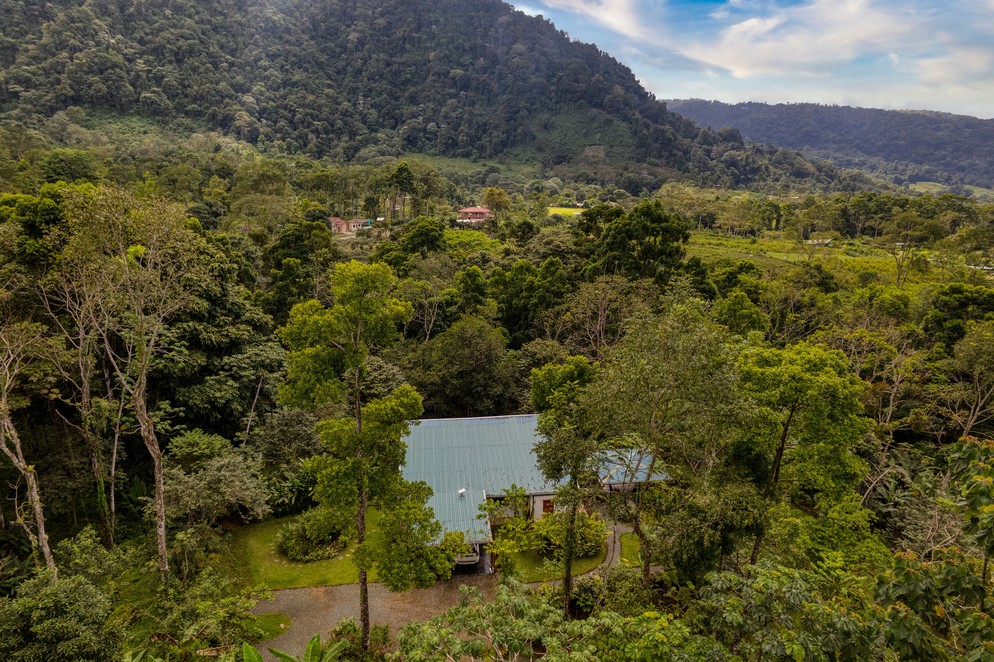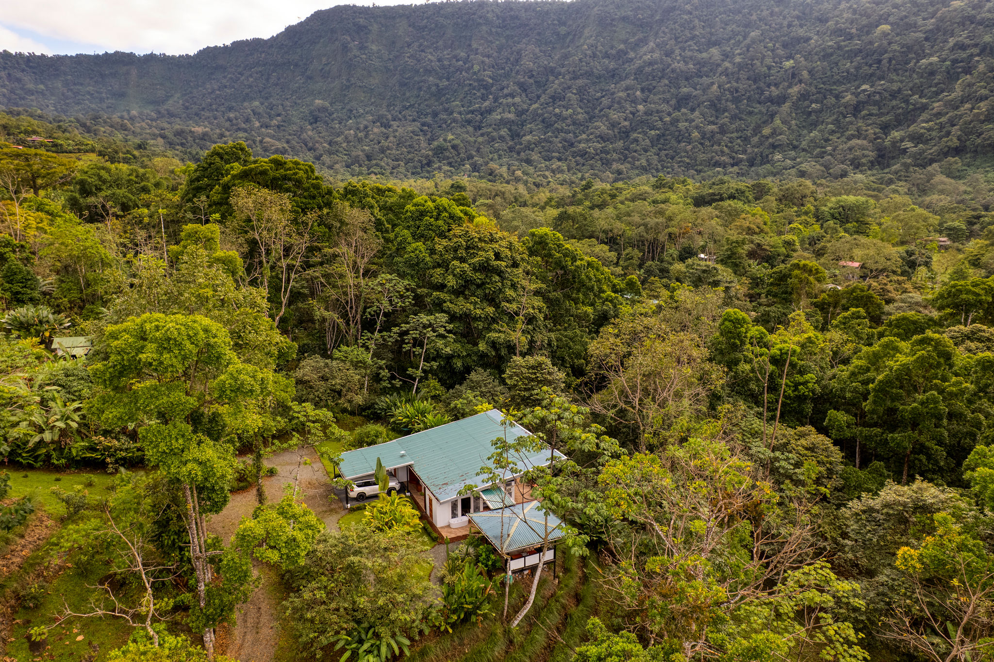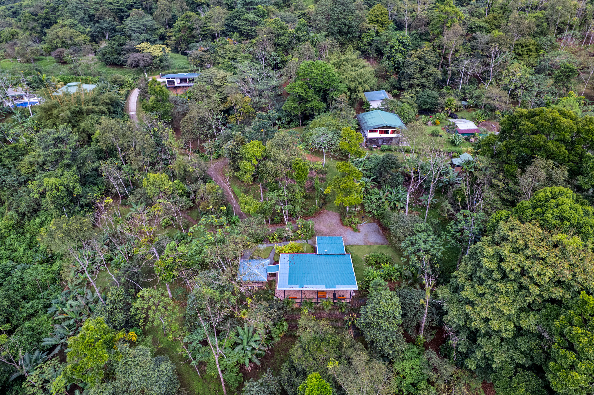 A private interior driveway meanders through the meticulously landscaped property with fruit trees to the main house or lower home. The home also has mountain views and more immersed feel of jungle off the porch with lots of wildlife frequenting the land. The home is also a modern design with open floor concept of the kitchen and the living room between the two bedrooms and baths. The living room and both bedrooms open to a large covered outdoor terrace perfect for lounging, bird watching, and enjoying the climate offered by the ideal elevation. The principal bedroom has a spacious on suite bathroom, as well, as outdoor shower and jacuzzi tub. A 3rd bedroom and bath could easily be added to this home if someone required a 3 bed/3 bath home. Owner would be willing to negotiate the addition of this bedroom and bath if required.