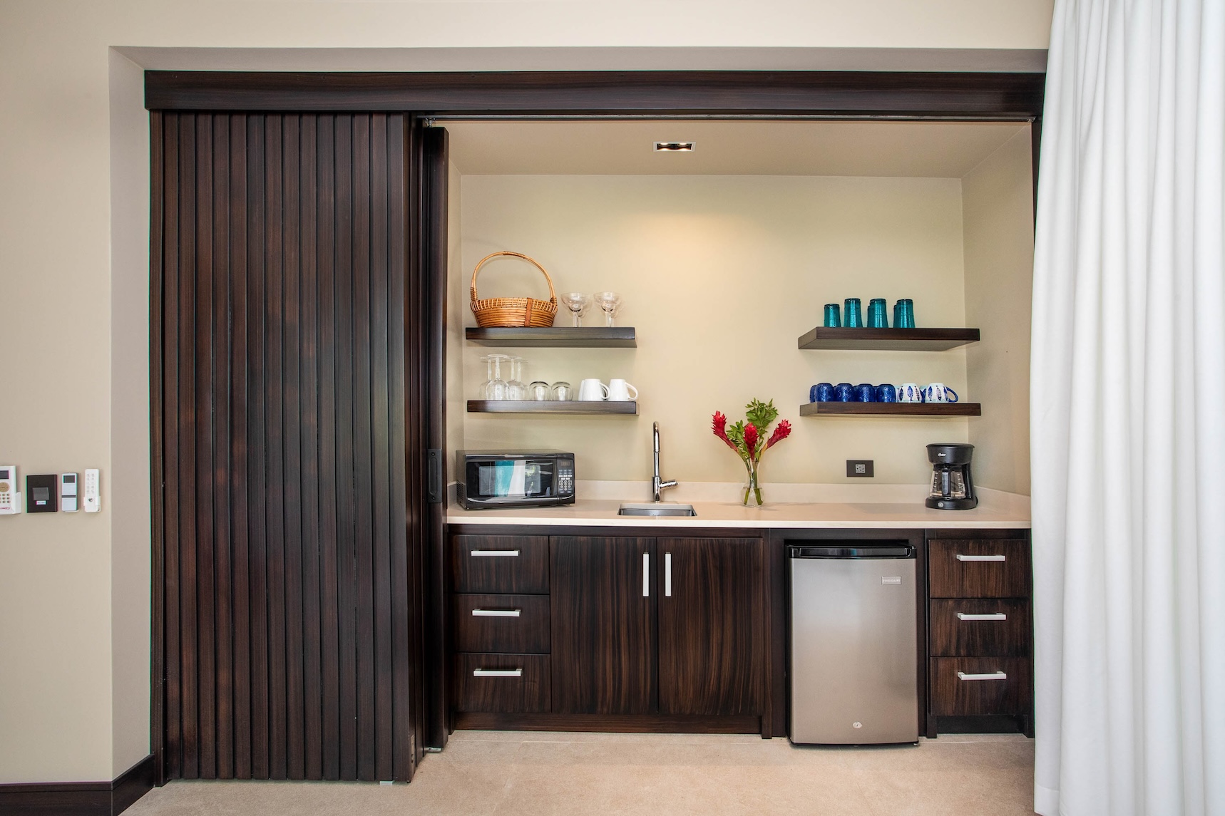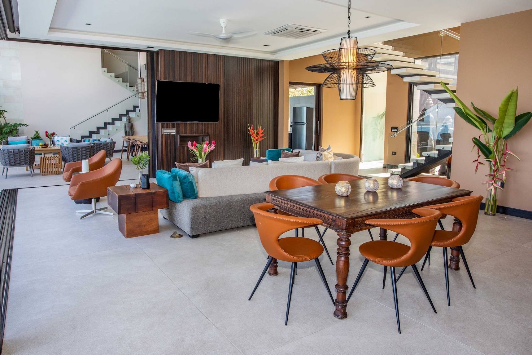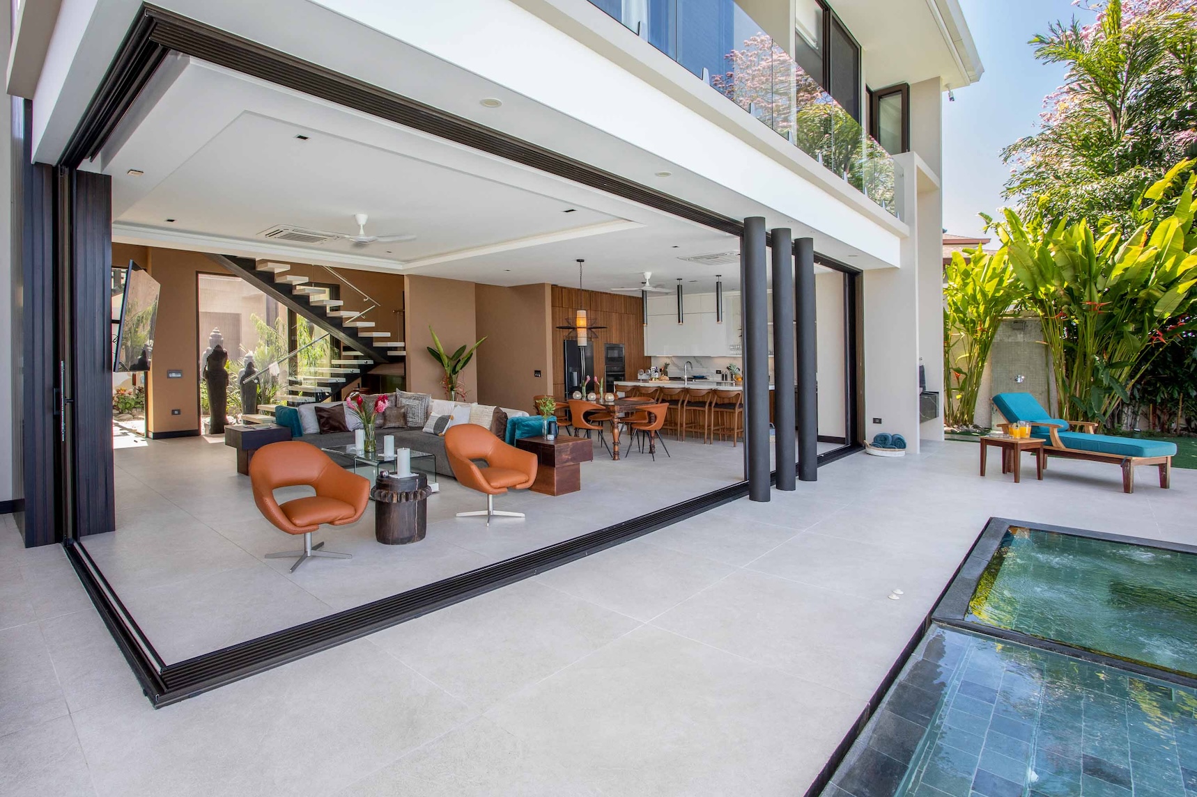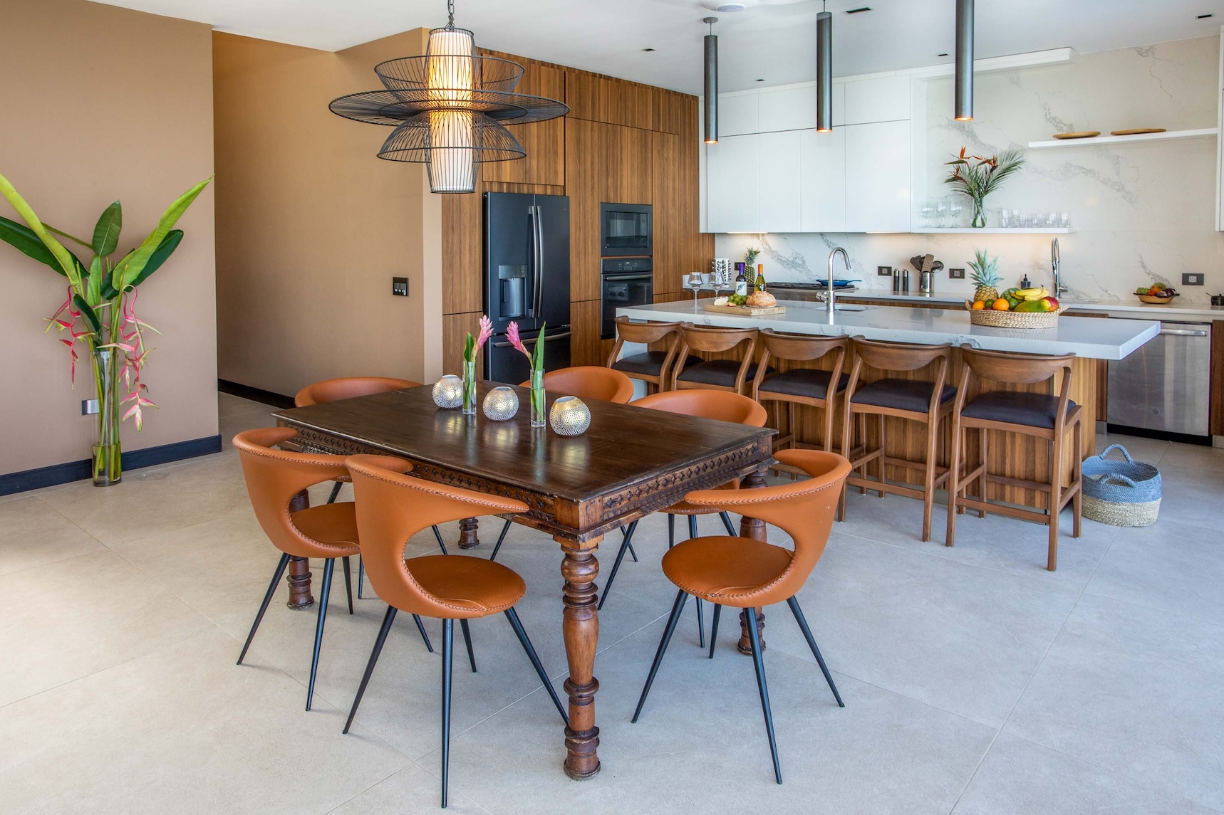 En la zona exterior, la piscina de borde infinito se mezcla visualmente con el Pacífico, creando un espacio de relajación sin igual. La amplia terraza cubierta incluye un área de comedor al aire libre y una parrilla Napoleón de primera línea, perfecta para disfrutar de cenas bajo el cielo tropical. Un medio baño y una ducha exterior brindan mayor comodidad al área de la piscina.