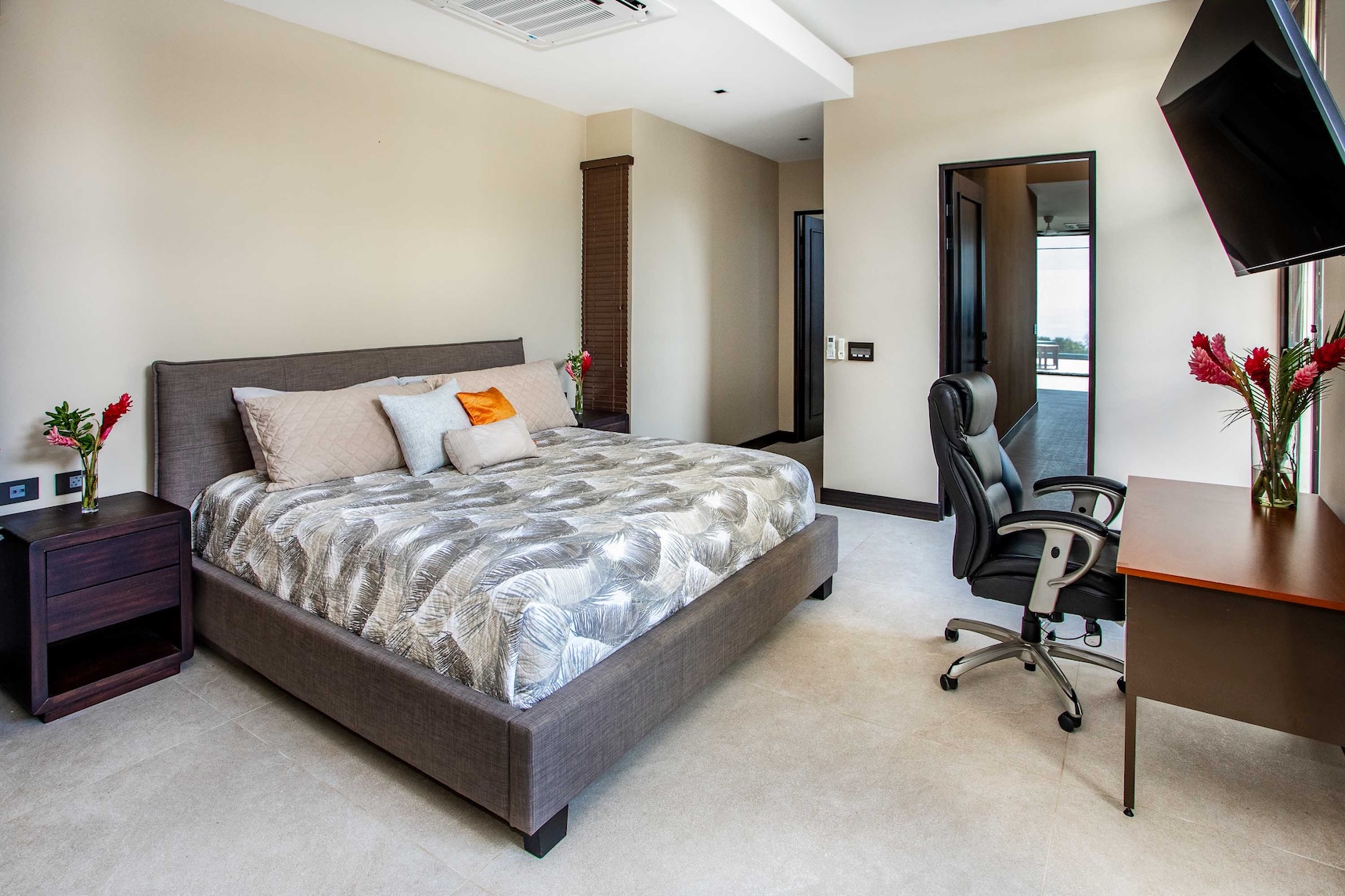 El interior de la casa combina amplitud con elegancia. Las cuatro habitaciones son generosas en tamaño, están finamente equipadas y cuentan con baños privados para asegurar el máximo confort. La suite principal, ubicada en el segundo nivel, ofrece vistas espectaculares al mar que convierten cada mañana y cada tarde en una experiencia única. Una de las suites de invitados dispone de entrada independiente, perfecta para familiares, amigos o huéspedes de larga estancia.