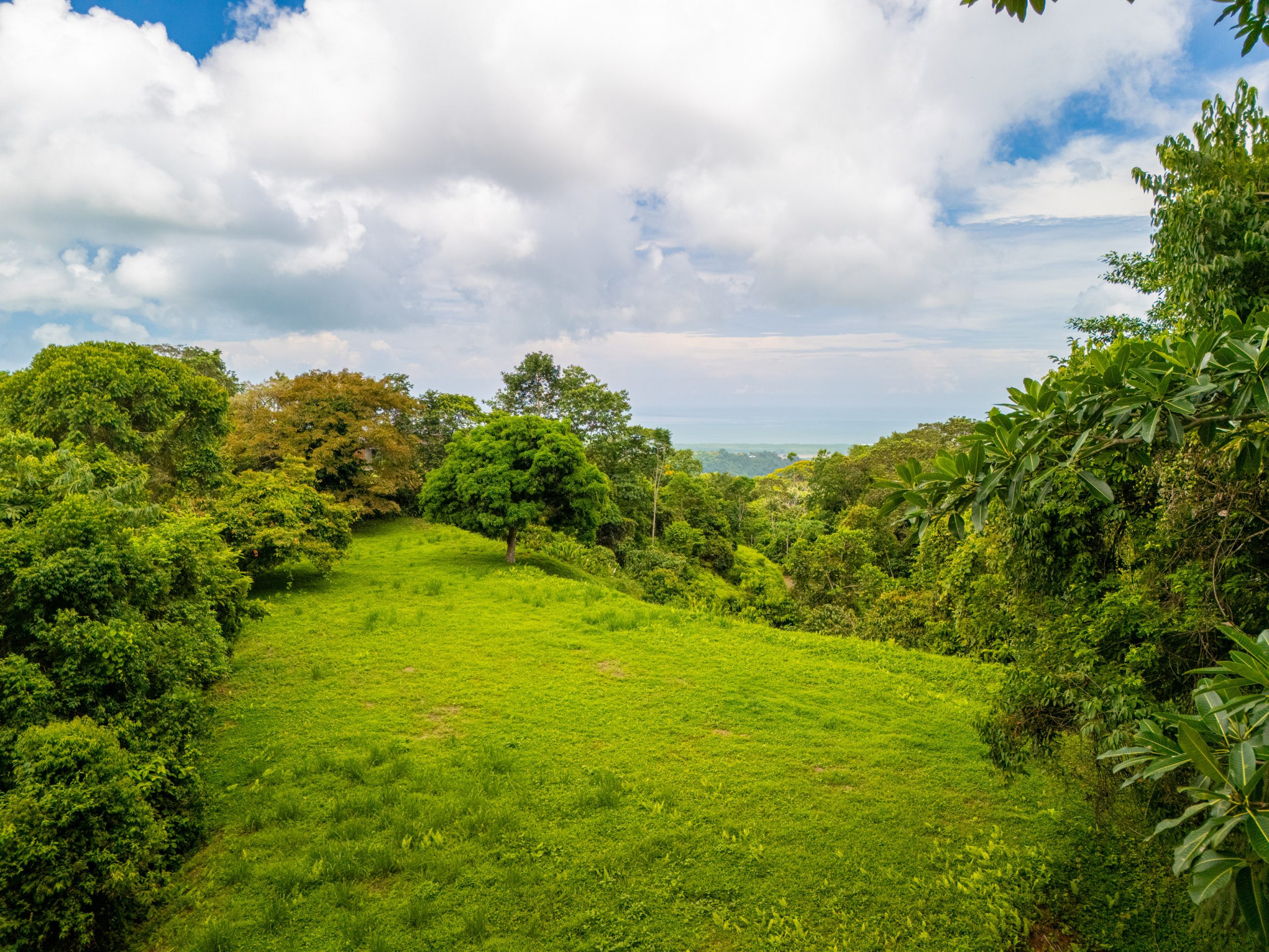 The land offers two large buildable areas , both with water and electricity connections , providing flexible options for building a main house, a guest villa, or a vacation rental project . The towering mango tree that graces the property adds charm, shade, and a distinctive tropical touch.