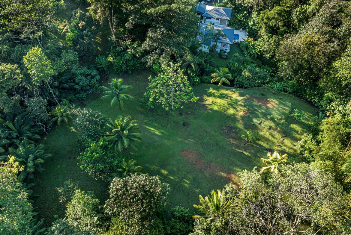 El terreno abarca aproximadamente 2,28 acres de exuberante bosque natural y jardines meticulosamente mantenidos, adornados con una amplia variedad de árboles frutales maduros como mango, banano, cítricos y cocoteros, entre muchos otros. Su topografía suavemente ondulada la convierte en una opción ideal para desarrollar una residencia familiar, un bed & breakfast, un hotel boutique o incluso un proyecto de varias unidades habitacionales.