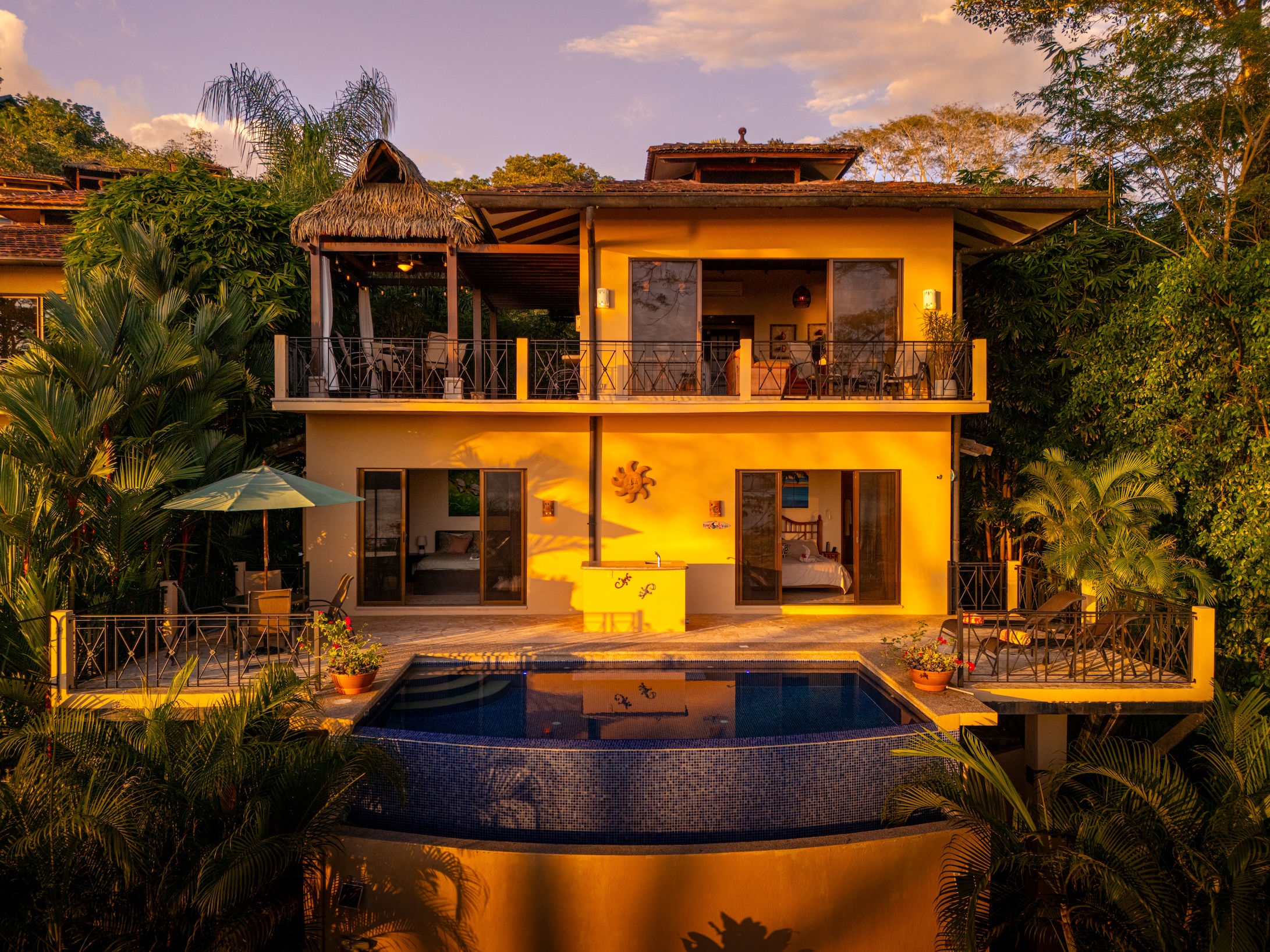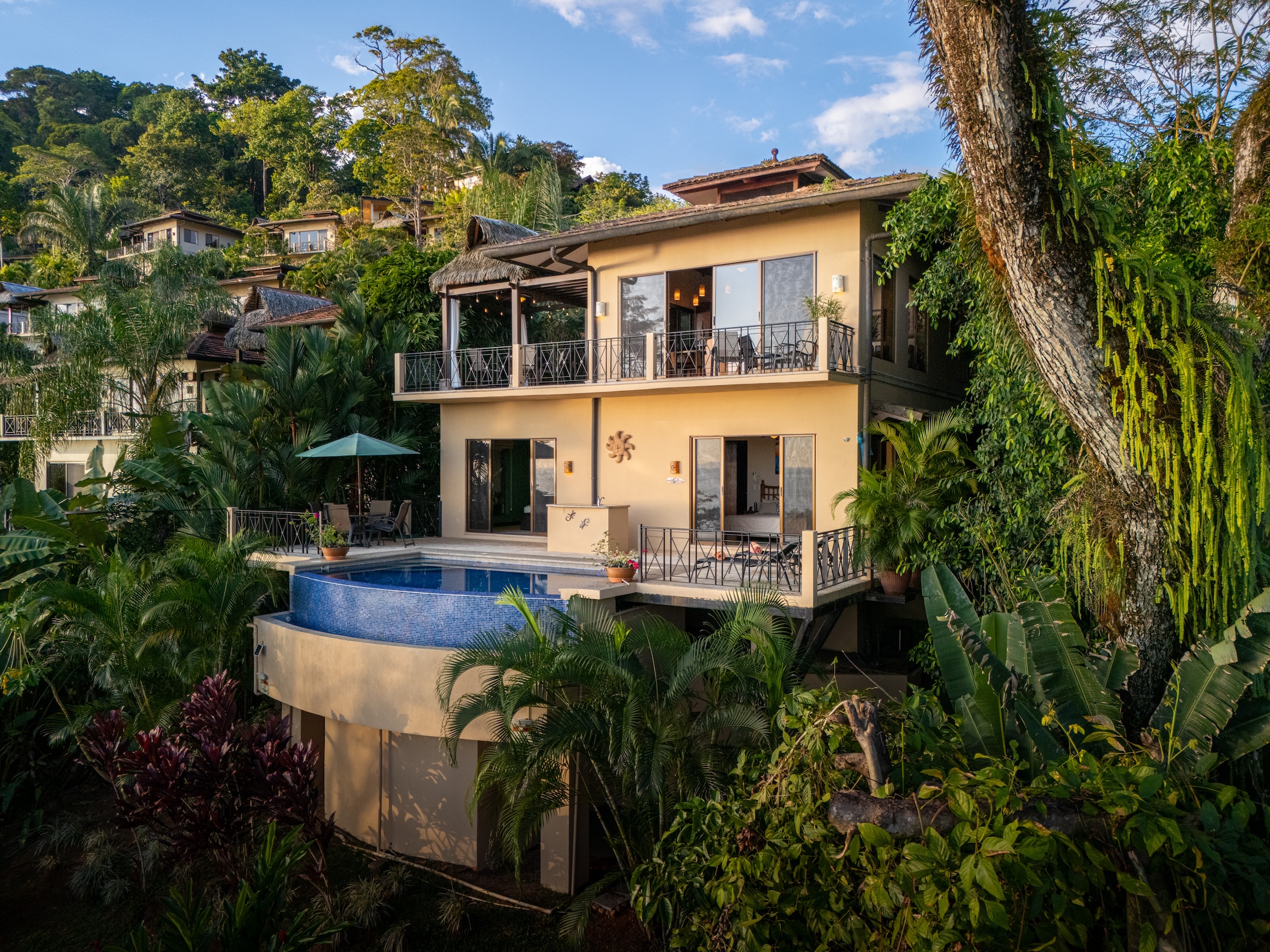 Conocida como “El Mono Volador”, esta villa se distingue por su ubicación en lo alto de la colina, rodeada de jardines privados, exuberante vegetación y vistas inigualables al atardecer, donde el cielo y el mar se funden en un espectáculo diario. Relájese en la hamaca, disfrute de la amplia piscina infinita o comparta momentos inolvidables con familia y amigos en sus múltiples áreas sociales. Se trata de una de las pocas villas dentro de la comunidad que goza de este entorno tan especial.