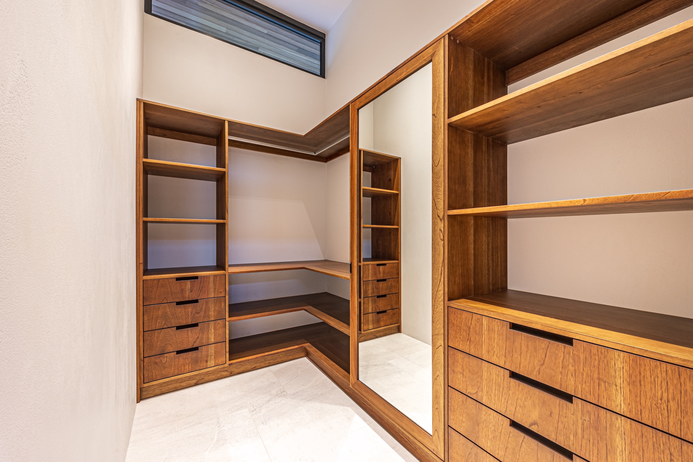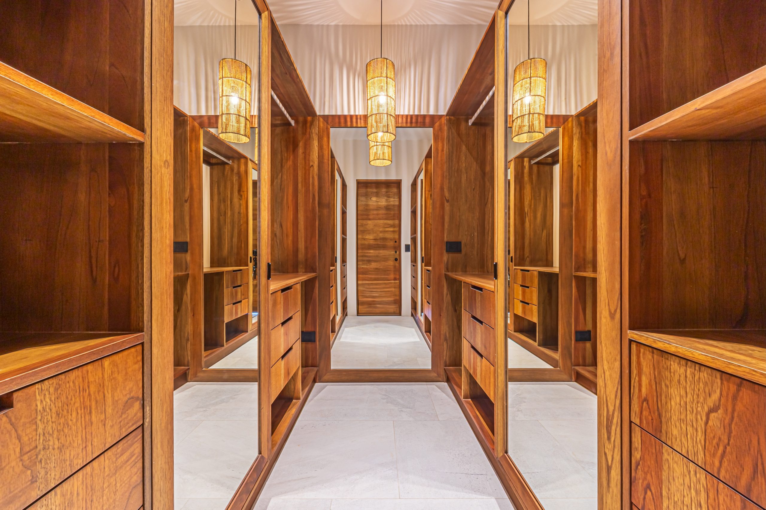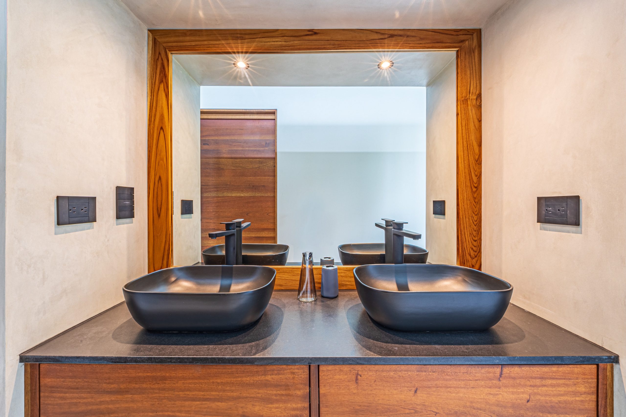 A floating staircase leads to the upstairs bedrooms. Two spacious bedrooms each with their own on suite full bathroom and ocean view private terrace.