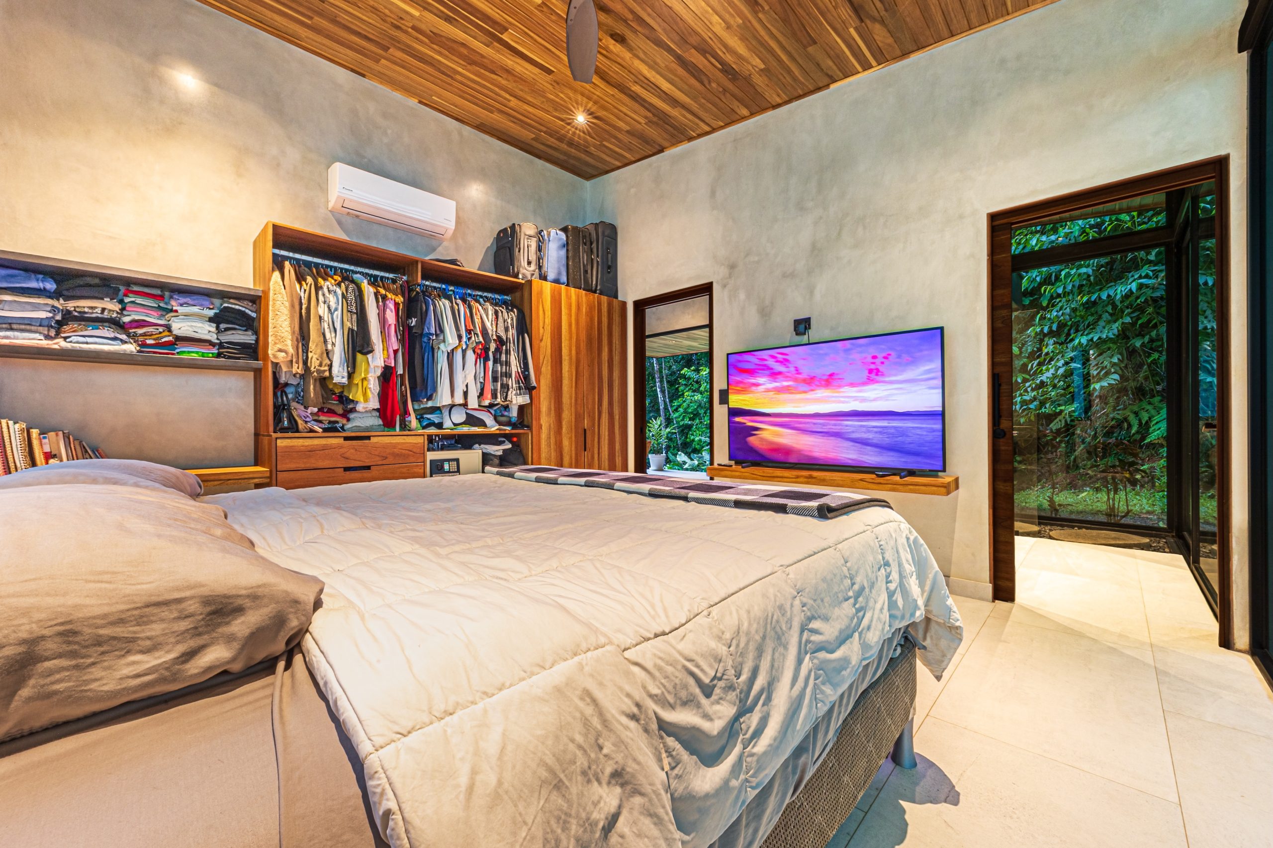 The upper guest apartment is above the home and accessed by staircase and breezeway. Offering ocean views and overlooking the architectural masterpiece. Fully equipped with 1 bedroom and 1 bath plus kitchenette and living room.