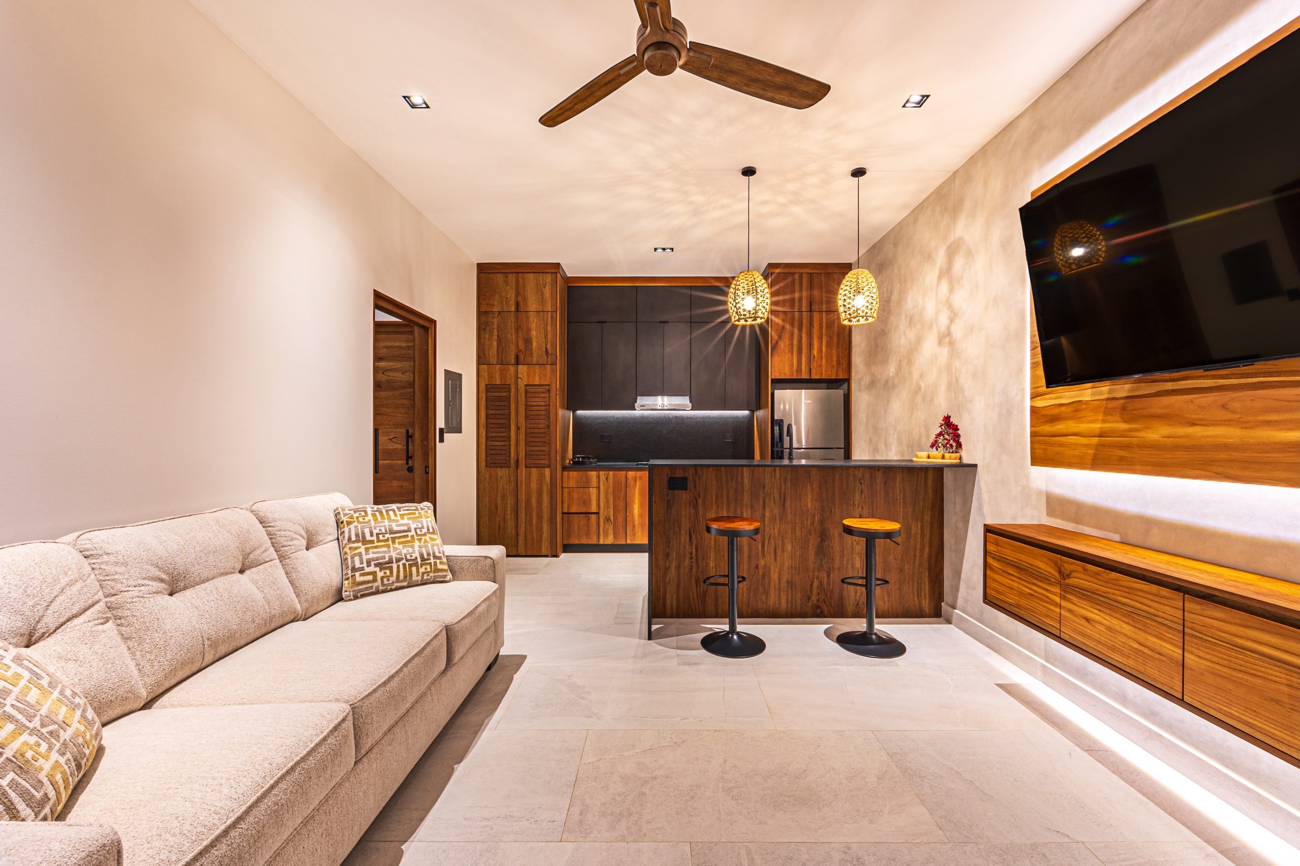 Below the home with separate entrance is a guest apartment complete with its own kitchenette and living room. Plus a dipping pool and private terrace. Your guests can come and go as they please with their own private space.