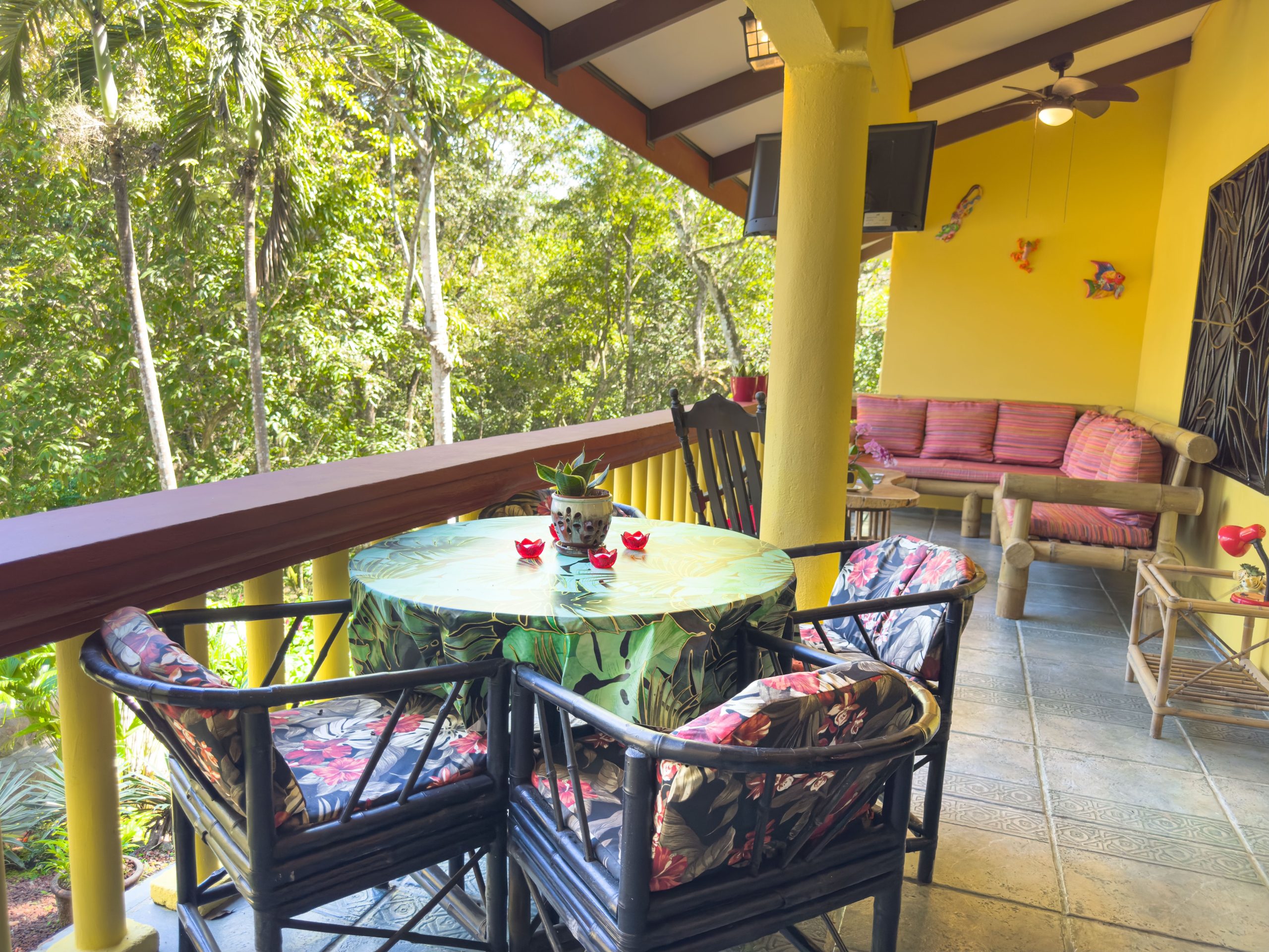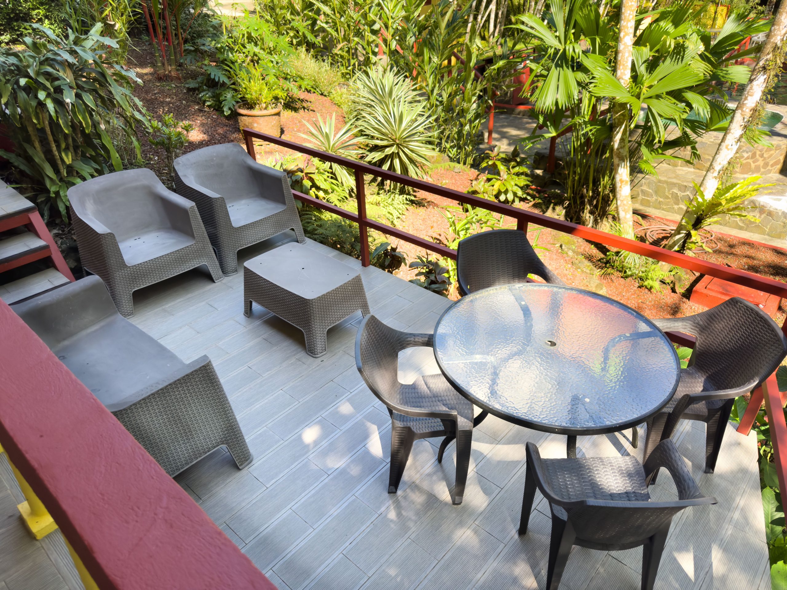 Private terrace overlooking the tropical gardens and pool.