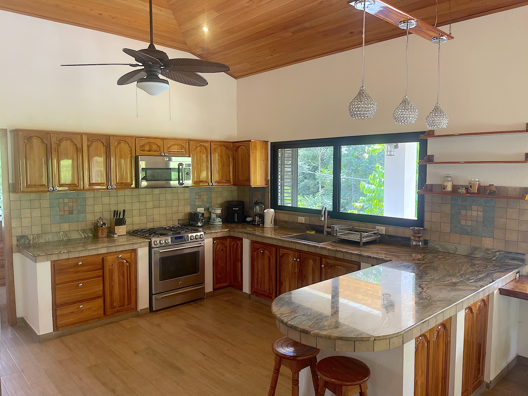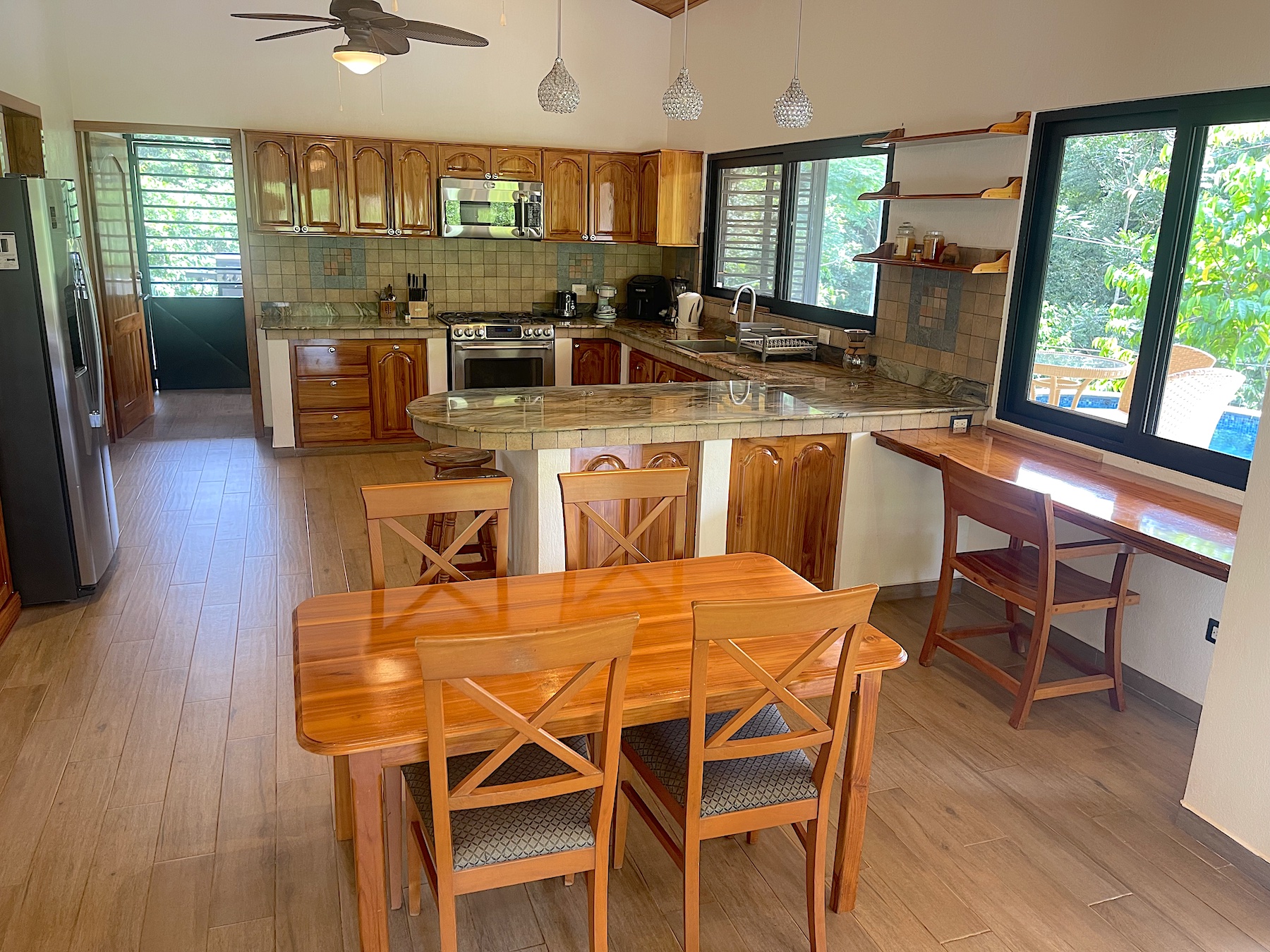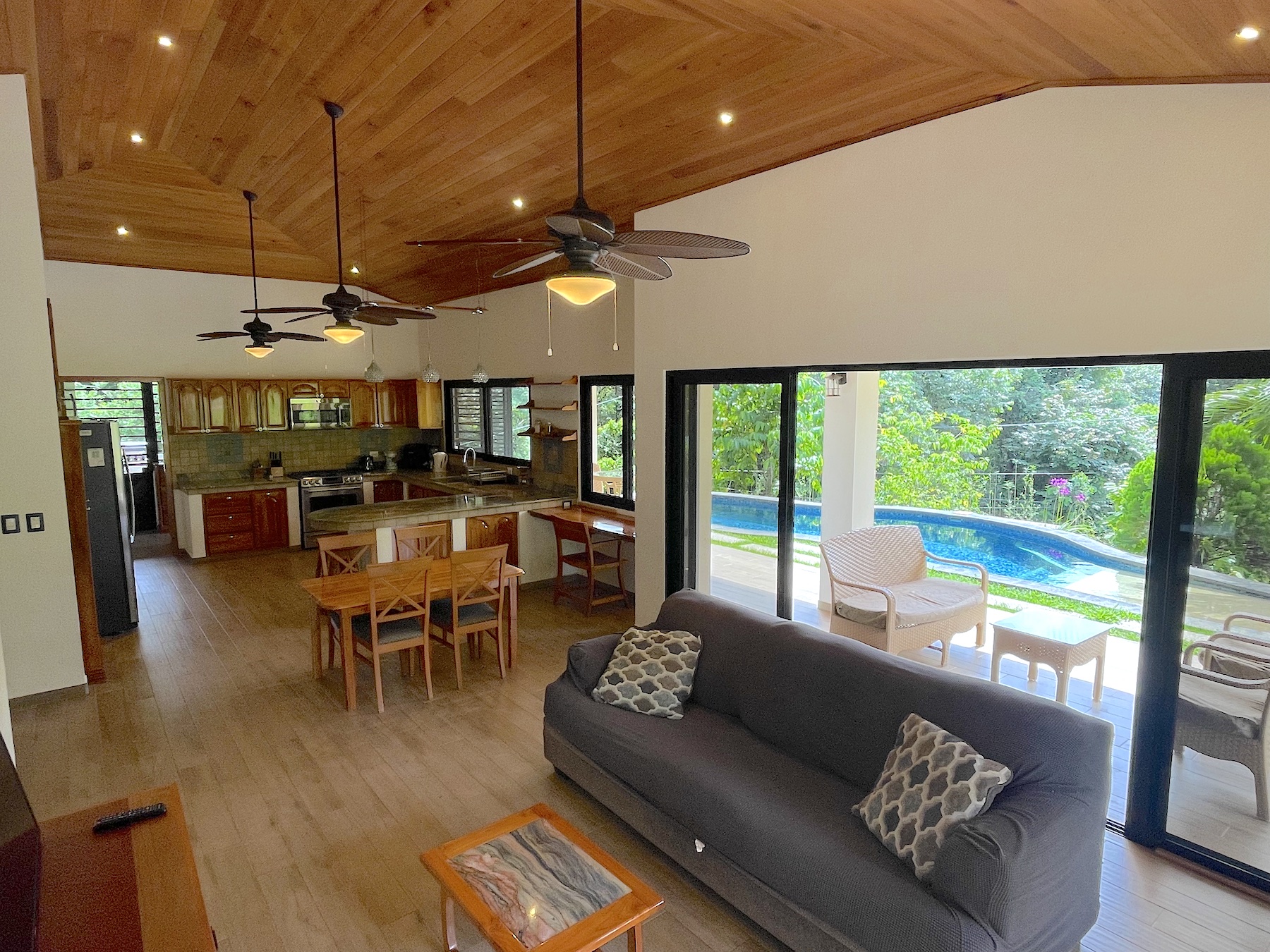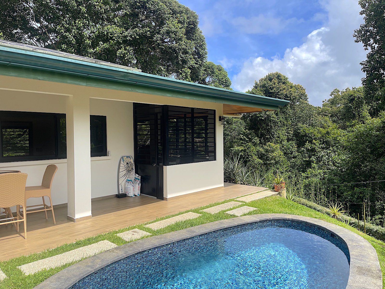 Casa Quetzal is the perfect long-term rental for those seeking privacy and quiet location about 15 minutes from Dominical beach. Located about 10-11 minutes from the paved road in Baru with 4×4 access on well-maintained Lagunas roads in a gated property with manicured grounds and numerous fruit trees.