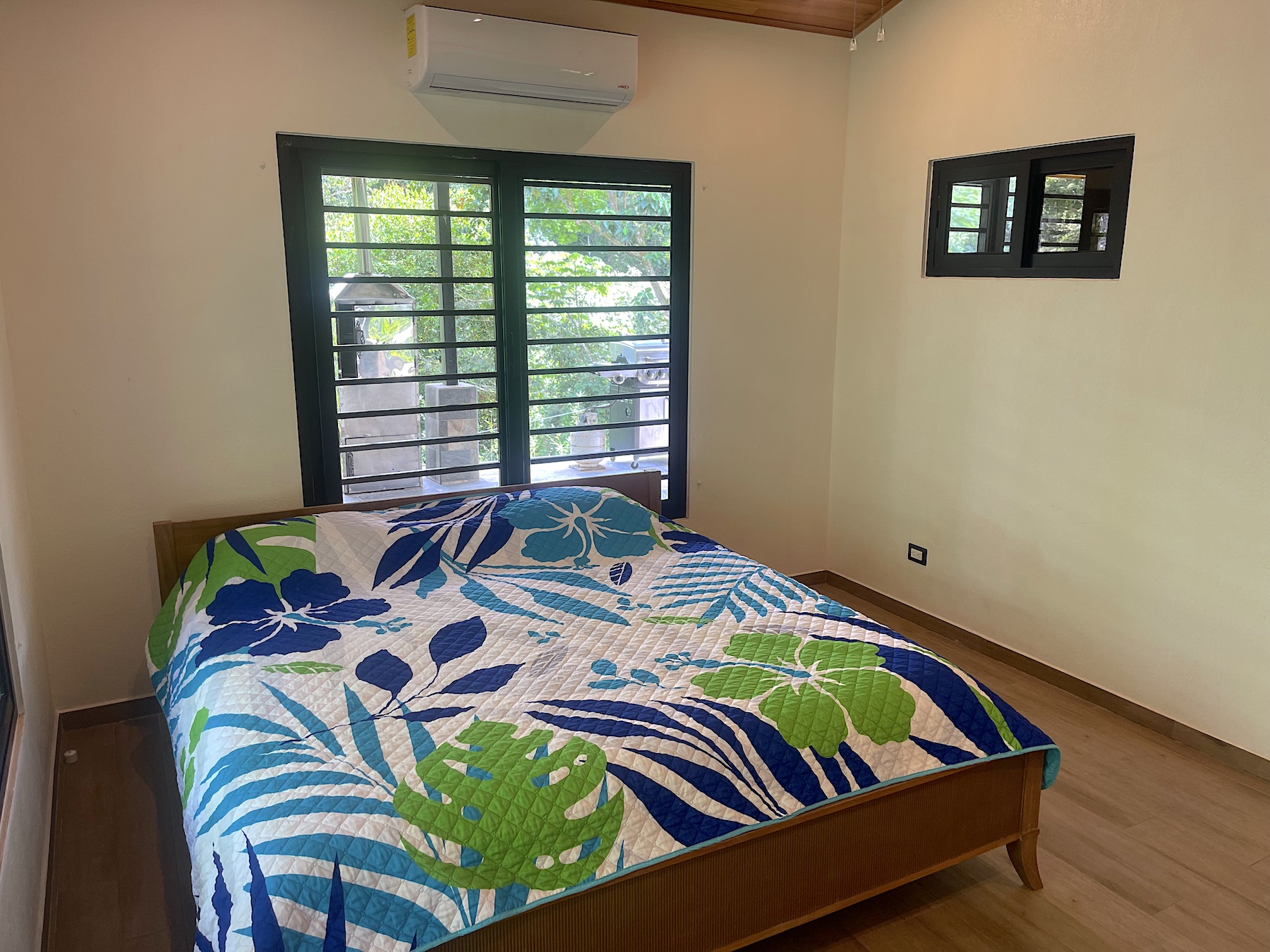 The principal bedroom off the kitchen has king-size bed, en-suite full bath, and walk-in closet. The guest bathroom is in the hall from the living room that leads to the guest bedroom with a queen-size bed. Both the bedrooms have AC units.