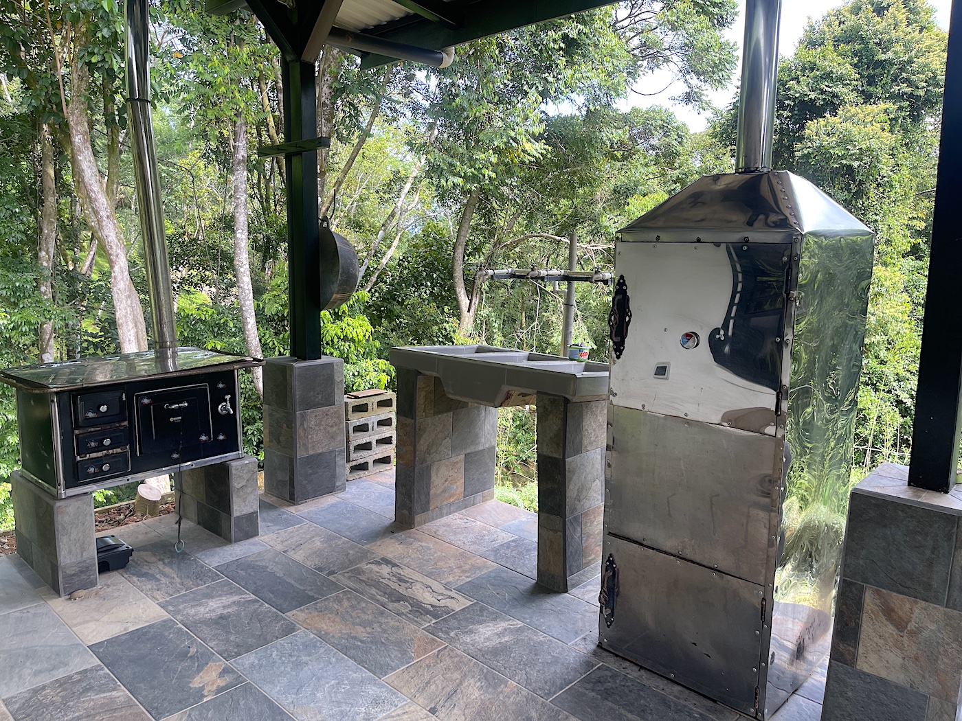 The 2 bedroom and 2 full bath home with luxury finishes and an ample sized pool is great for a couple with guests that visit or a small family. The living room and spacious kitchen create an open floor plan. High-end GE Profile appliances and tons of granite counter space make cooking a pleasure. The living room opens to the covered terrace by the pool. And behind the home is the laundry room that access the outdoor kitchen with propane BBQ grill, wood burning smoker, wood burning stove and oversized sink.