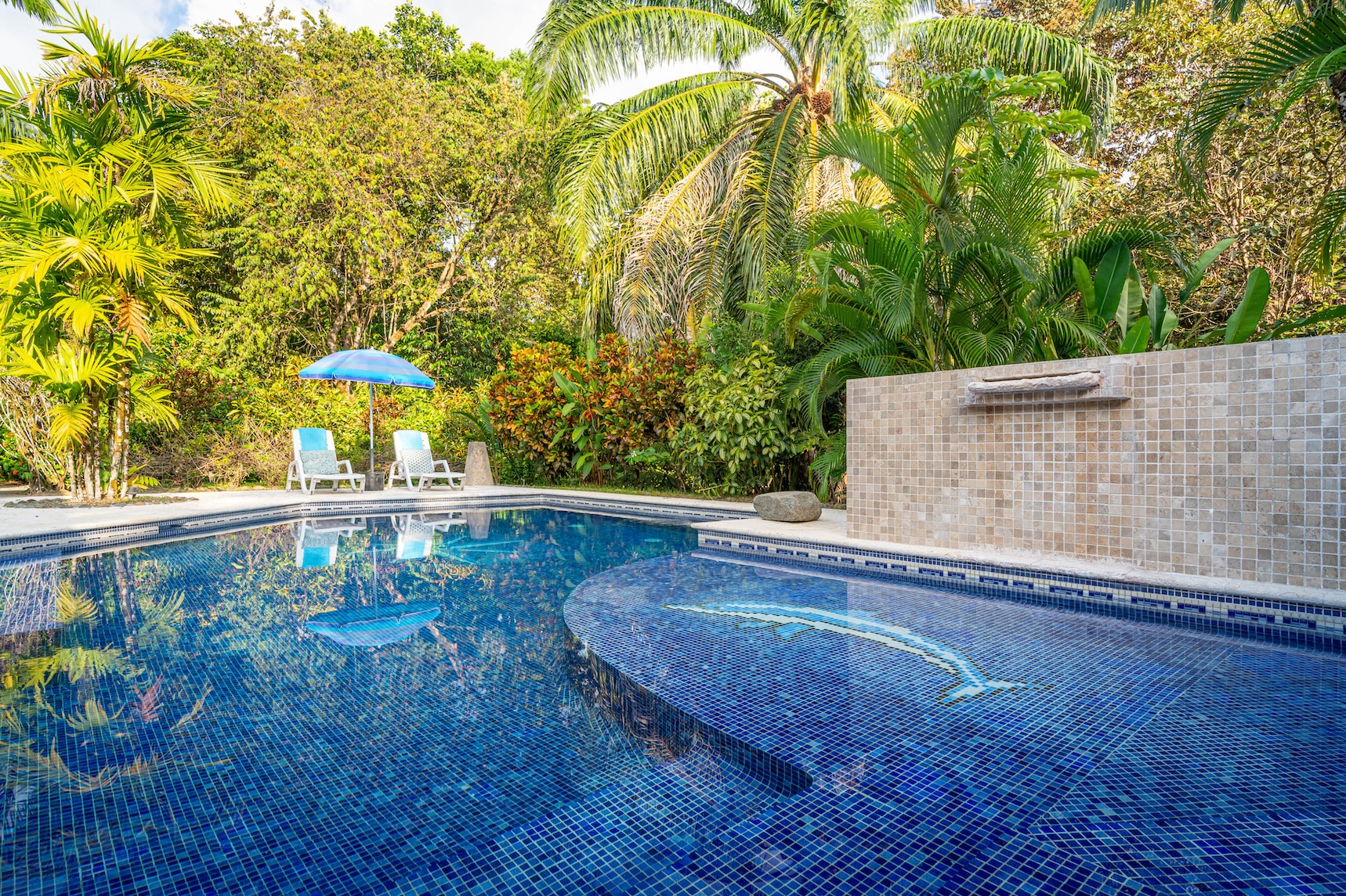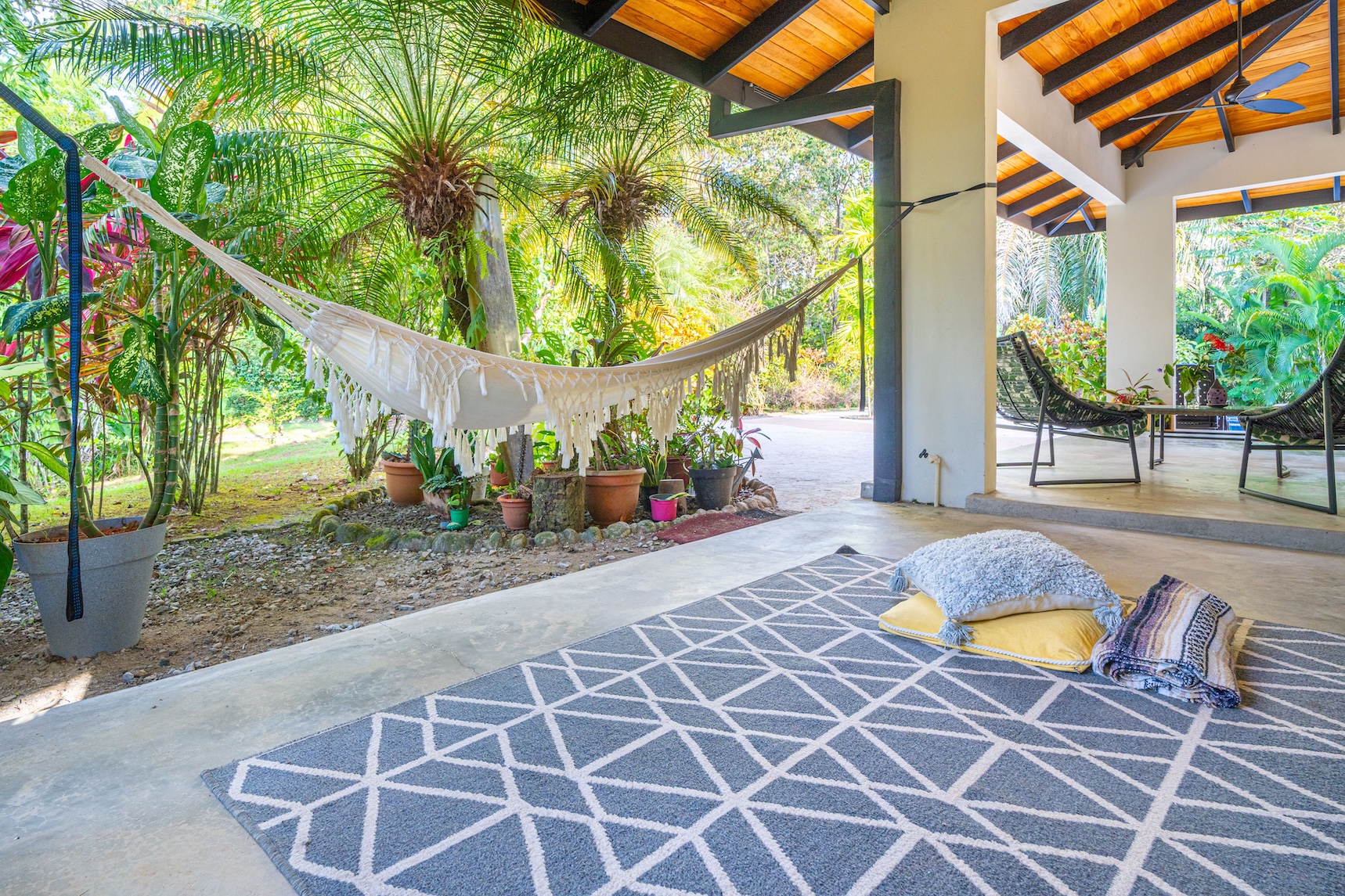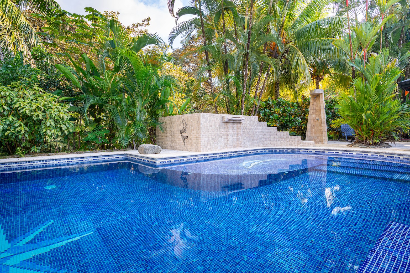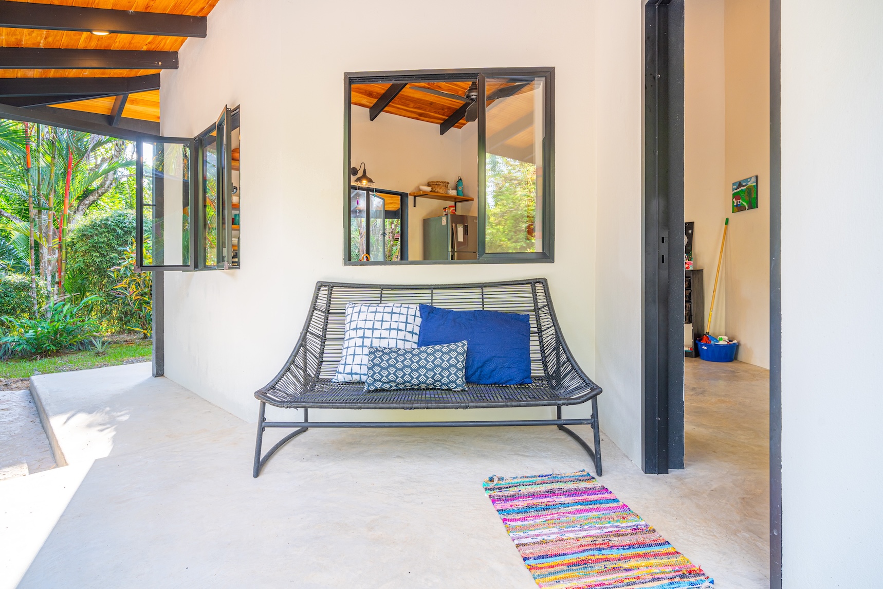 Welcome to Casa Sirena, a haven for nature lovers in the heart of Ojochal. Located on Papagayo Street, this recently renovated, two-bedroom, two-bathroom residence offers convenient access and sits on nearly half a hectare with spectacular views of the majestic mountains surrounding the community. Lush vegetation and wildlife take center stage: four large African palm trees provide a home for toucans, scarlet macaws, monkeys, and other species. You’ll also find coconut palms, banana trees, lemon trees, and starfruit trees, plus ample space to grow whatever you desire.