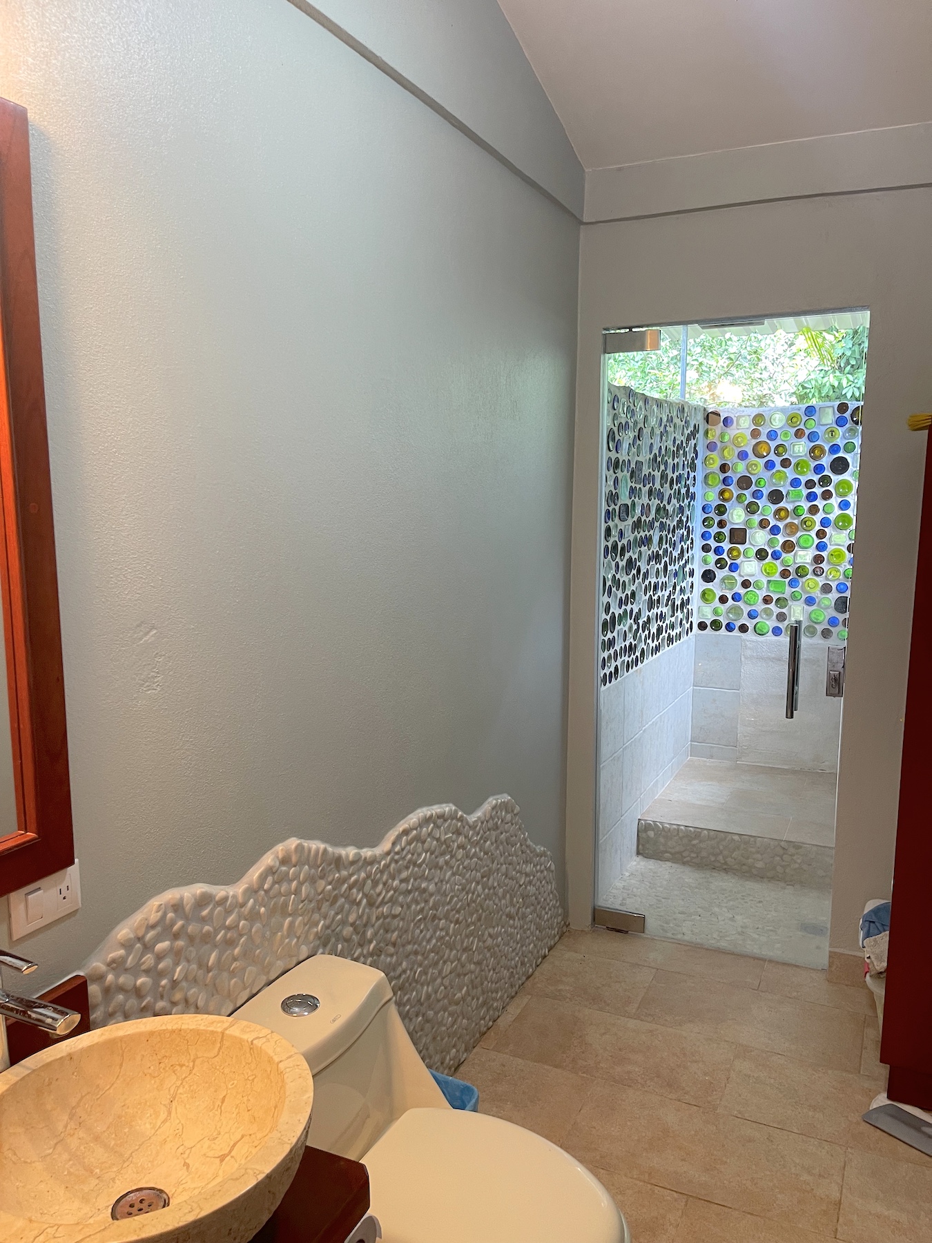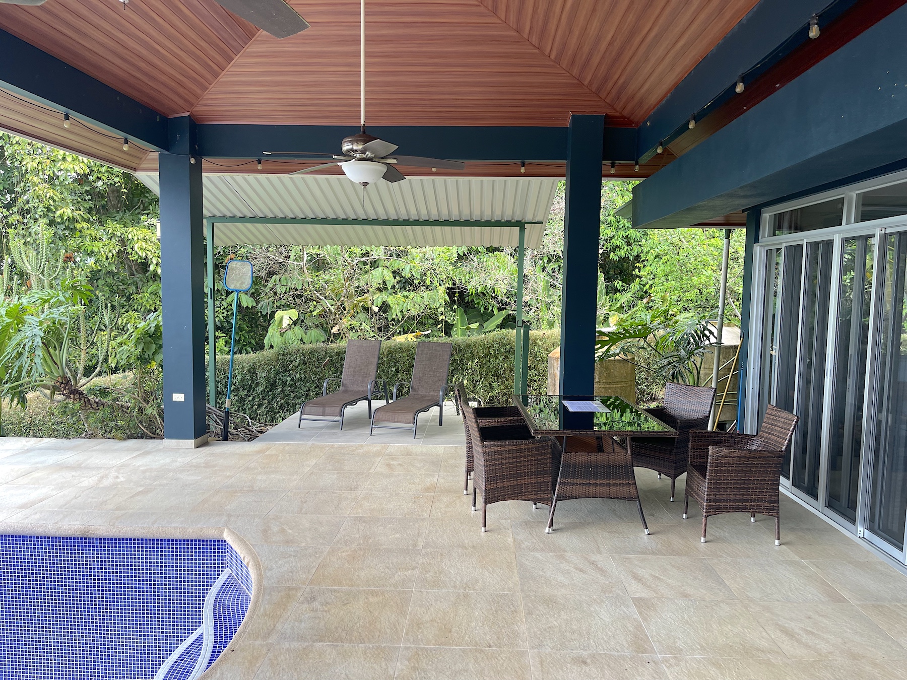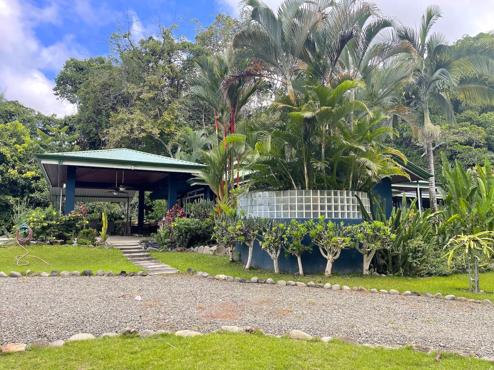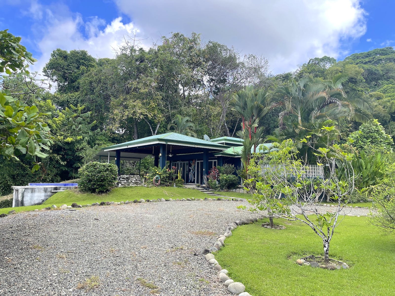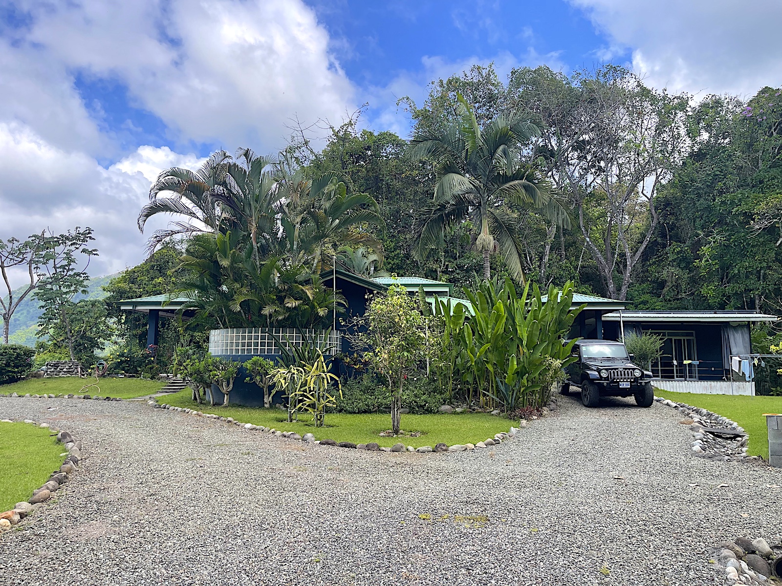 Absolute privacy with amazing gardens with fruit trees and flat usable land around the home makes this a rare property in this mountainous region. The home is 3 bedrooms and 2 baths with the principal bedroom enjoying an on-suite bathroom with a tropical outdoor shower. The guest rooms share a full bathroom with its own artistic glass bottle wall outdoor shower.