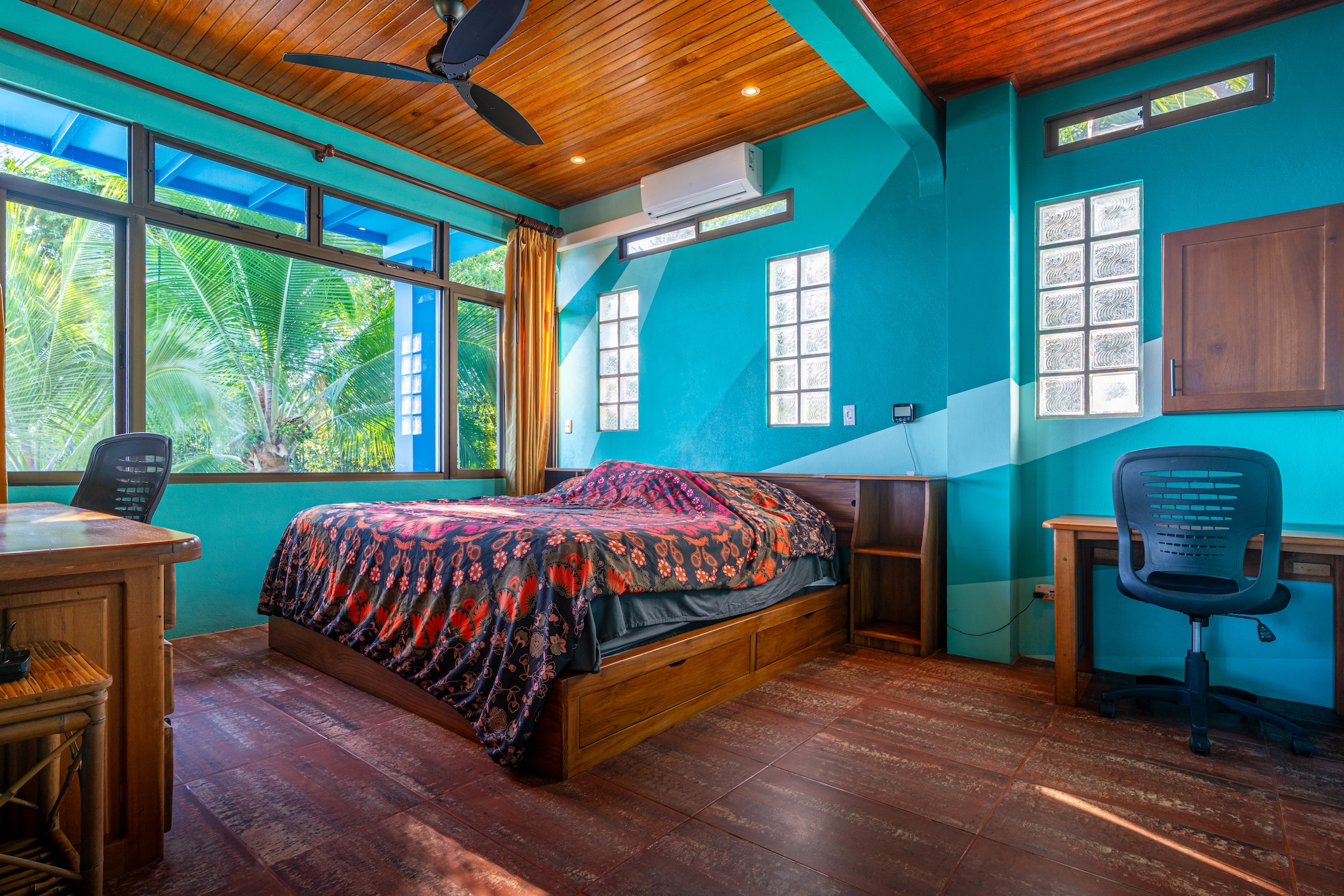 Designed for both enjoyment and remote work, the property features high-speed internet, multiple workspaces, and a full solar system that reduces costs and ensures energy independence. Natural ventilation, along with ceiling fans and air conditioning, provides year-round comfort.