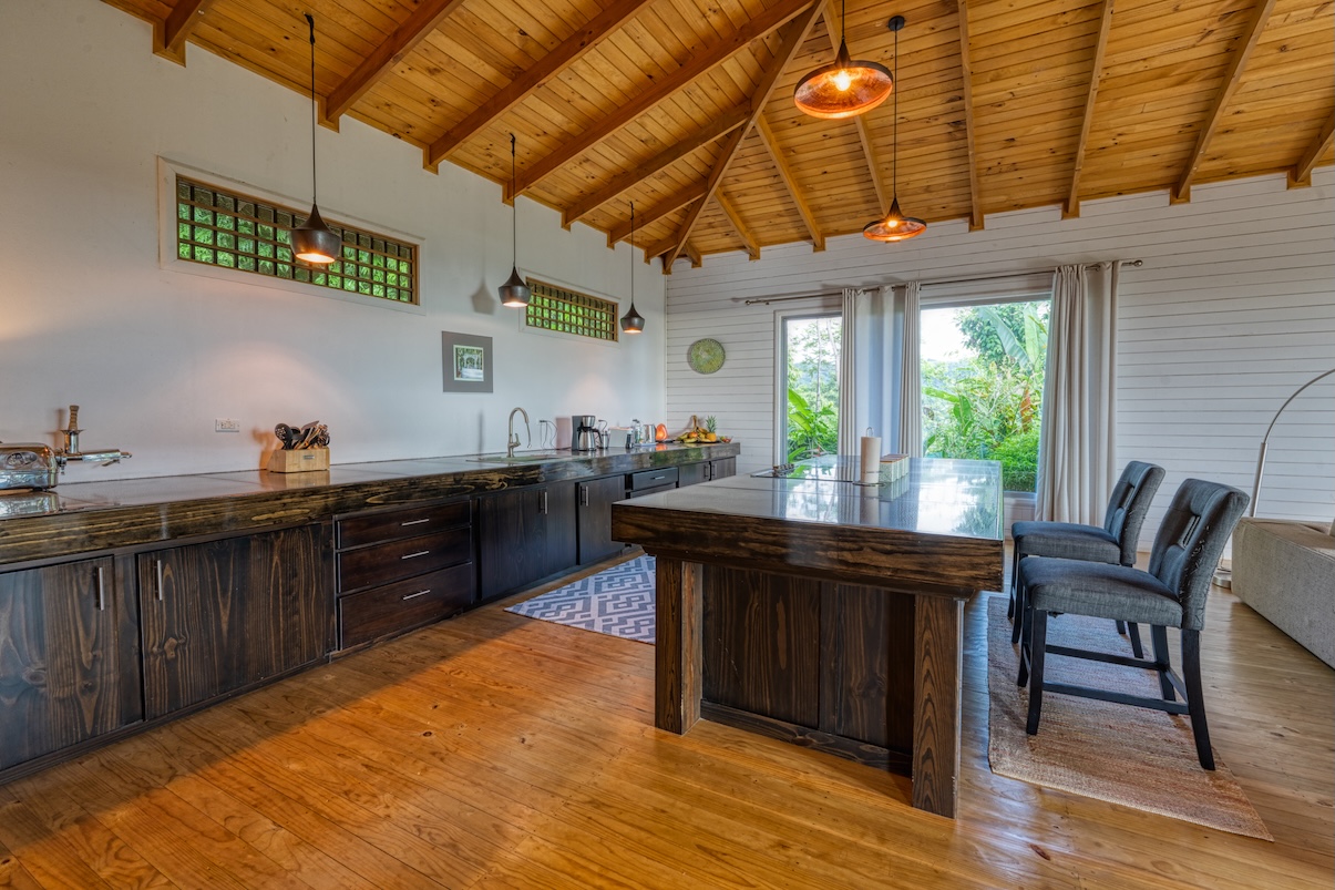 Dos casas adicionales en la parte alta, con vistas al océano y a las montañas, donde también se encuentra una piscina con terraza panorámica.