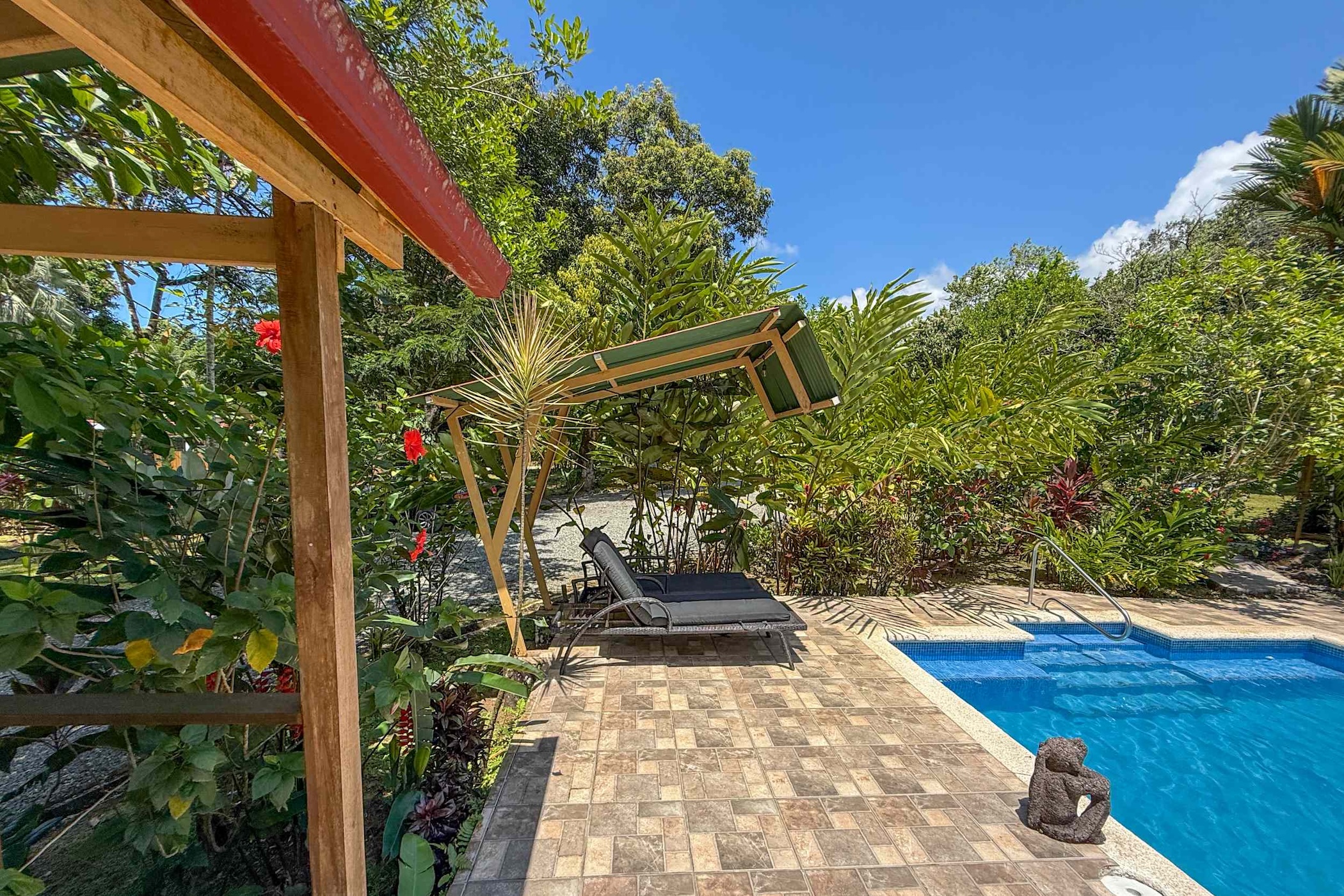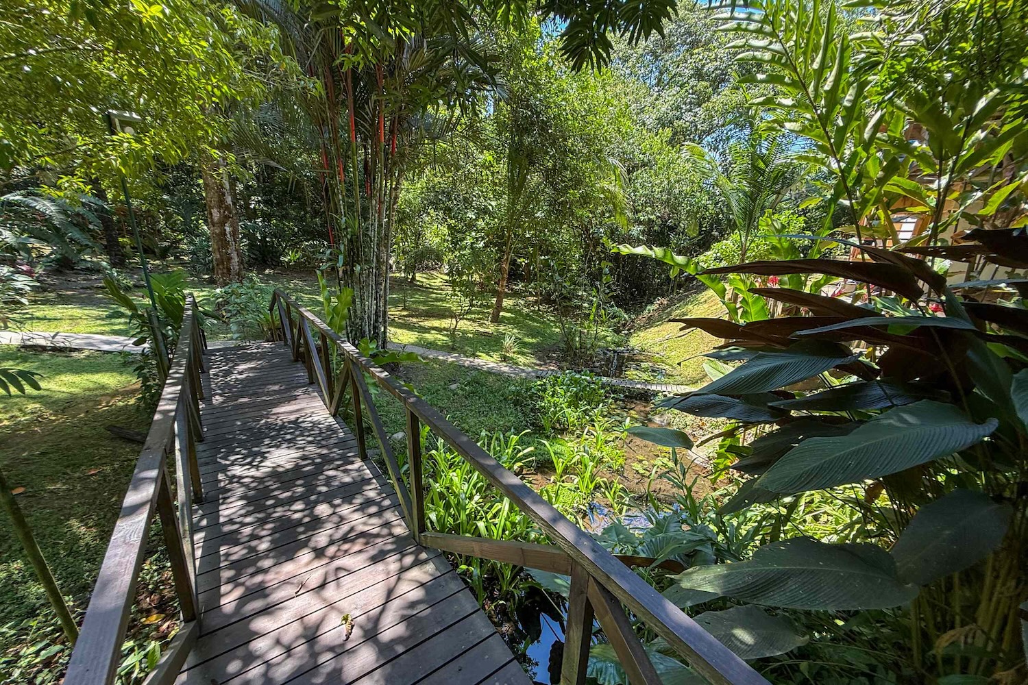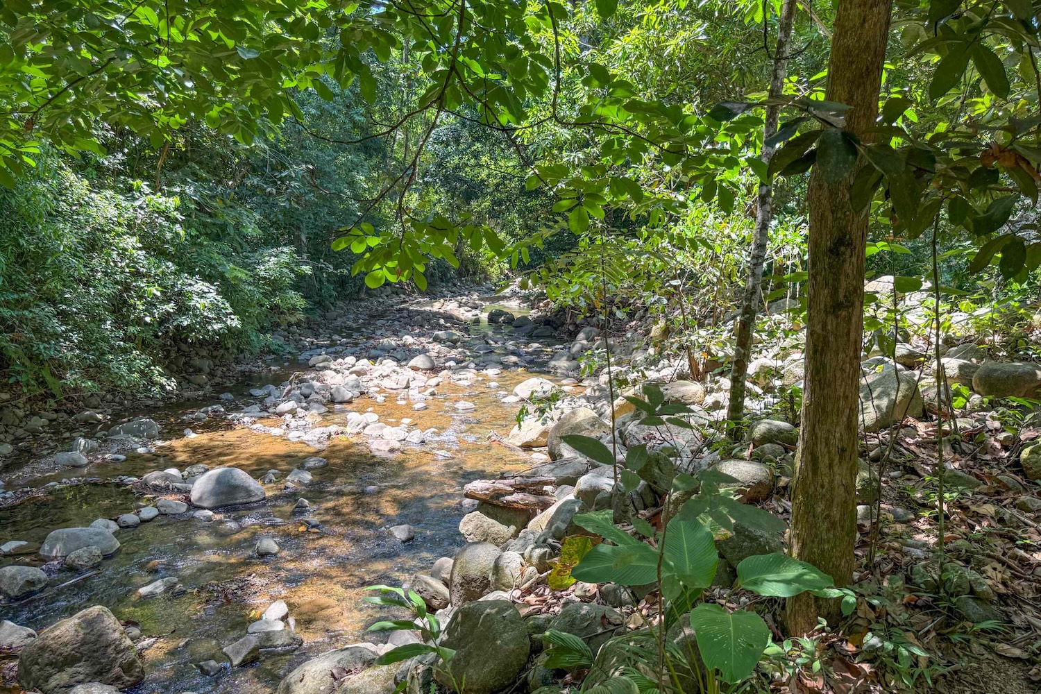 Un río atraviesa la propiedad, aportando un entorno único con sonido natural constante y acceso directo a pozas para nadar. La piscina, rodeada de vegetación, ofrece el equilibrio perfecto entre sol y sombra, mientras que los jardines tropicales y áreas sociales como el rancho complementan la experiencia.
