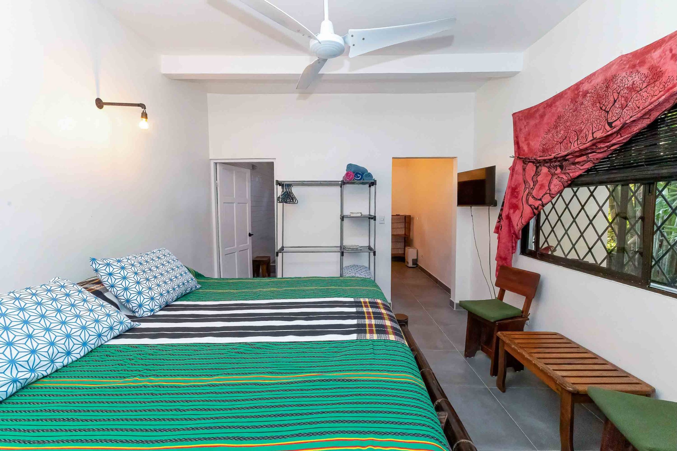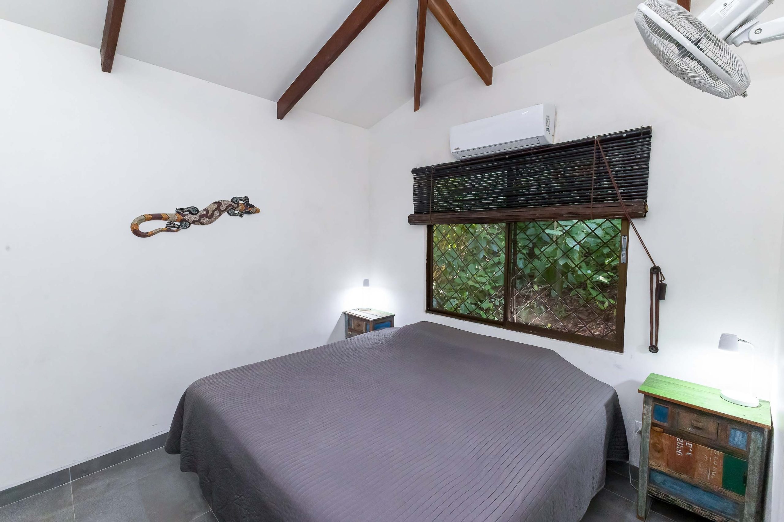 Una unidad amplia y luminosa de dos dormitorios y un baño, con cocina completa, sala de estar acogedora y una terraza exterior ubicada entre las copas de los árboles. El baño cuenta con una ducha exterior contigua, ofreciendo una experiencia única en contacto directo con la naturaleza.