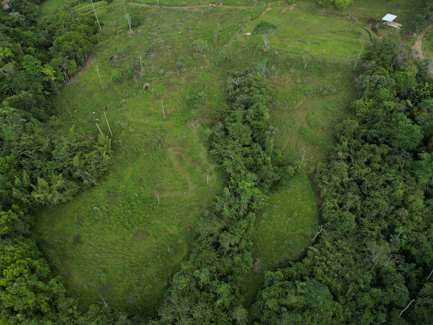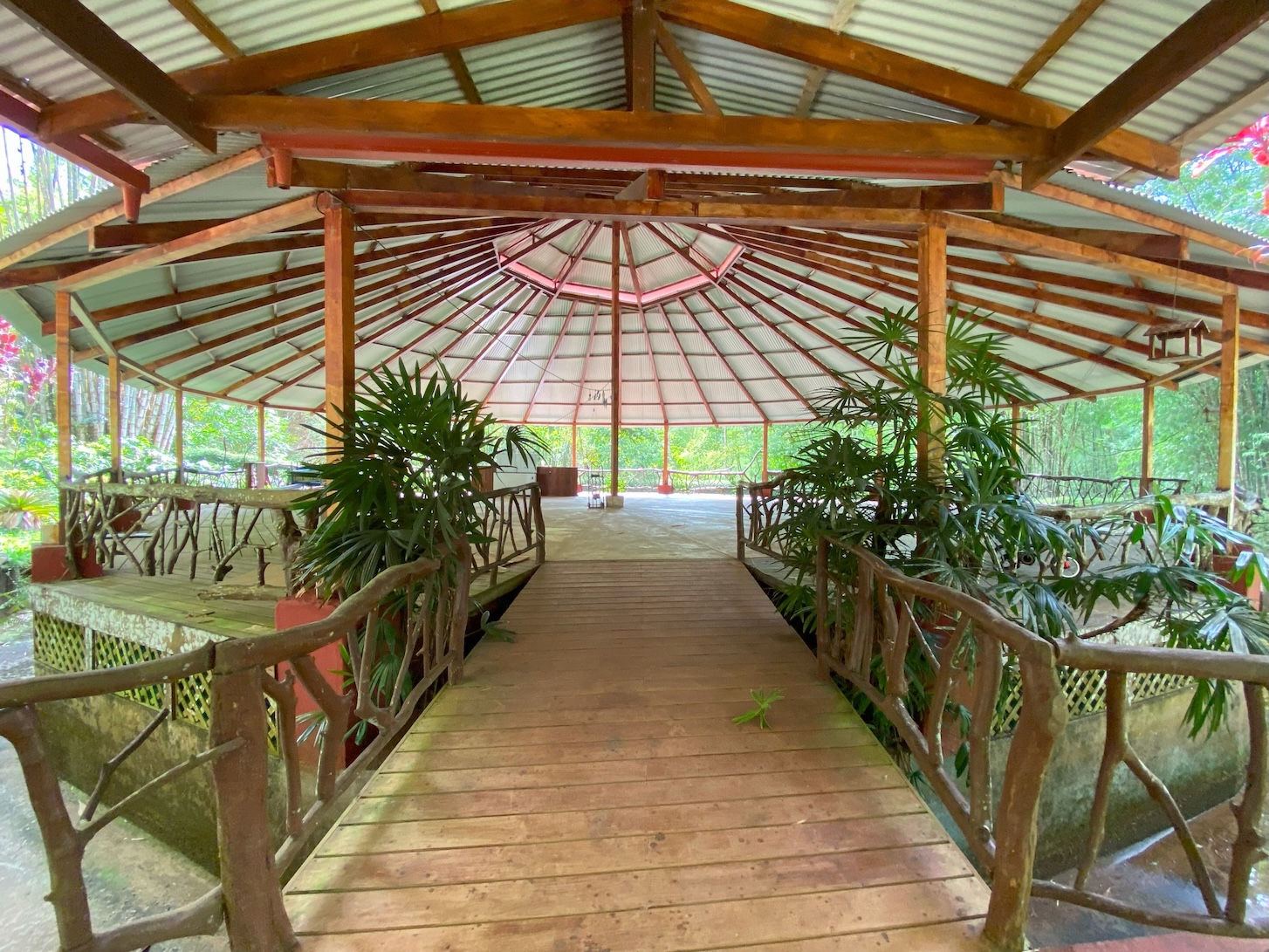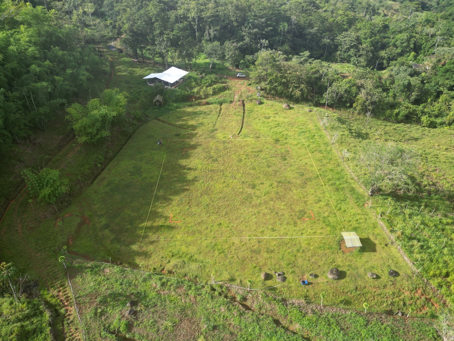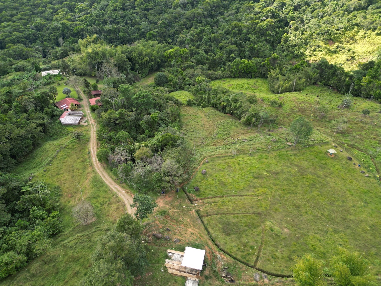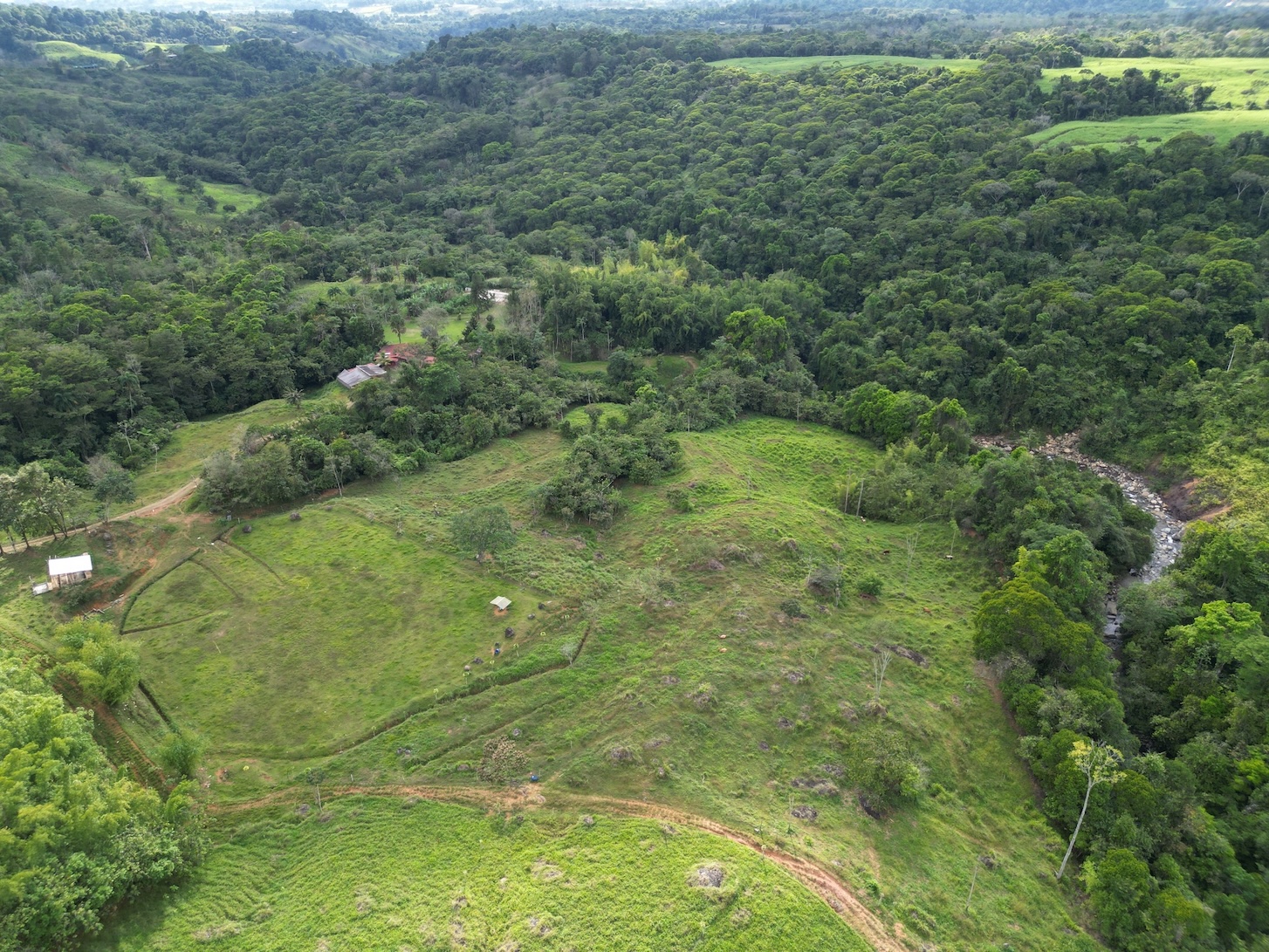 En el corazón de la finca se levanta un impresionante rancho circular, de 15 metros de altura y 22 metros de diámetro, construido con estructura de metal y concreto. Está rodeado por un apacible estanque artificial y un majestuoso bosque de bambú ubicado a tan solo metros del río. Esta estructura, cuya inversión aproximada supera los $175,000, se acompaña de dos cabañas pequeñas, perfectas para el cuidador de la propiedad o como vivienda temporal mientras se desarrolla un proyecto mayor.