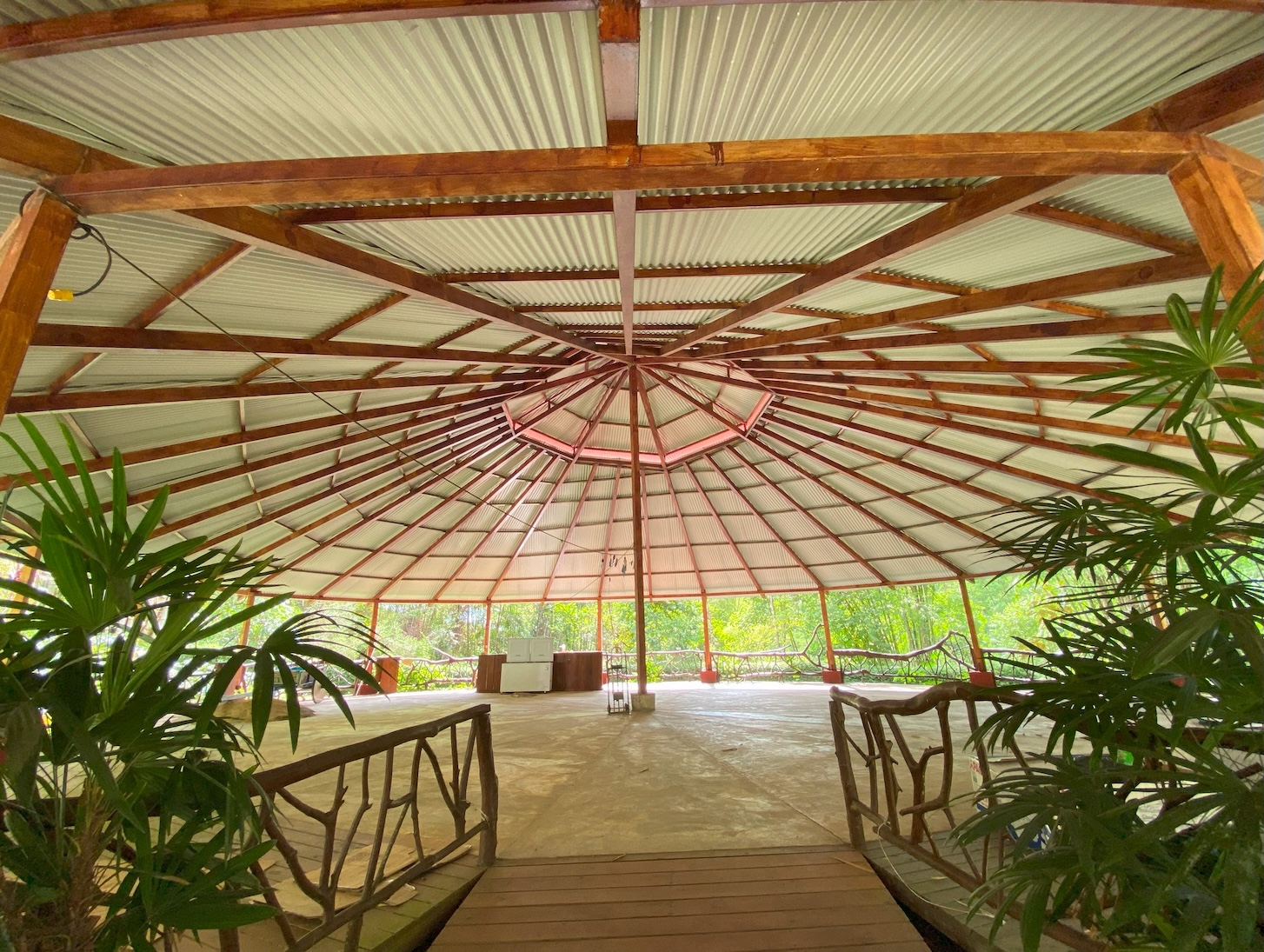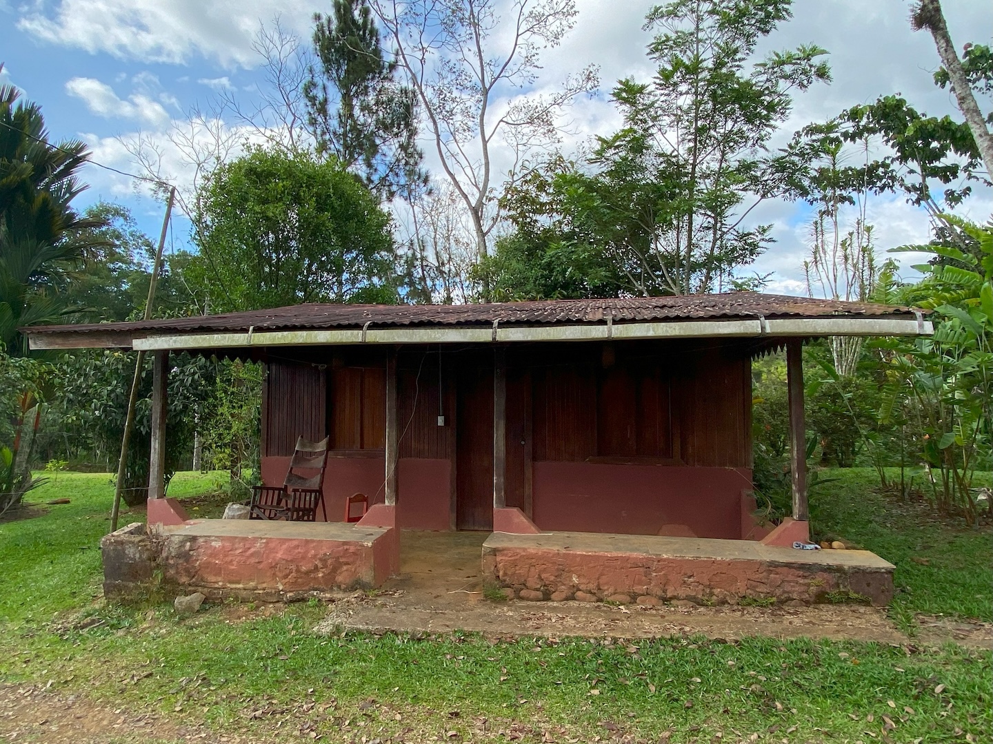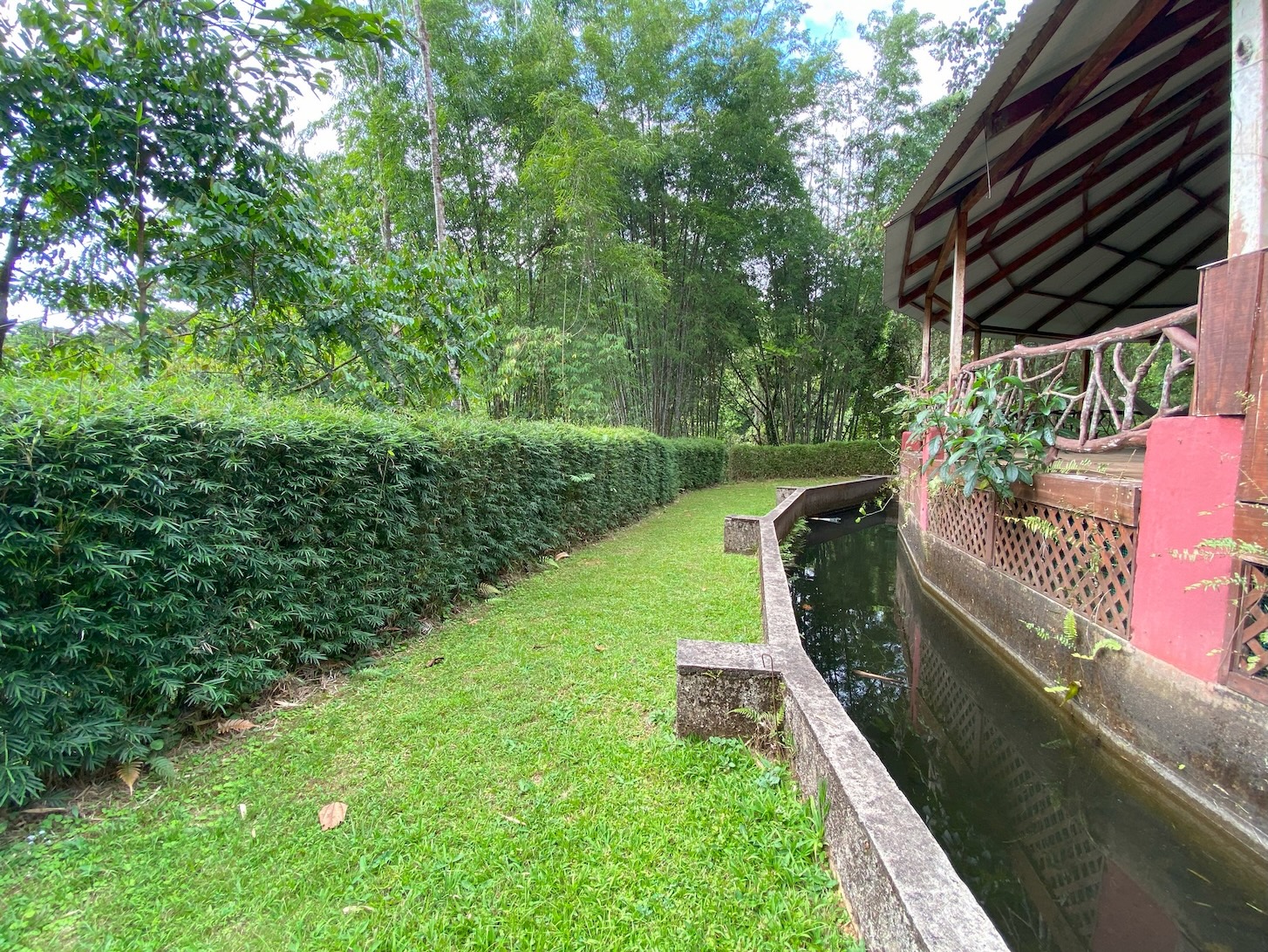 At the heart of the property stands an impressive circular rancho, 15 meters high and 22 meters in diameter, built with metal and concrete structure. It is surrounded by a peaceful artificial pond and a majestic bamboo forest located just meters from the river. This structure—an investment of approximately $175,000—is accompanied by two small cabins, perfect for the property caretaker or as temporary housing while a larger project is developed.