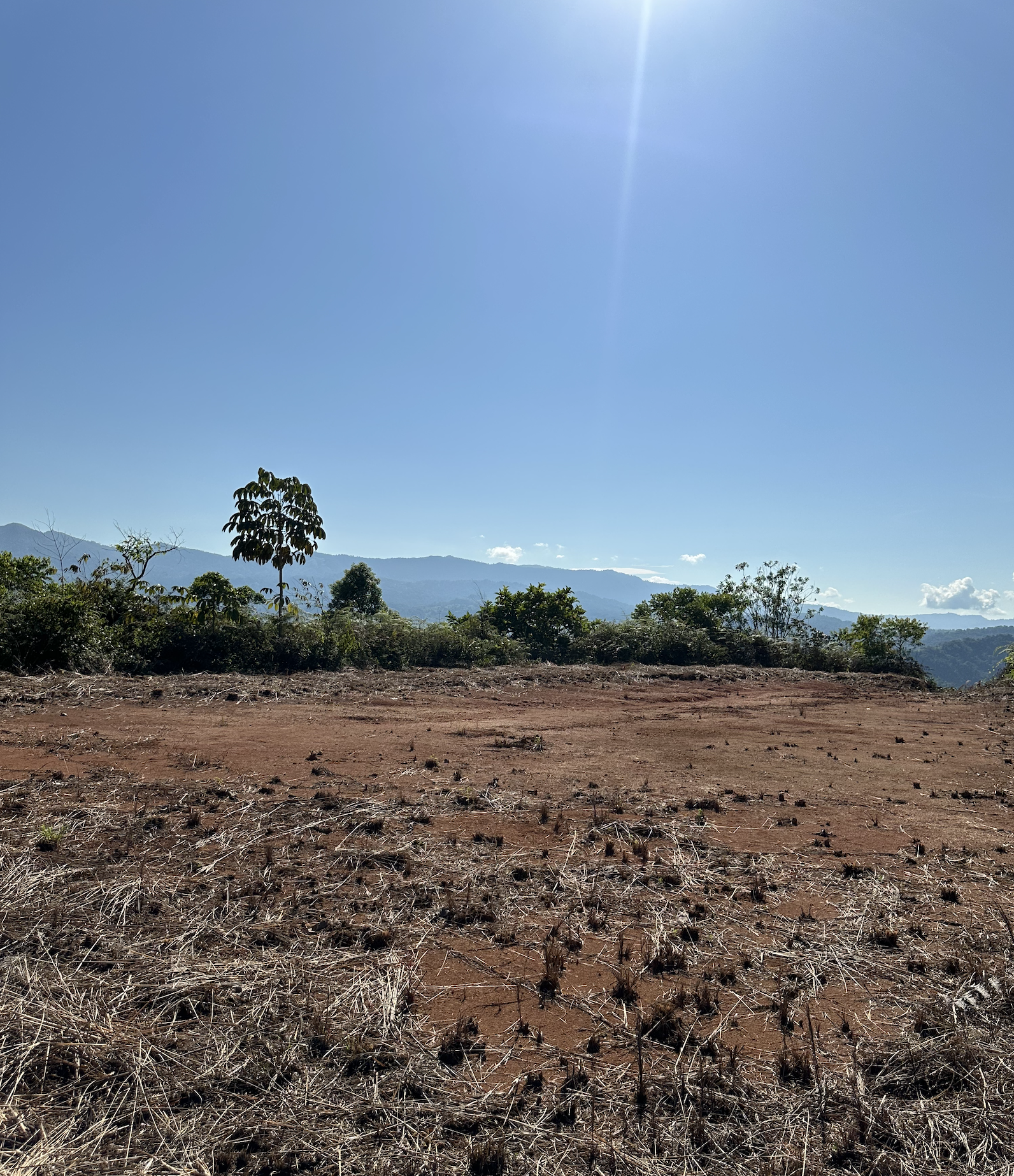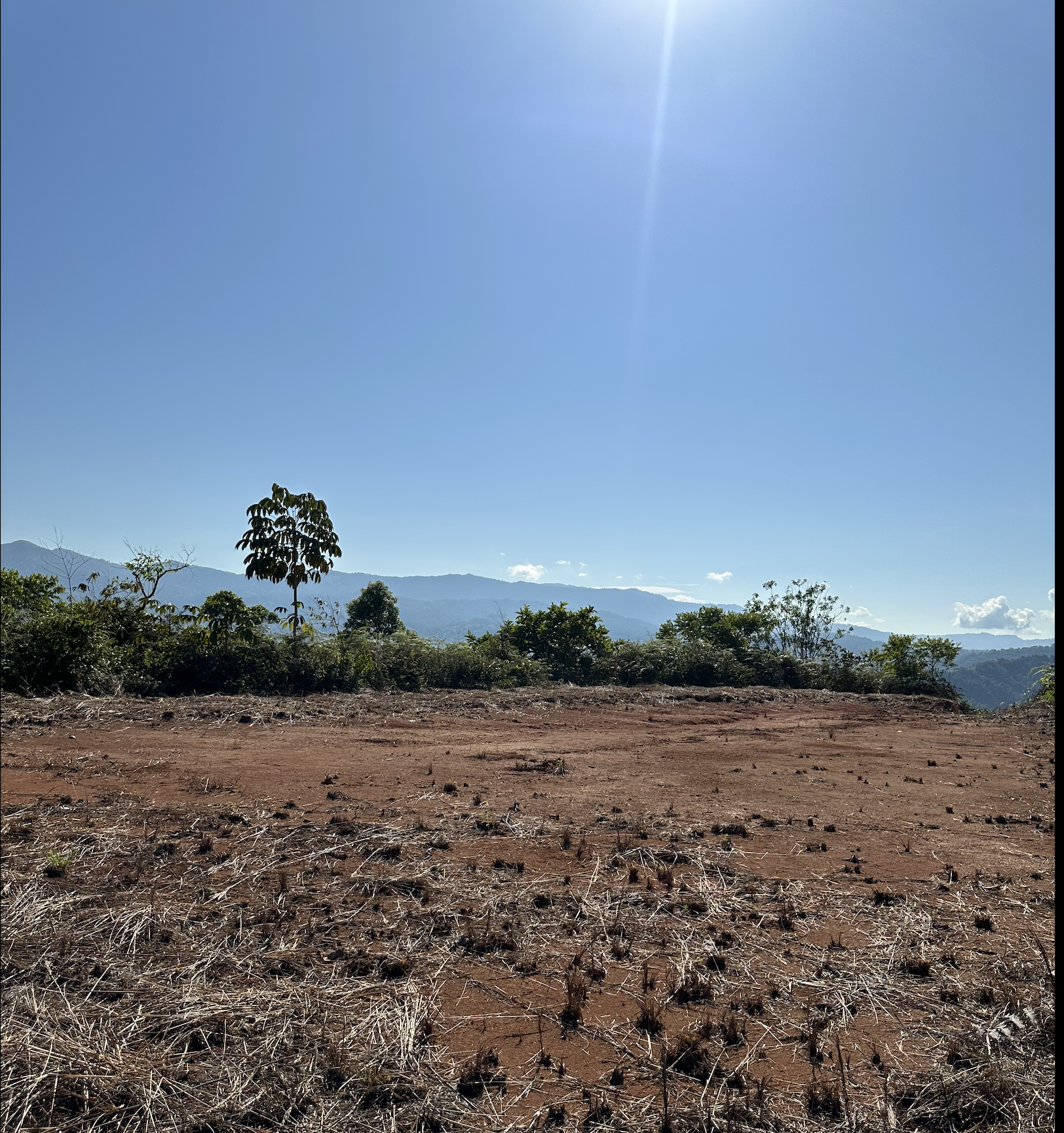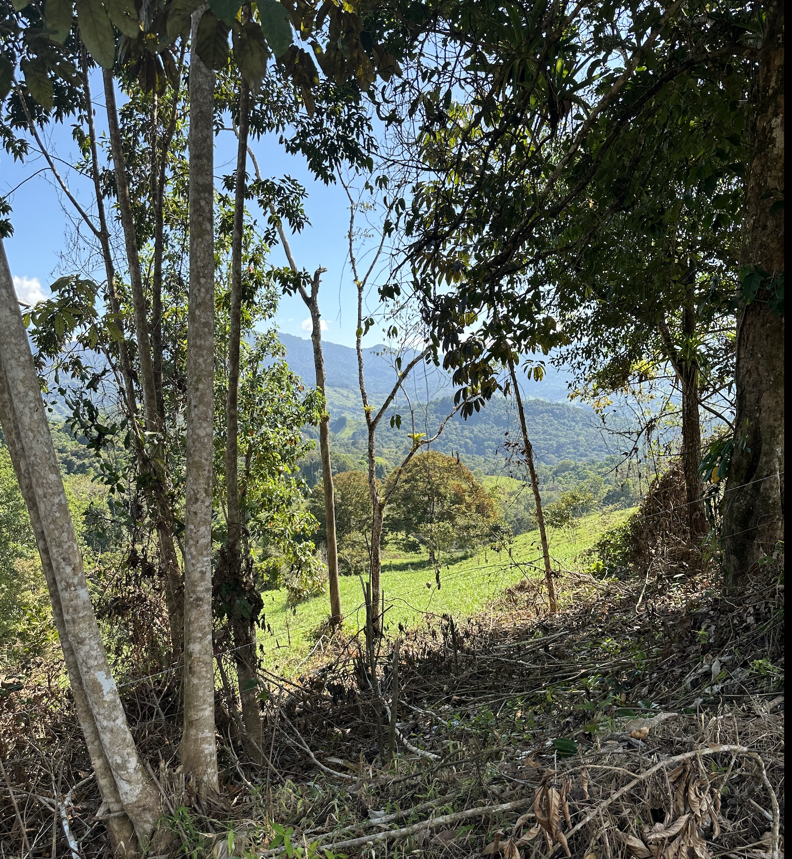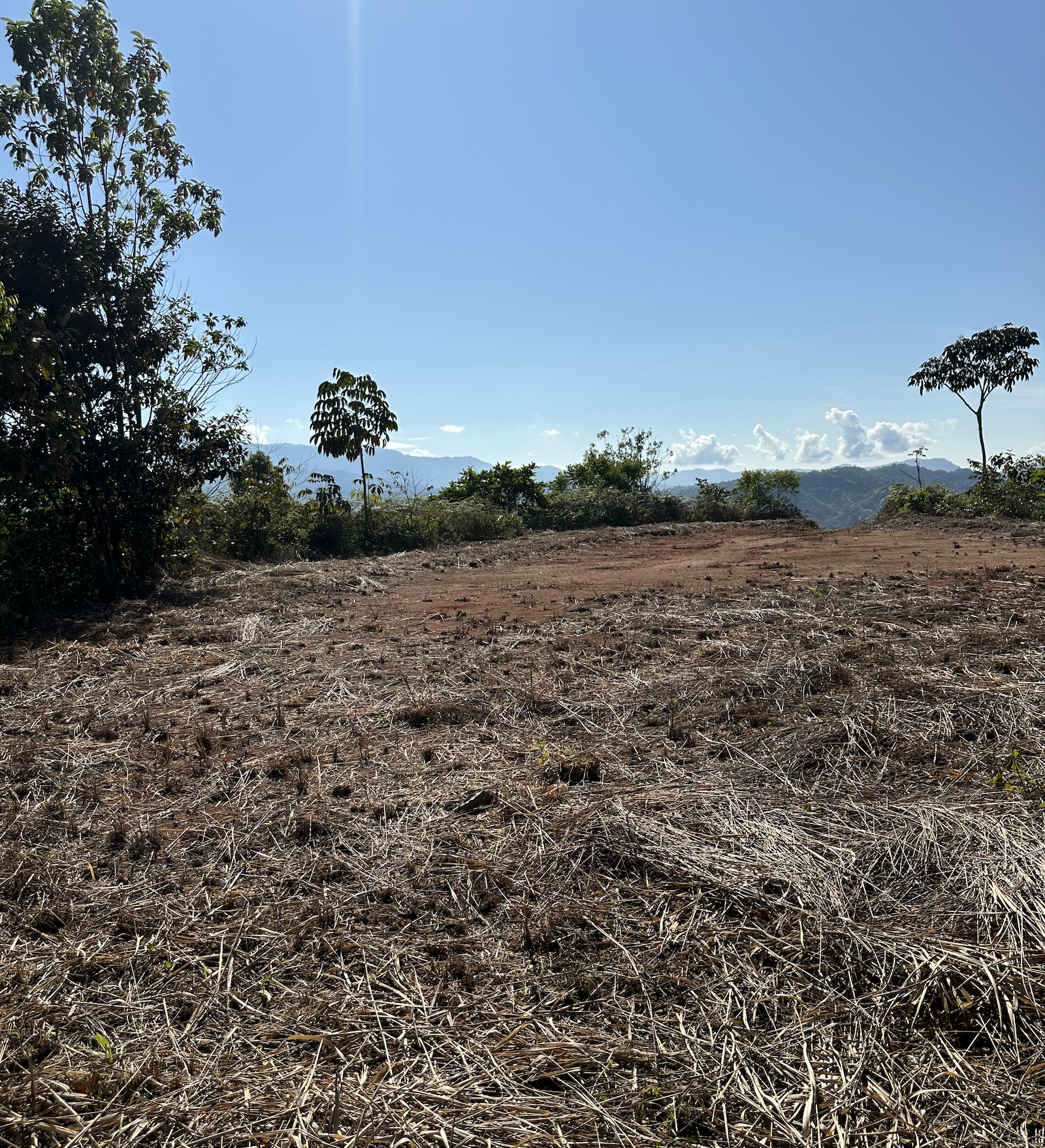 El terreno cuenta con amplias vistas panorámicas a las montañas, creando un ambiente tranquilo y espectacular para quienes buscan vivir inmersos en la belleza natural. Su topografía mayormente arbolada, complementada con pequeños pastizales, aporta sombra, frescura y un entorno ideal para proyectos residenciales o ecológicos. En la parte inferior del terreno fluye un arroyo natural, perfecto para quienes valoran los recursos hídricos y el atractivo paisajístico.
