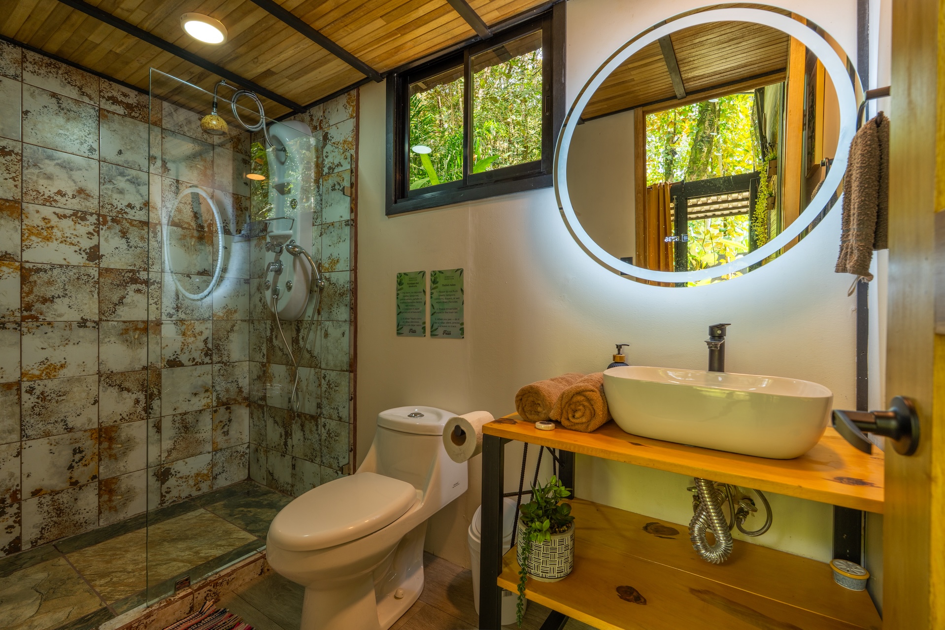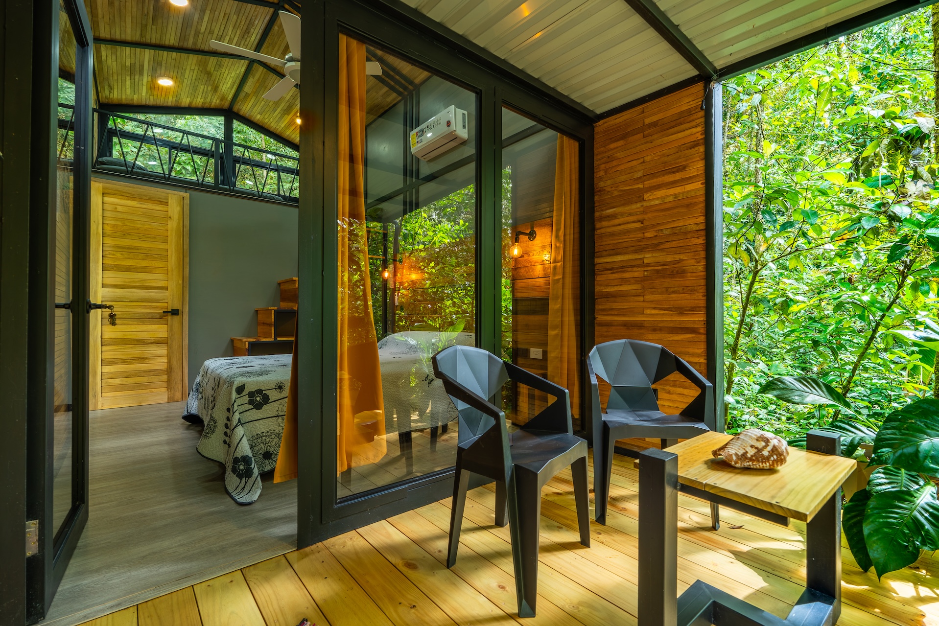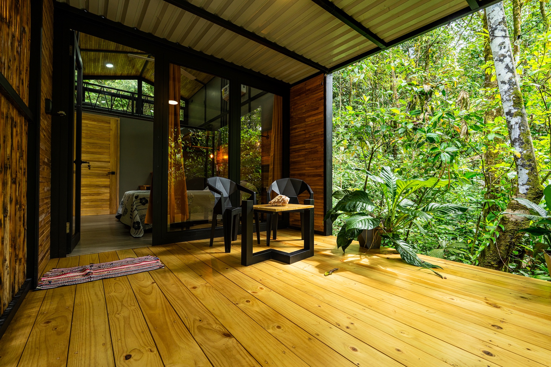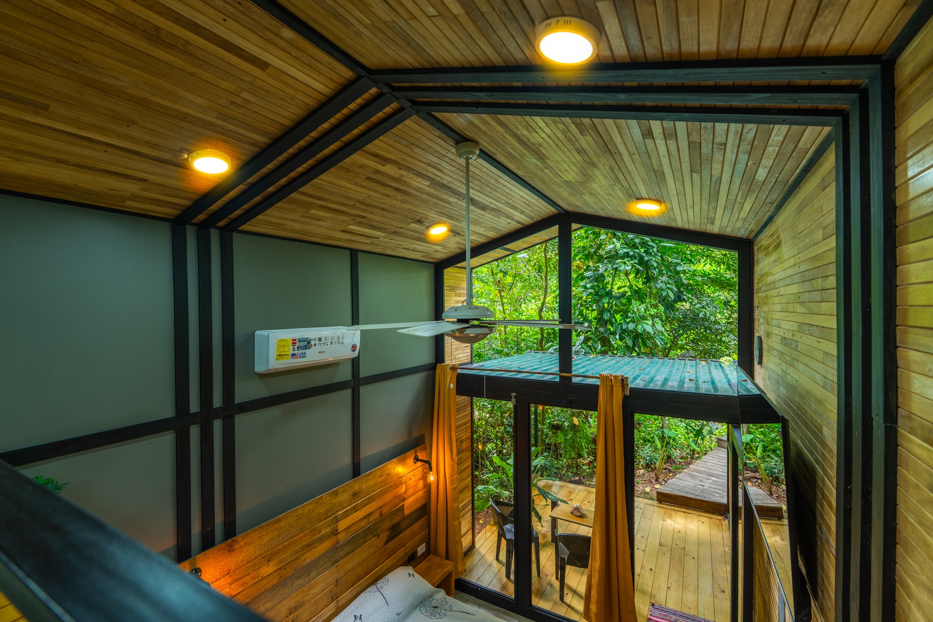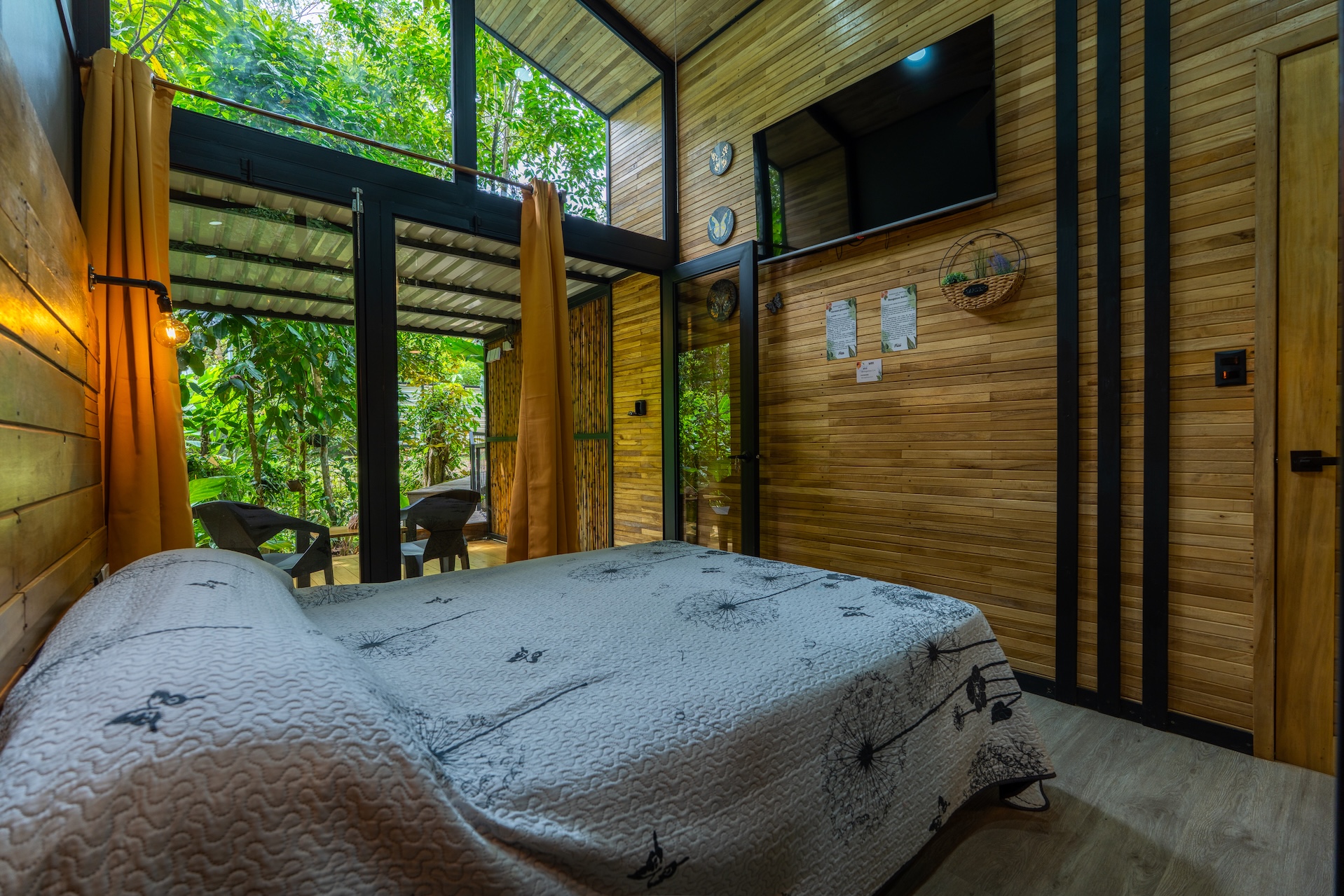 Cada bungalow es una villa independiente de diseño cuidadosamente pensado, que cuenta con un amplio dormitorio con cama king size, un entrepiso tipo loft de doble altura con cama individual, terraza privada, baño completo y finos detalles artesanales en madera. Estas unidades boutique brindan a los huéspedes una experiencia de retiro excepcional, ideal para quienes buscan privacidad, confort y una conexión auténtica con la naturaleza que las rodea.