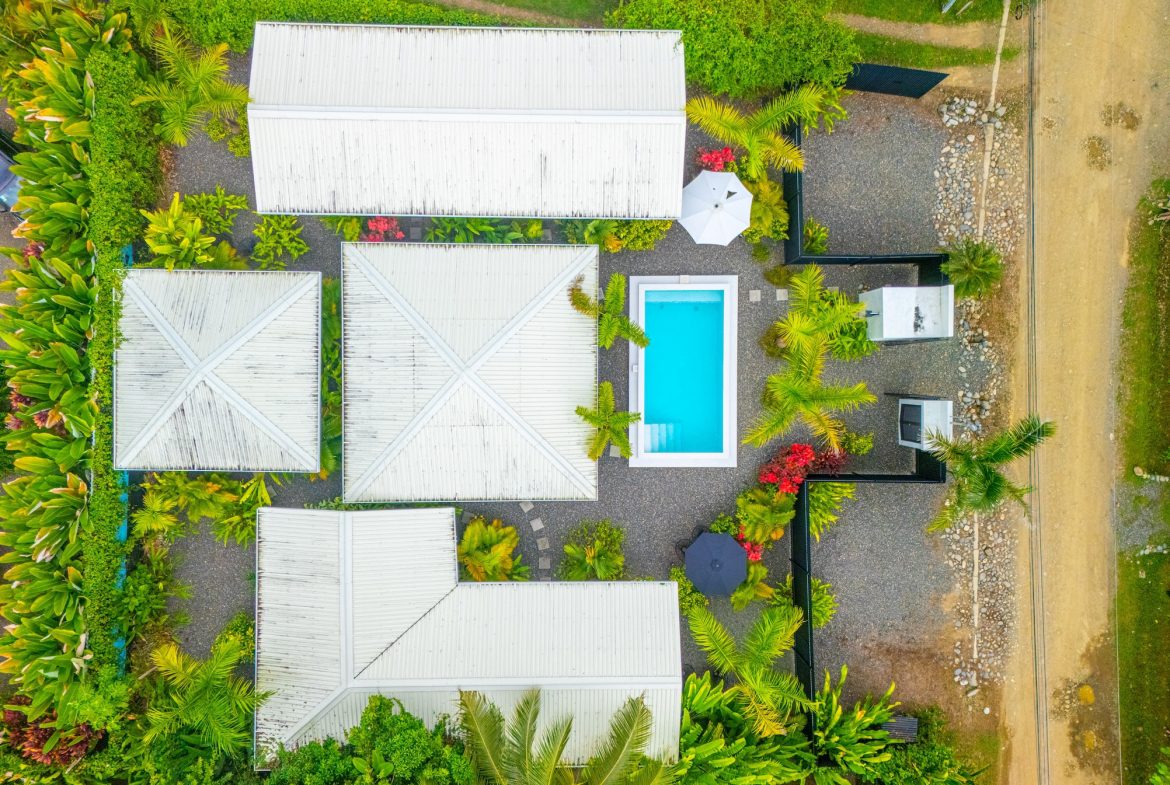 The project’s layout has been designed to encourage outdoor living, arranging four private suites around common areas that include a shared kitchen, living room, swimming pool, and a terrace specially designed for yoga and meditation. This design makes the property an ideal option for short-term rentals, a boutique hostel, or a small retreat, while offering privacy and comfort to every guest.