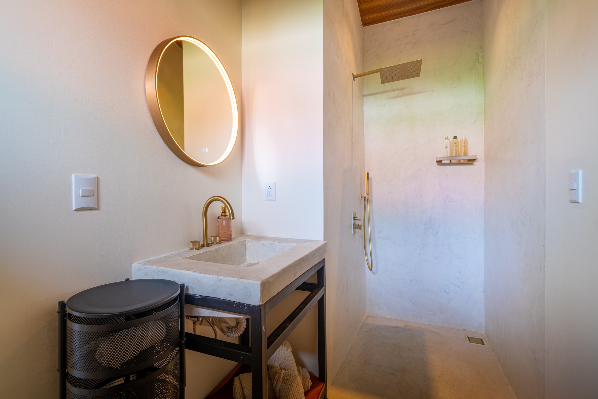 Cada suite cuenta con baño completo independiente, lo que permite adaptarse fácilmente a distintos tipos de viajeros y modalidades de reserva. El núcleo del espacio es la cocina abierta junto con la sala de estar, pensadas como un punto de encuentro para socializar, relajarse y disfrutar de una atmósfera abierta y acogedora, perfecta para recibir grupos, organizar talleres o desarrollar experiencias de retiro.