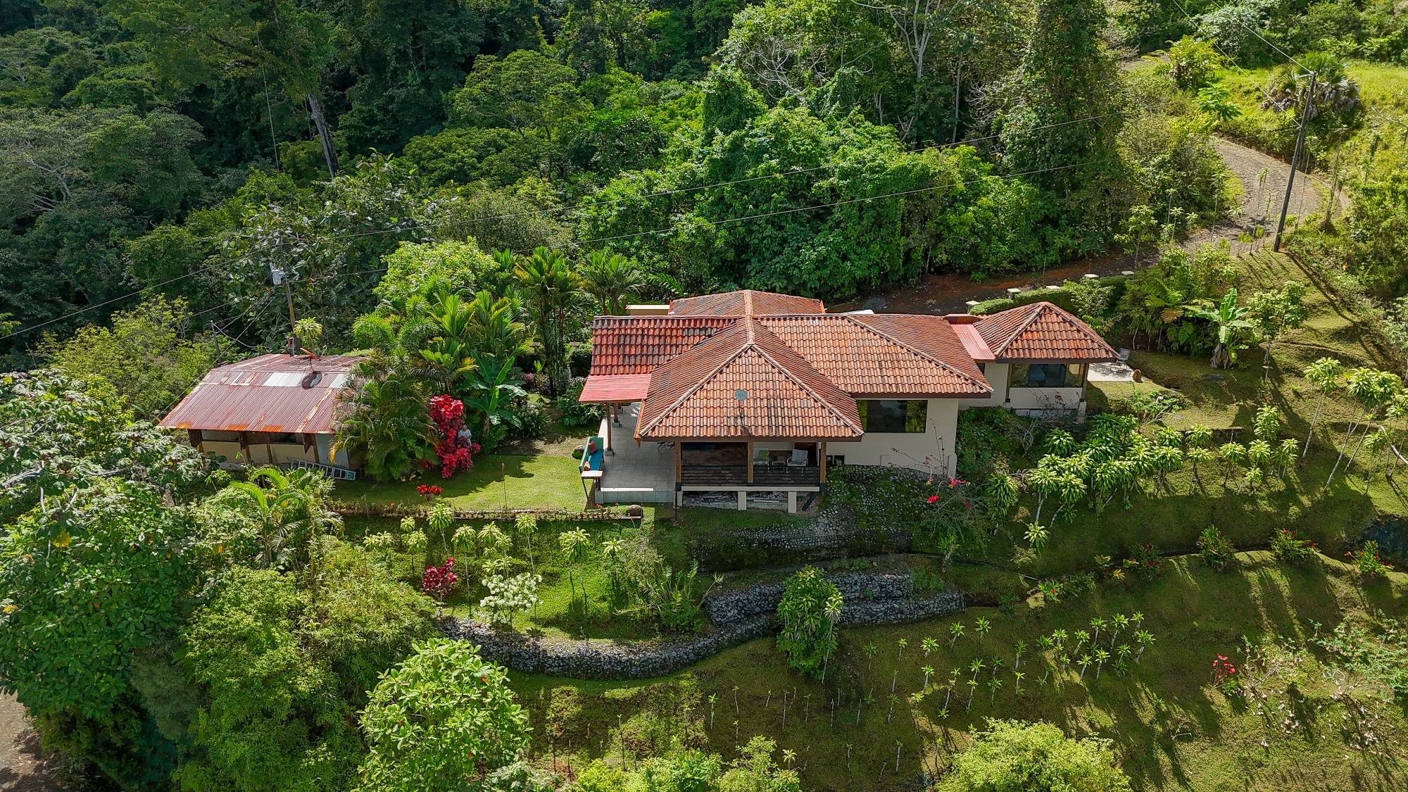 Behind the house, the coastal mountains rise to over 1,000 meters and during the rainy season reveal stunning waterfalls. The property is surrounded by abundant wildlife: monkeys, toucans, macaws, morpho butterflies, wild cats, and many more, making daily life feel like an ecotourism experience.