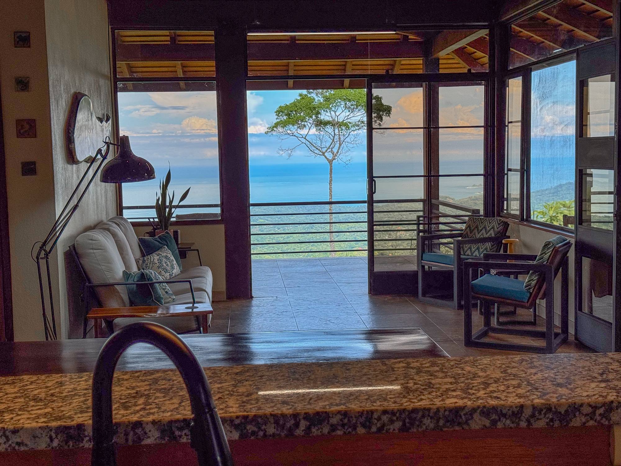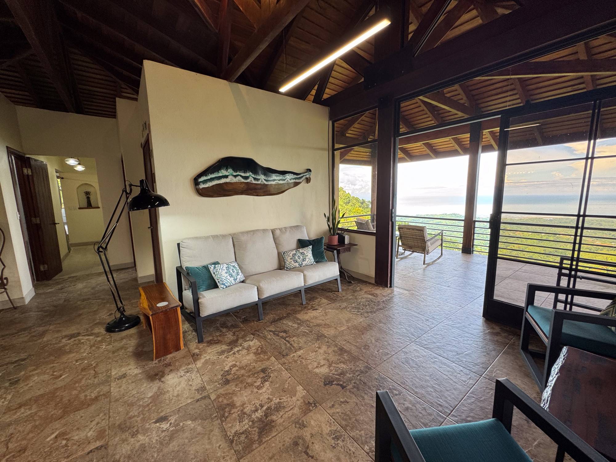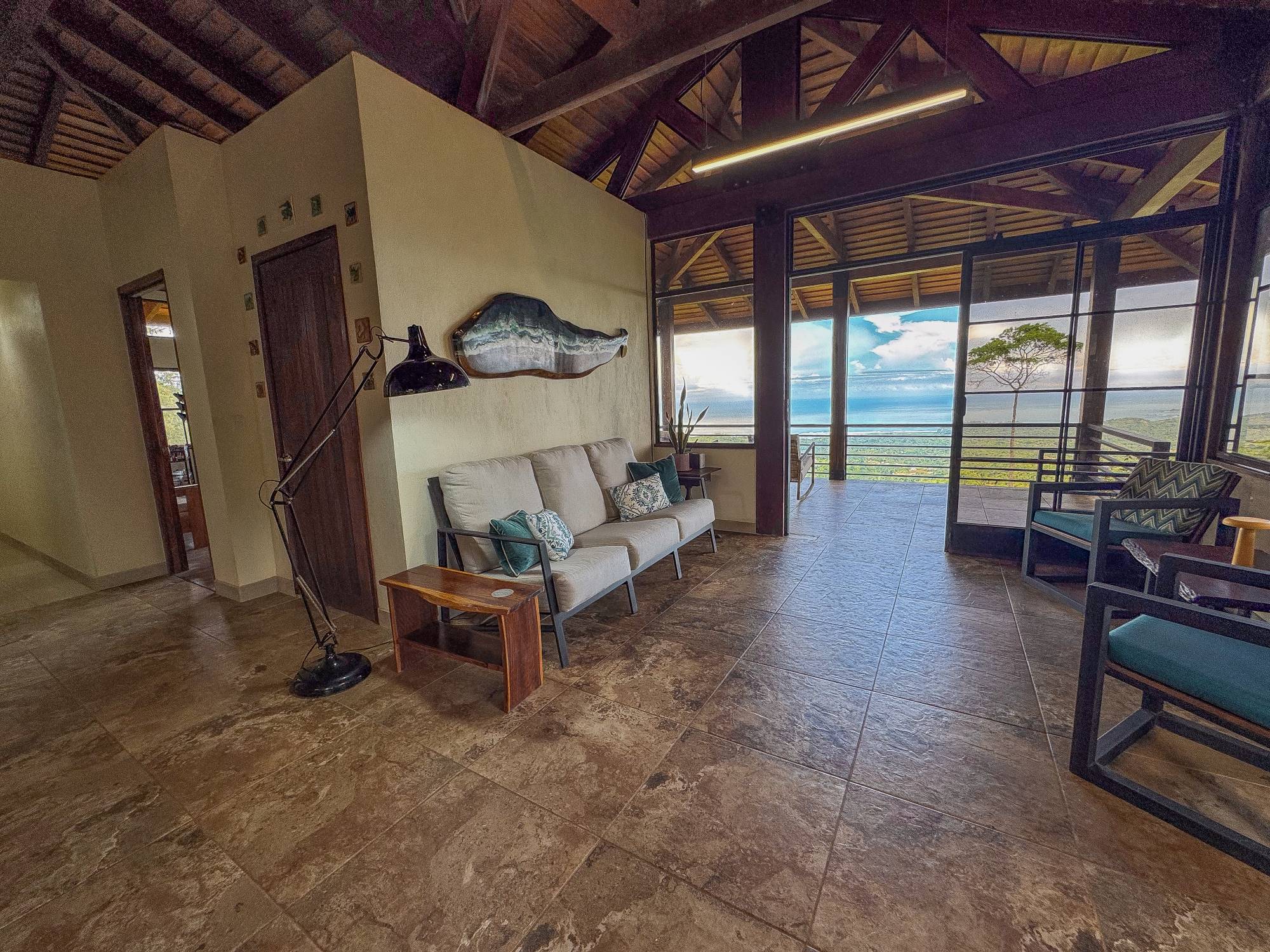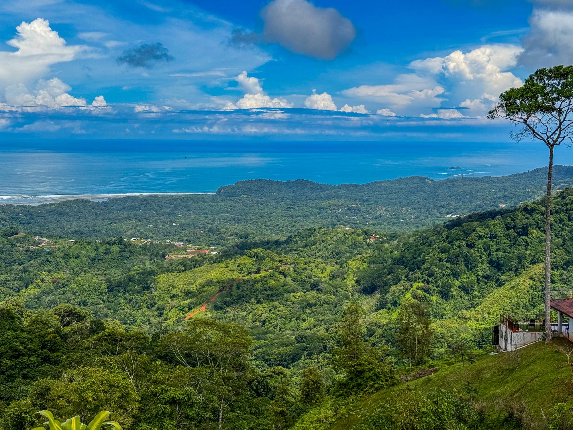 Ubicada a casi 600 metros sobre el nivel del mar, esta propiedad captura vistas de 360° que combinan el Océano Pacífico, colinas ondulantes cubiertas de selva y las impresionantes laderas montañosas de fondo. En días claros se puede observar Isla Ballena y Playa Tortuga, con sus olas rompiendo en la distancia. Cada atardecer se convierte en un espectáculo de colores vibrantes: amarillos, naranjas, carmesíes y púrpuras pintan el cielo y el mar.