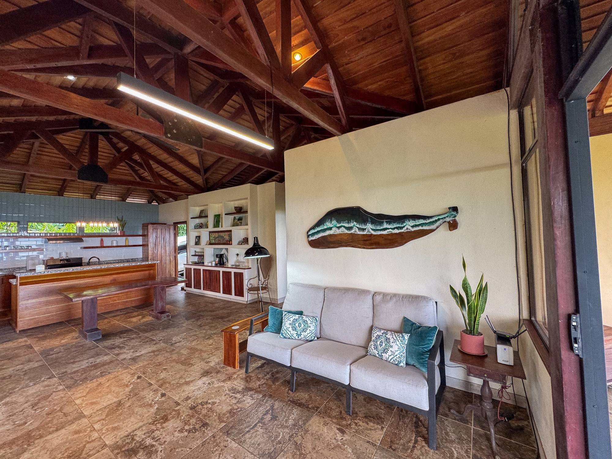 Located almost 600 meters above sea level, this property captures 360° views that combine the Pacific Ocean, rolling jungle-covered hills, and the stunning mountain slopes in the background. On clear days, you can see Isla Ballena and Playa Tortuga, their waves crashing in the distance. Every sunset becomes a spectacle of vibrant colors: yellows, oranges, crimsons, and purples paint the sky and the sea.