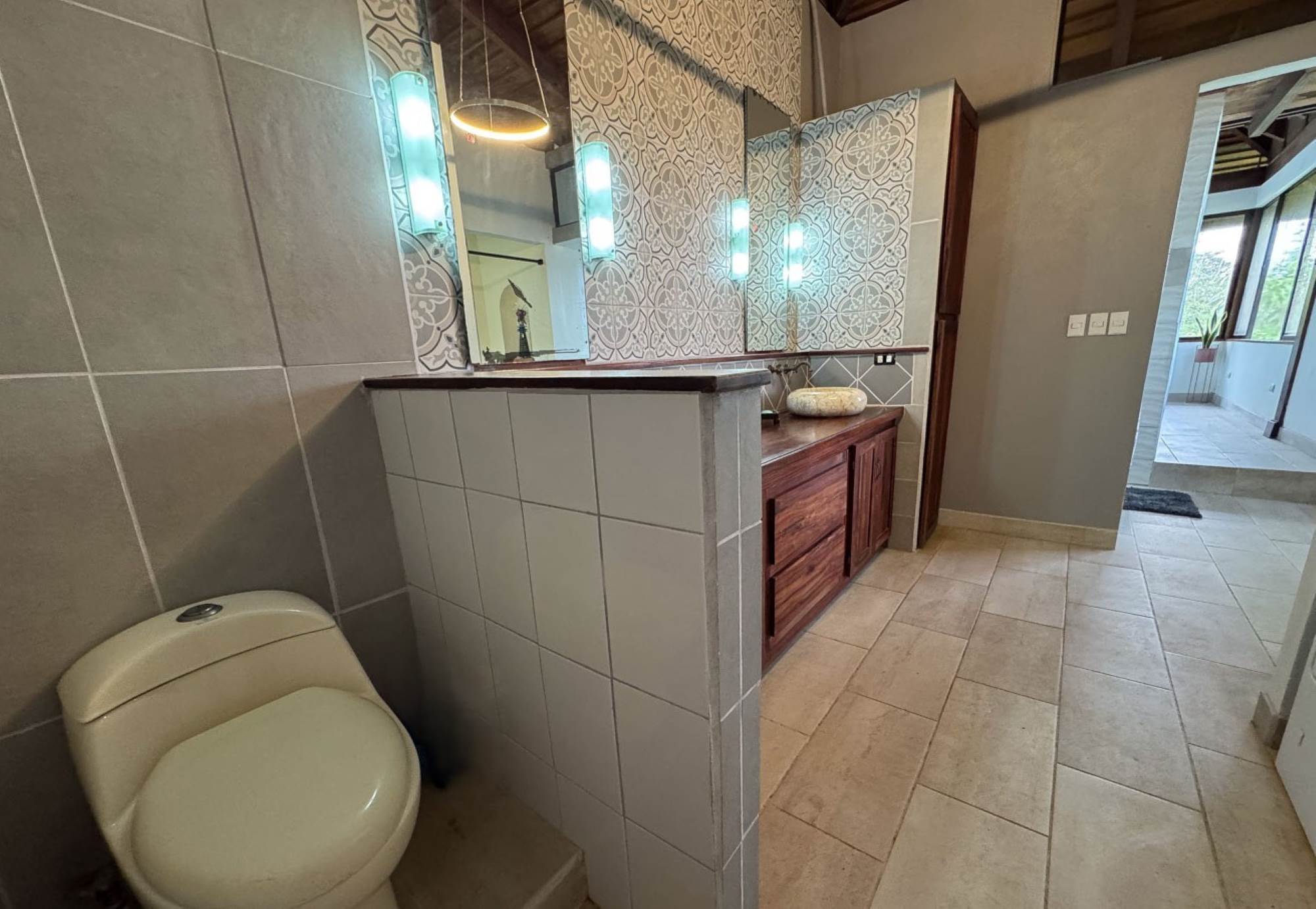 Immerse yourself in the true essence of Costa Rica with this elegant 2-bedroom, 2-bathroom home, designed in a Balinese style and nestled high in the verdant hills of Punta Mala. Surrounded by vibrant jungle, majestic coastal mountains, and boasting uninterrupted ocean and sunset views year-round, this property offers a living experience immersed in nature.