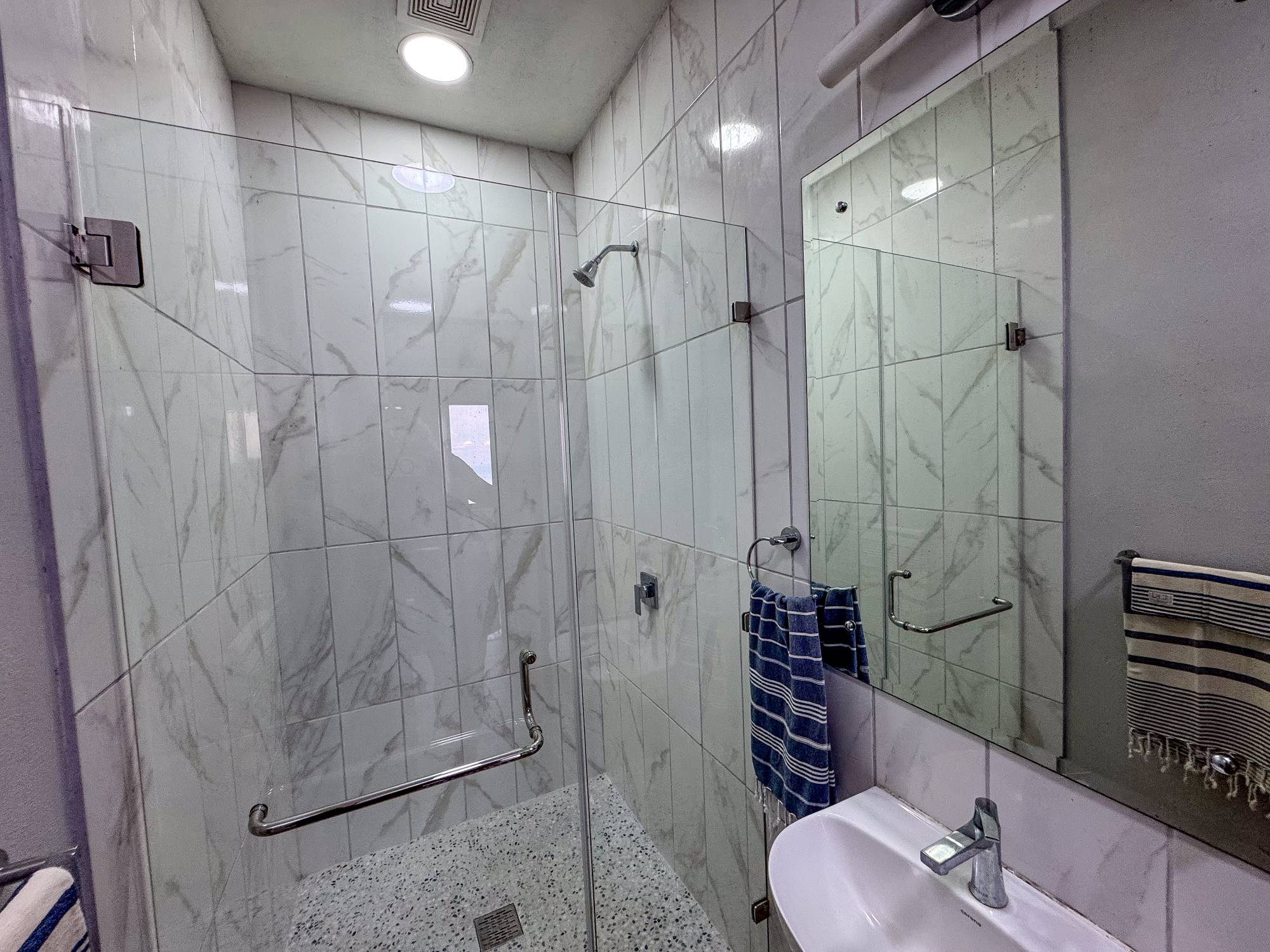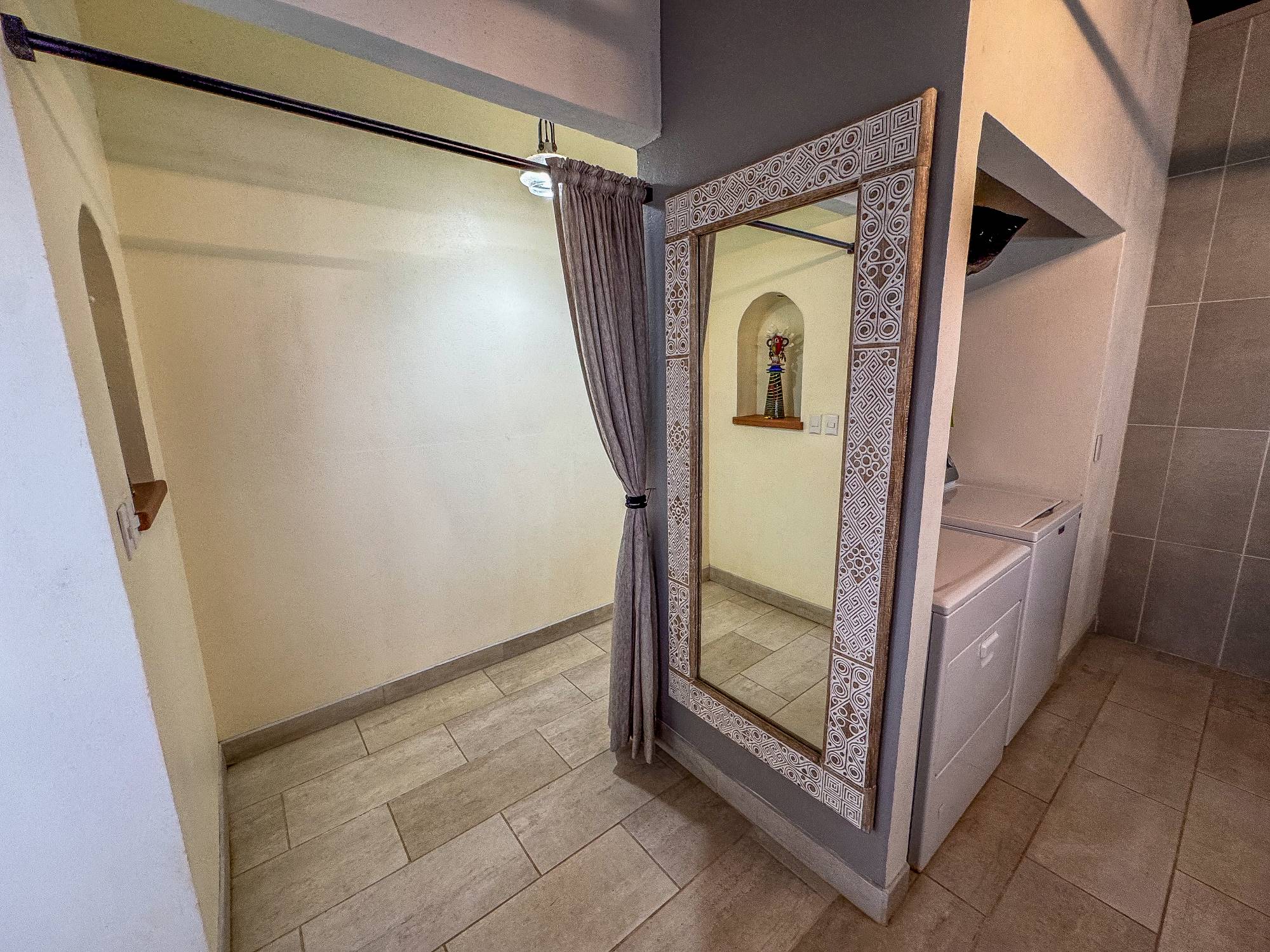 Ambos dormitorios —el principal con baño en suite, y el segundo actualmente funcionando como estudio de arte— cuentan con vistas impresionantes. La vivienda también incluye un segundo baño completo, cuarto de lavado y amplias zonas de almacenamiento