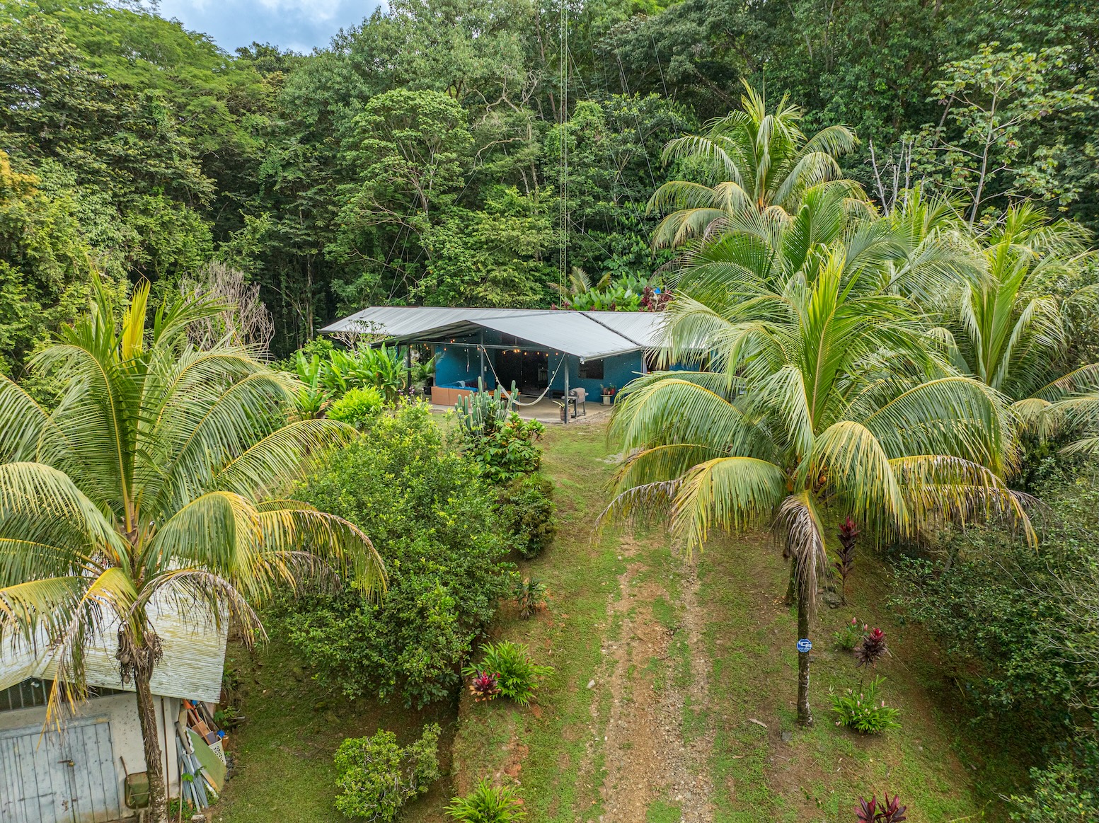 La fauna silvestre abunda: monos, tucanes, perezosos y mariposas morpho son visitantes habituales, mientras que los árboles frutales del terreno —cocos, limas, plátanos, pomelos y piñas— brindan cosechas frescas durante todo el año.