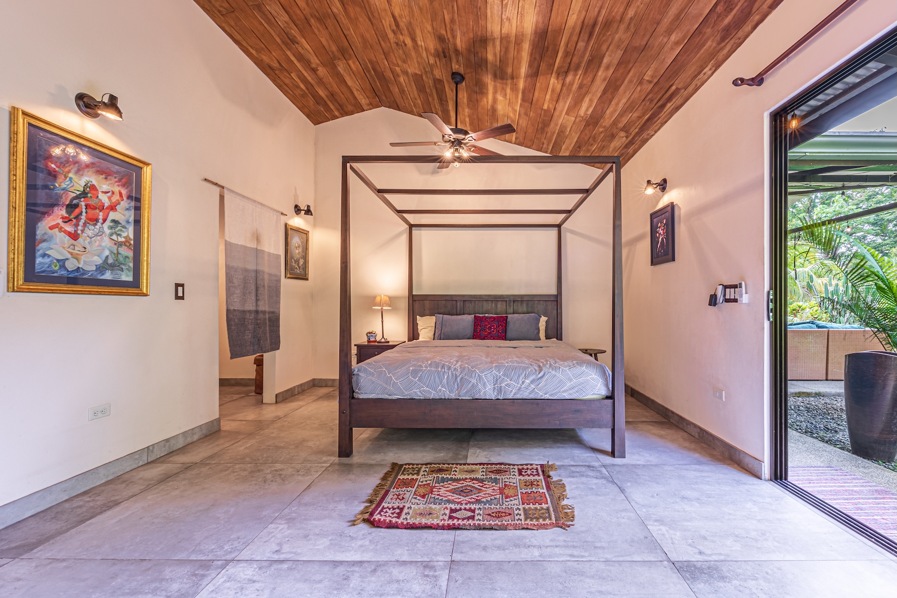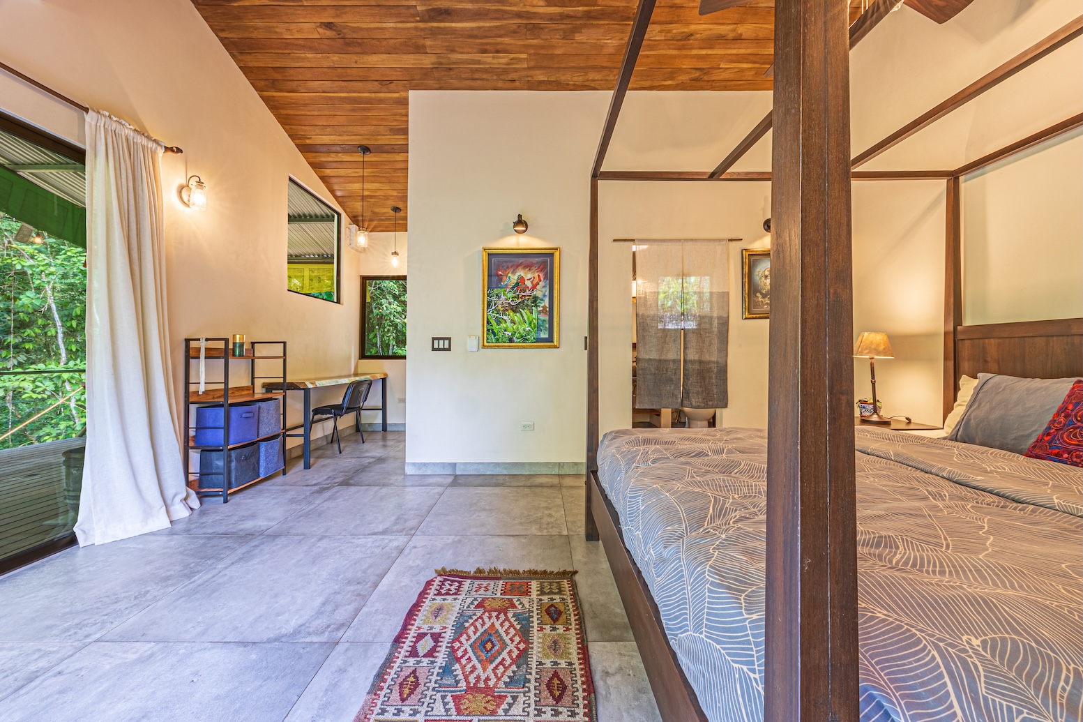 La suite principal es un verdadero santuario: cuenta con baño privado, vestidor, aire acondicionado y una terraza de madera de 18.5 m² con vistas al apacible río Media Luna. Un espacio ideal para meditar, practicar yoga o disfrutar de la tranquilidad del entorno. Además, dispone de entrada independiente, brindando total privacidad y comodidad.