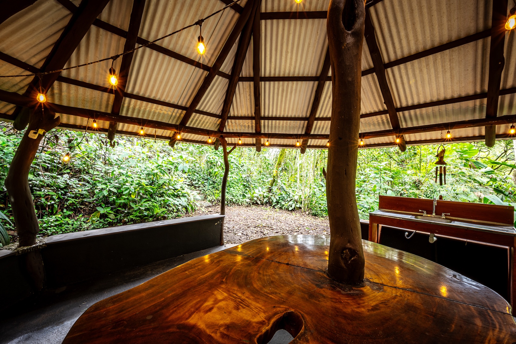 Más allá de la casa principal, la propiedad ofrece pequeñas joyas escondidas entre la vegetación: dos encantadoras cabañas en medio de la selva. “La Casita”, cálida y acogedora, se siente como una casa del árbol para adultos, mientras que “La Cabina” ofrece un espacio íntimo para visitantes o una excelente oportunidad de alquiler tipo Airbnb. Un rancho rústico al aire libre es el lugar perfecto para cenas iluminadas por guirnaldas, y los senderos privados te llevan hasta un arroyo perenne, donde la única música es la de la naturaleza.