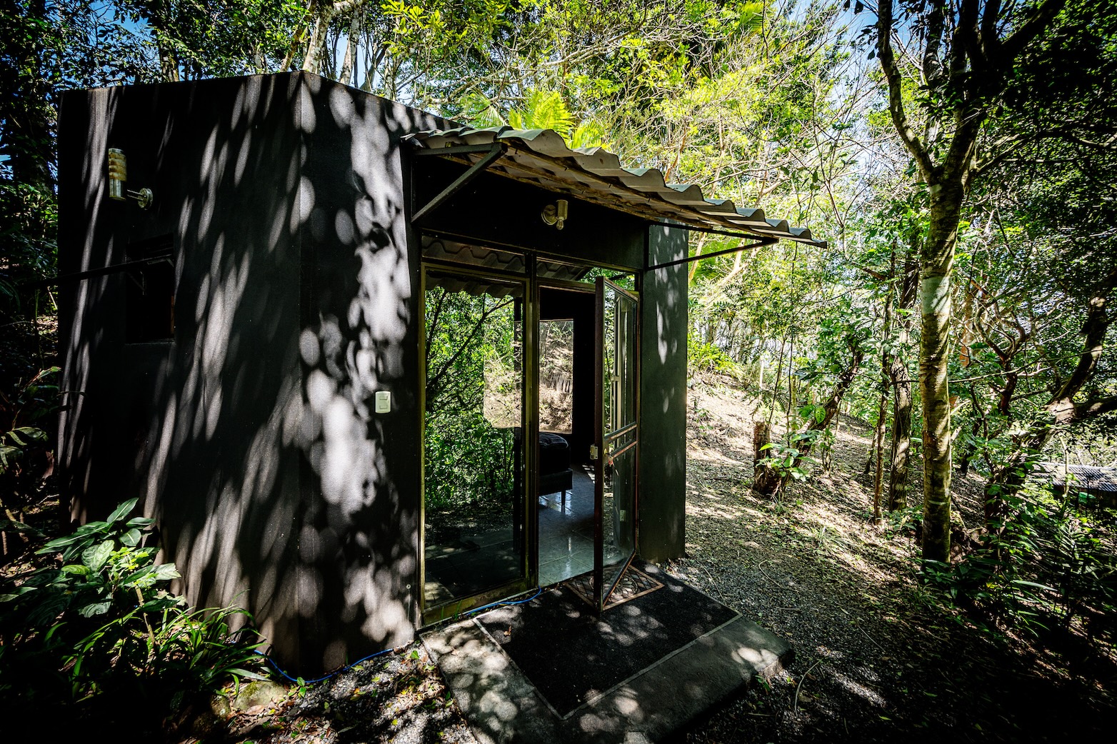 Beyond the main house, the property offers little gems hidden among the vegetation: two charming cabins nestled in the jungle. “La Casita,” warm and cozy, feels like a treehouse for adults, while “La Cabina” offers an intimate space for visitors or a great Airbnb-style rental. A rustic open-air rancho is the perfect spot for garland-lit dinners, and private trails lead to a perennial stream, where the only music is that of nature.