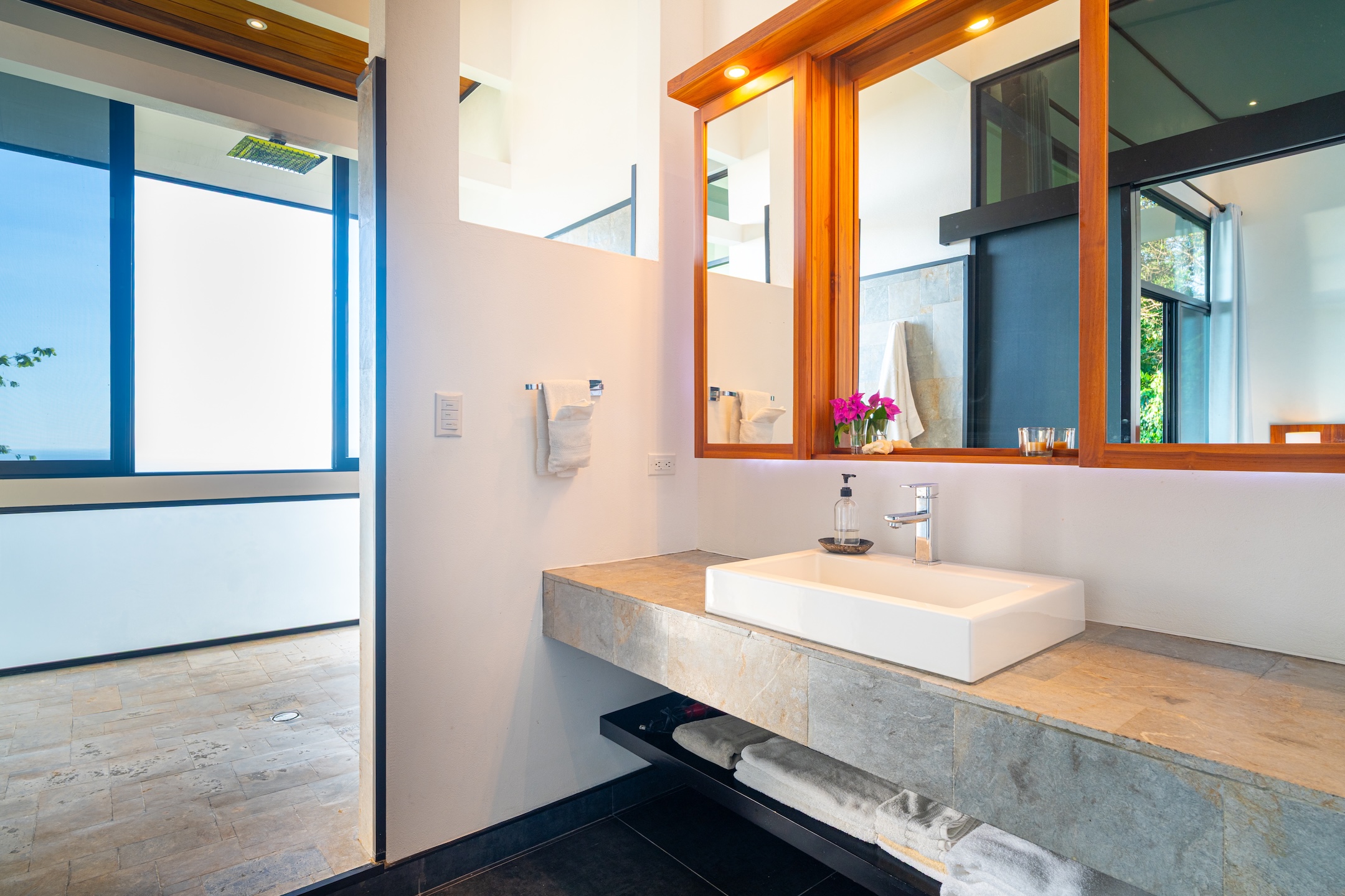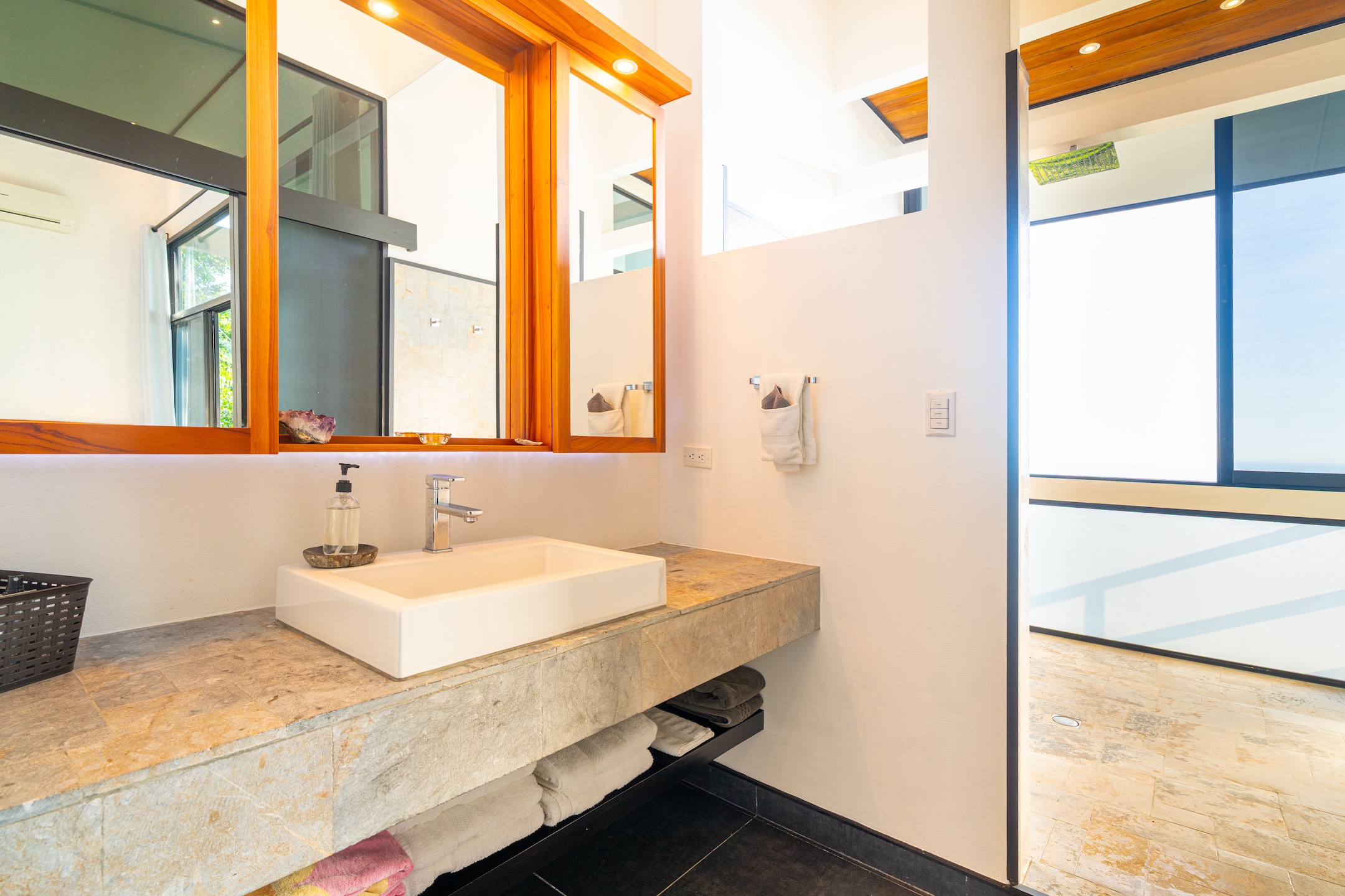 The property, composed of three spacious suites, has been thoughtfully designed to blend seamlessly with its natural surroundings. Large windows and sliding glass doors allow light and ocean breezes to flow freely, creating fresh, open spaces where indoor and outdoor living connect effortlessly.