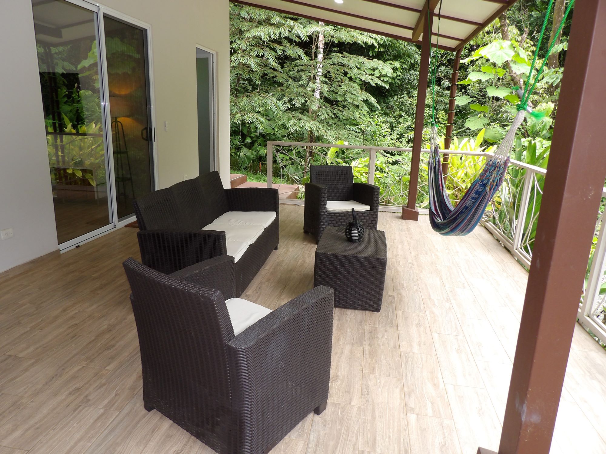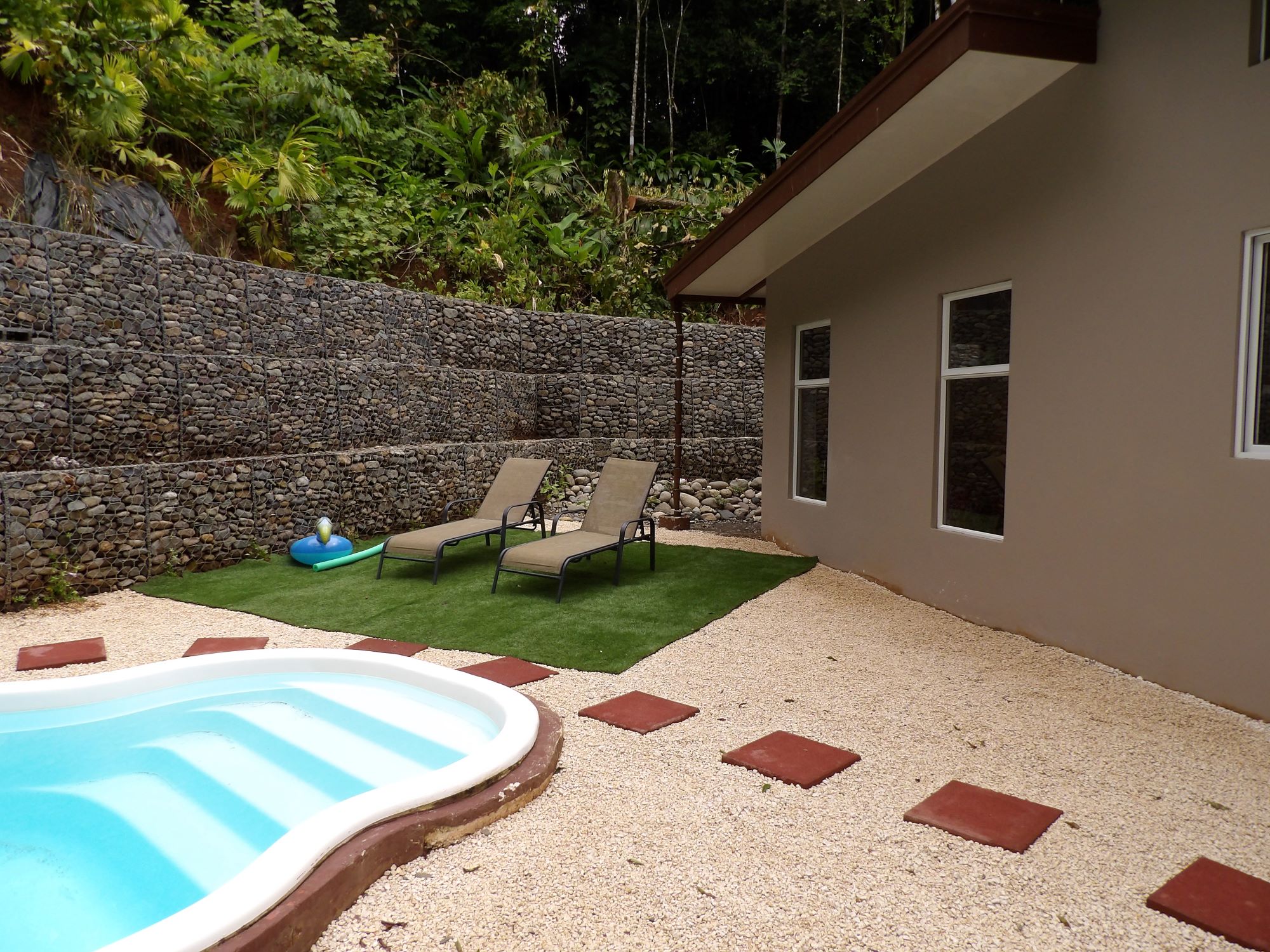 La piscina privada, rodeada de vegetación tropical, es el lugar perfecto para relajarse mientras se observa la fauna local. Es habitual recibir la visita de lapas rojas, tucanes, monos, un perezoso residente y hasta una familia de armadillos, ofreciendo una experiencia natural verdaderamente única.