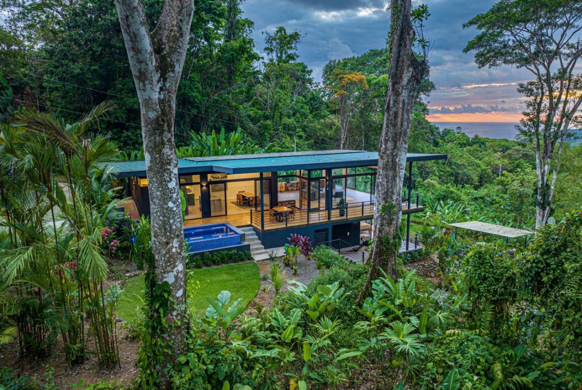 Descubra un espacio único donde el lujo moderno se fusiona con la impresionante belleza de la selva costarricense. Ubicada al final de un tranquilo camino, esta propiedad ofrece una combinación inigualable de tranquilidad, privacidad y un increíble entorno natural. Dentro de las frondosas copas de los árboles, la casa captura impresionantes vistas del follaje y del océano a lo lejos, invitándolo a disfrutar de un estilo de vida de serenidad y conexión con la naturaleza