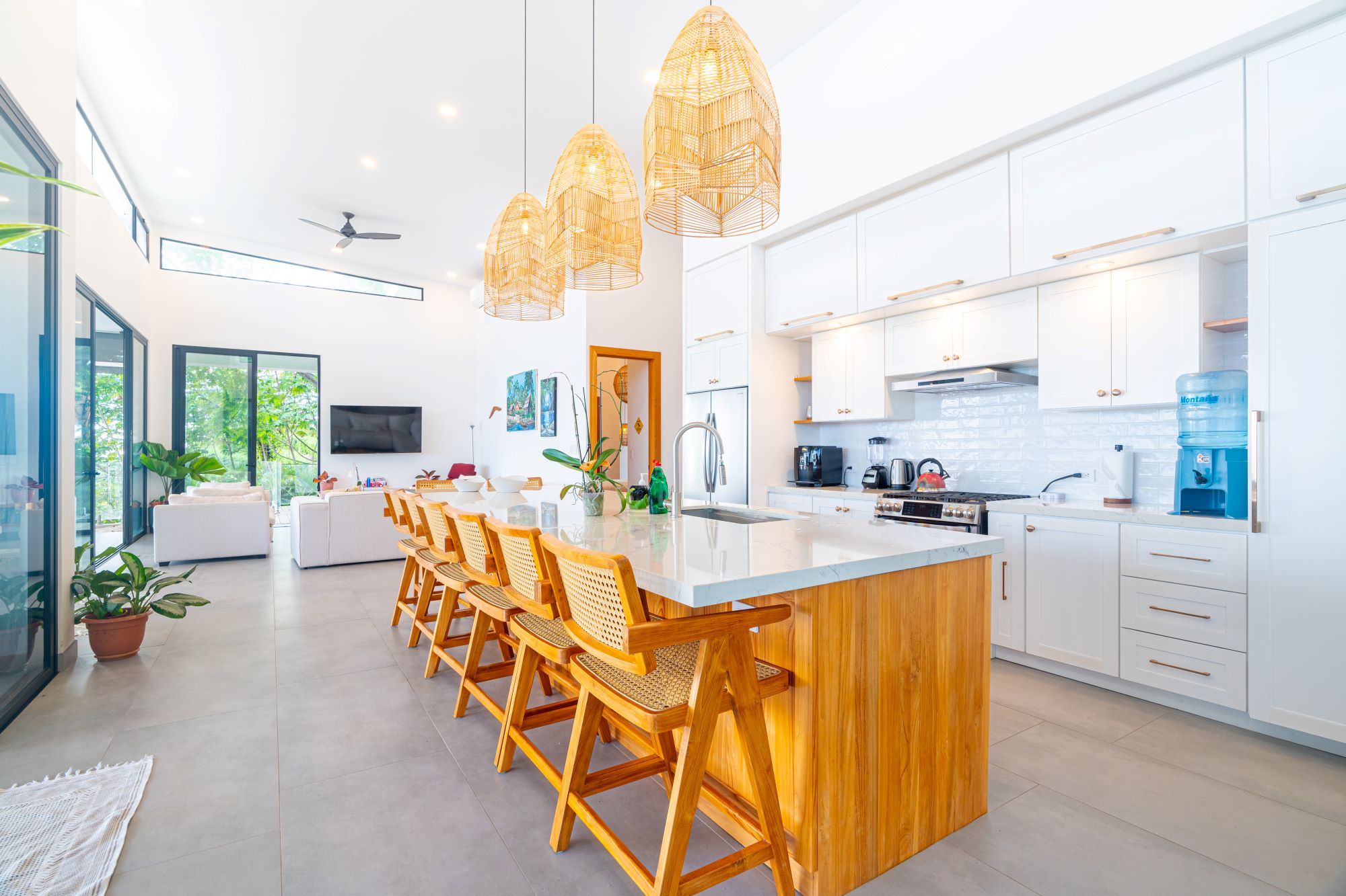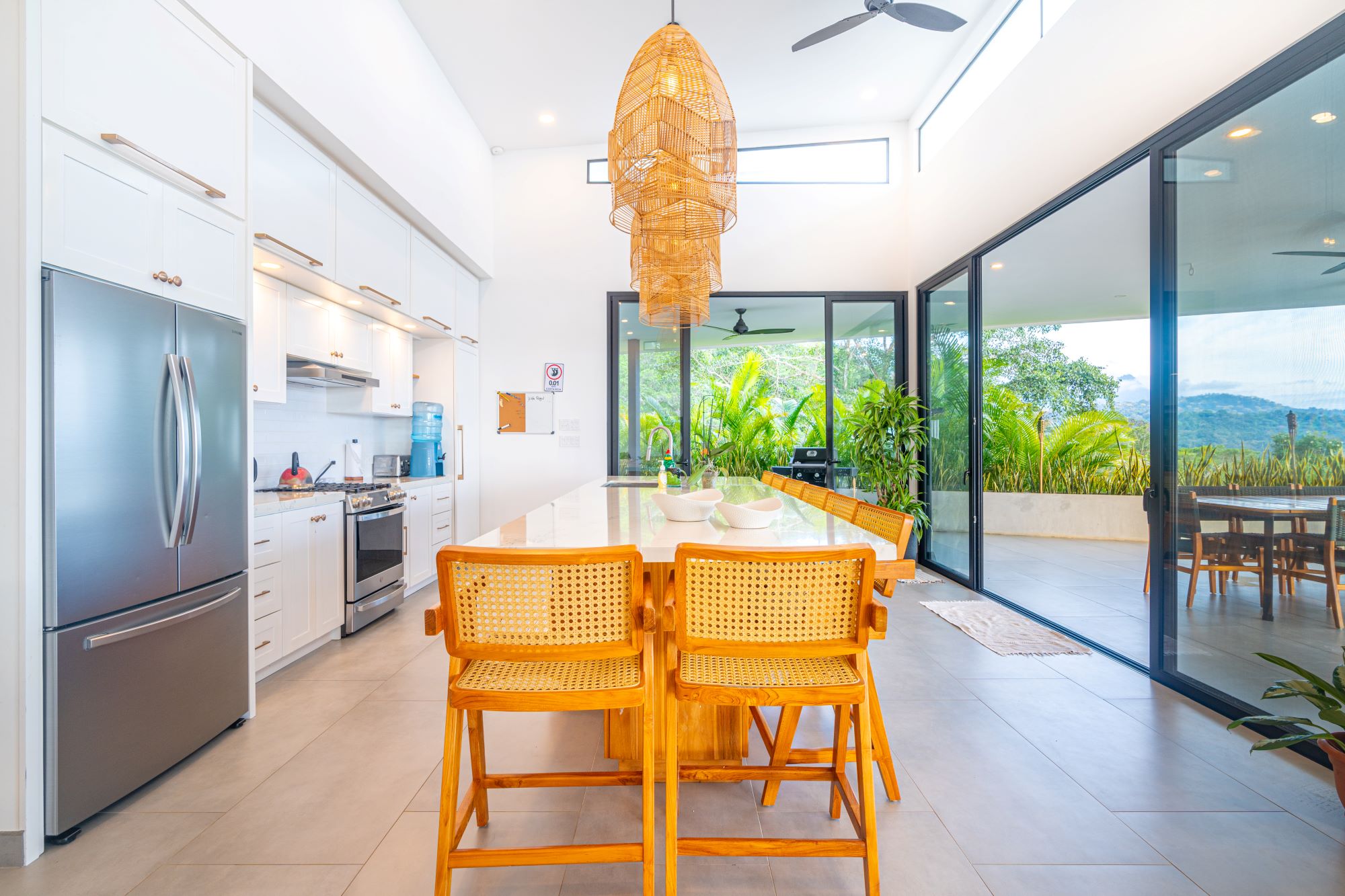 - A fully equipped gourmet kitchen with an oversized center island.