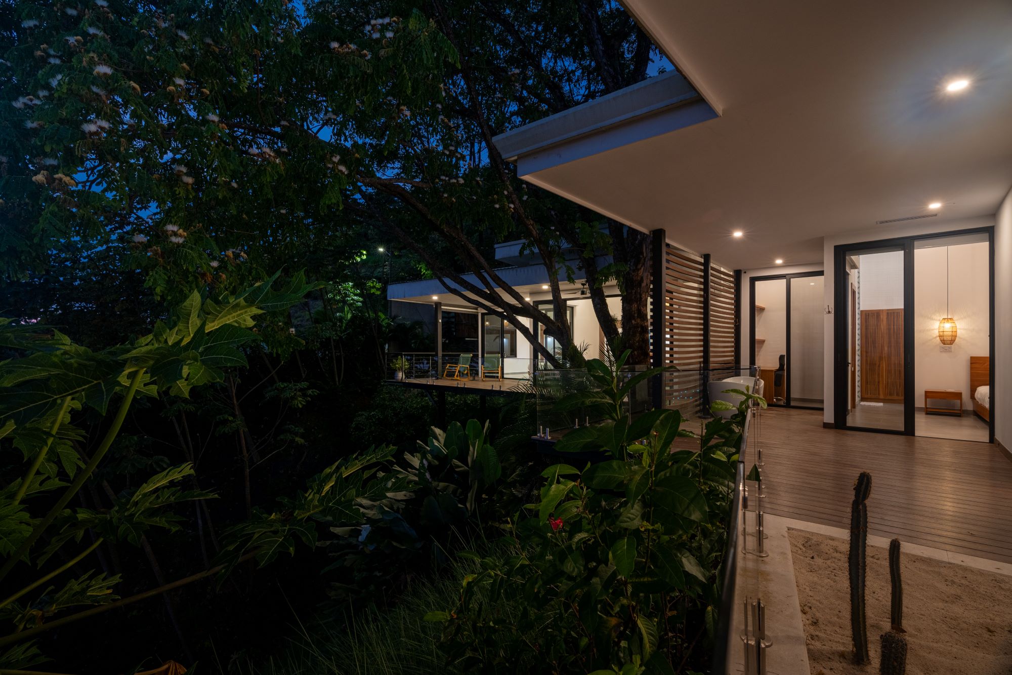 - A luxurious master suite with a double shower, outdoor tub, and its own private patio.