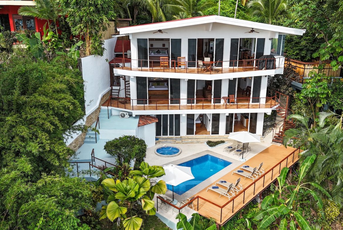 Designed with meticulous attention to detail and focused on well-being, this three-level villa features 4.5 elegantly appointed bathrooms and air conditioning in every room , ensuring coolness and comfort throughout your stay. The balconies on the two upper levels offer breathtaking views of the ocean, the rainforest, and the surrounding area, where it’s common to spot monkeys, sloths, and colorful birds that inhabit this natural paradise.