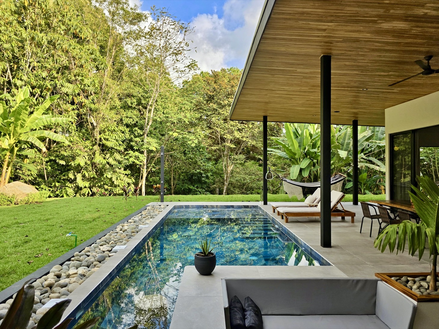 Discover this spectacular new three-bedroom home, situated on a spacious 1.8-acre lot that is mostly flat and surrounded by lush rainforest, with views of the Ojochal mountains and just minutes from the ocean. It’s the perfect combination of a nature-based lifestyle and a vibrant, cosmopolitan community.