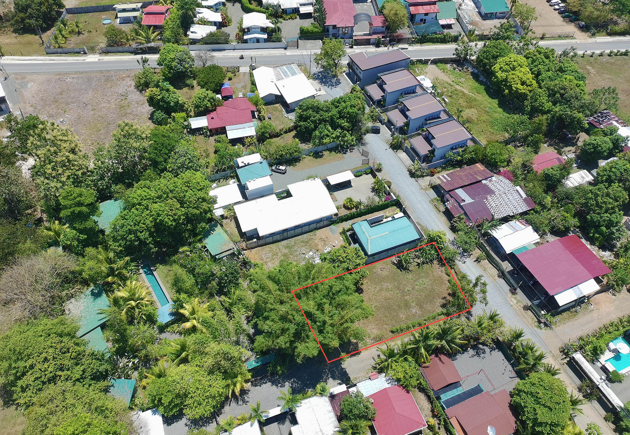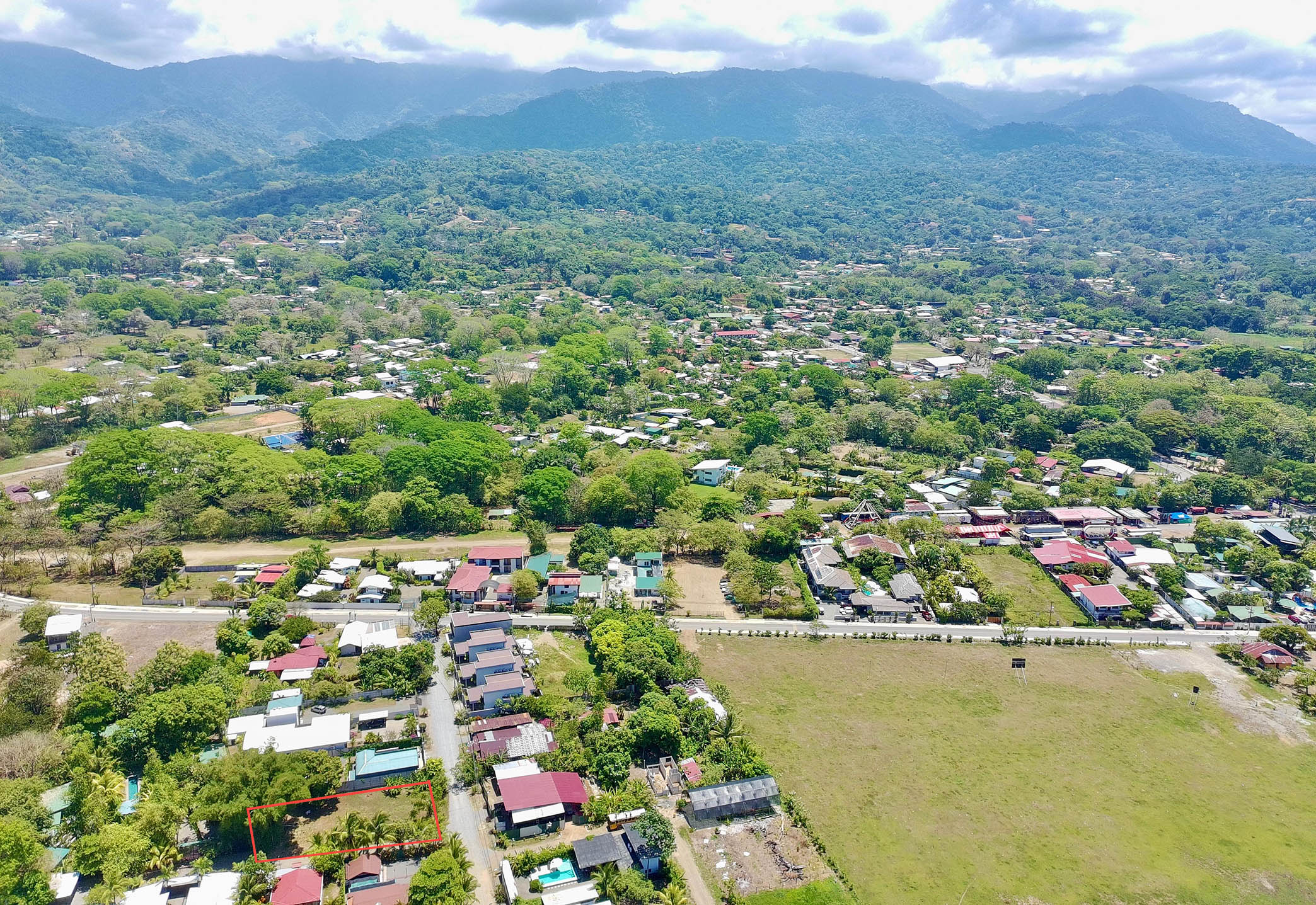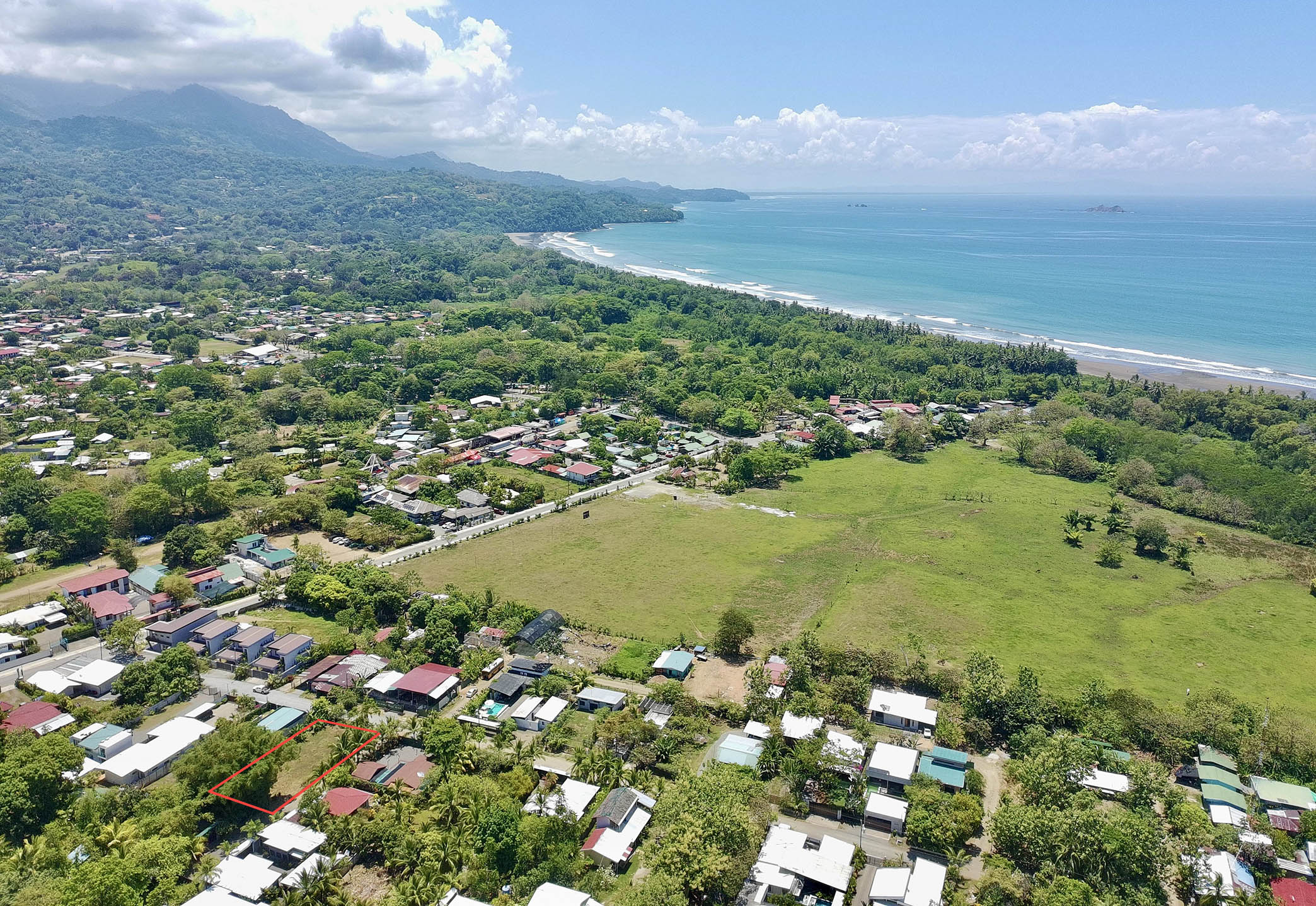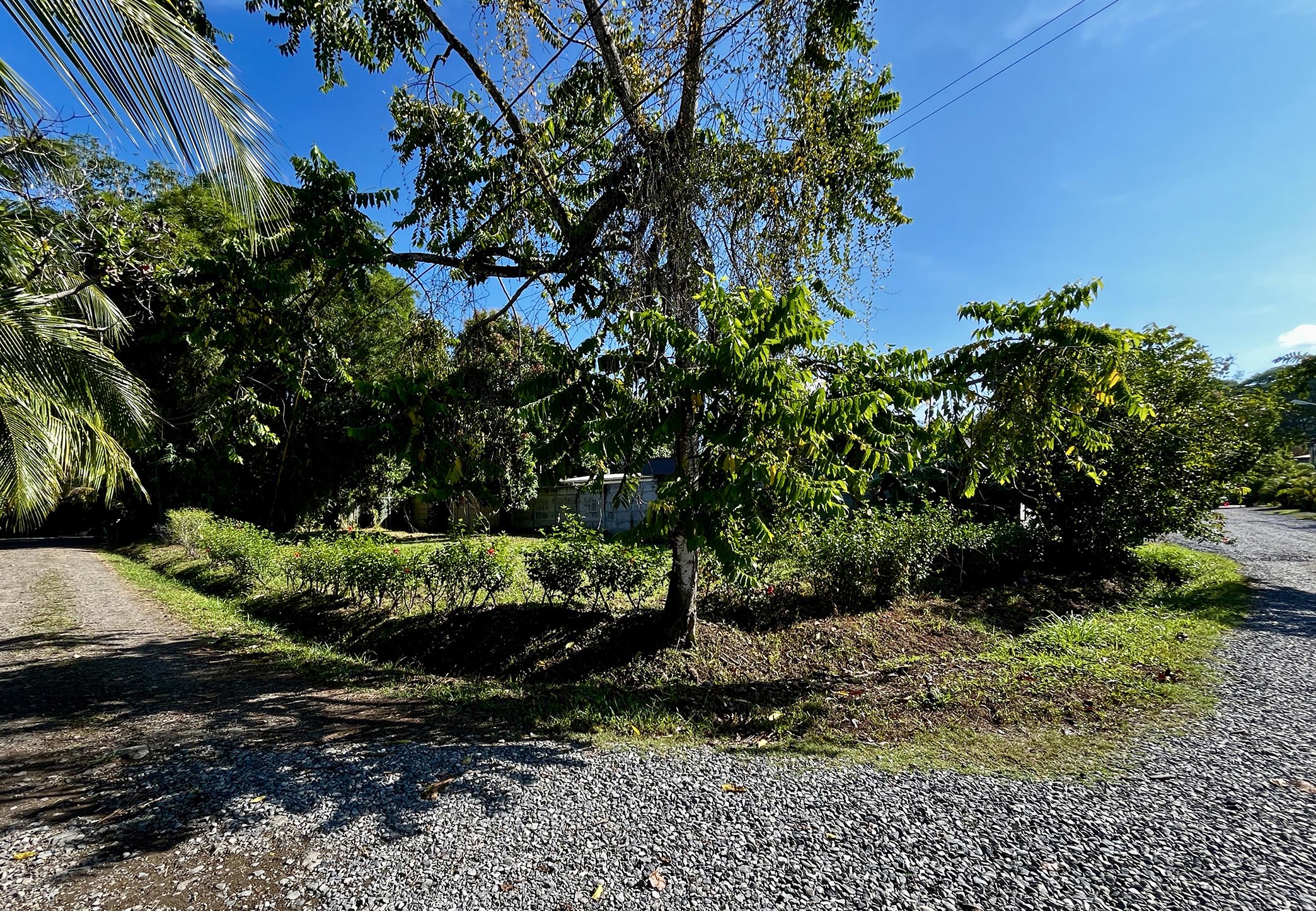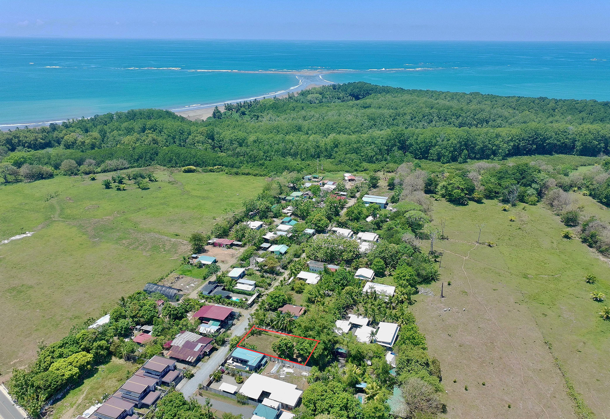 First, this property is highlighted by its location— close to the growing town of Uvita and even closer to the Marino Ballena National Park. Featuring easy 2wd access, this corner lot is wrapped on two sides by public roads and thus zoned for residential and commercial use, a big benefit. Many of the neighbors have recently taken advantage of this mixed-use zoning, including— a new commercial center and café at the entrance to the main road, three modern townhouses and three contemporary villas… all independently built within the last year, all fully occupied!