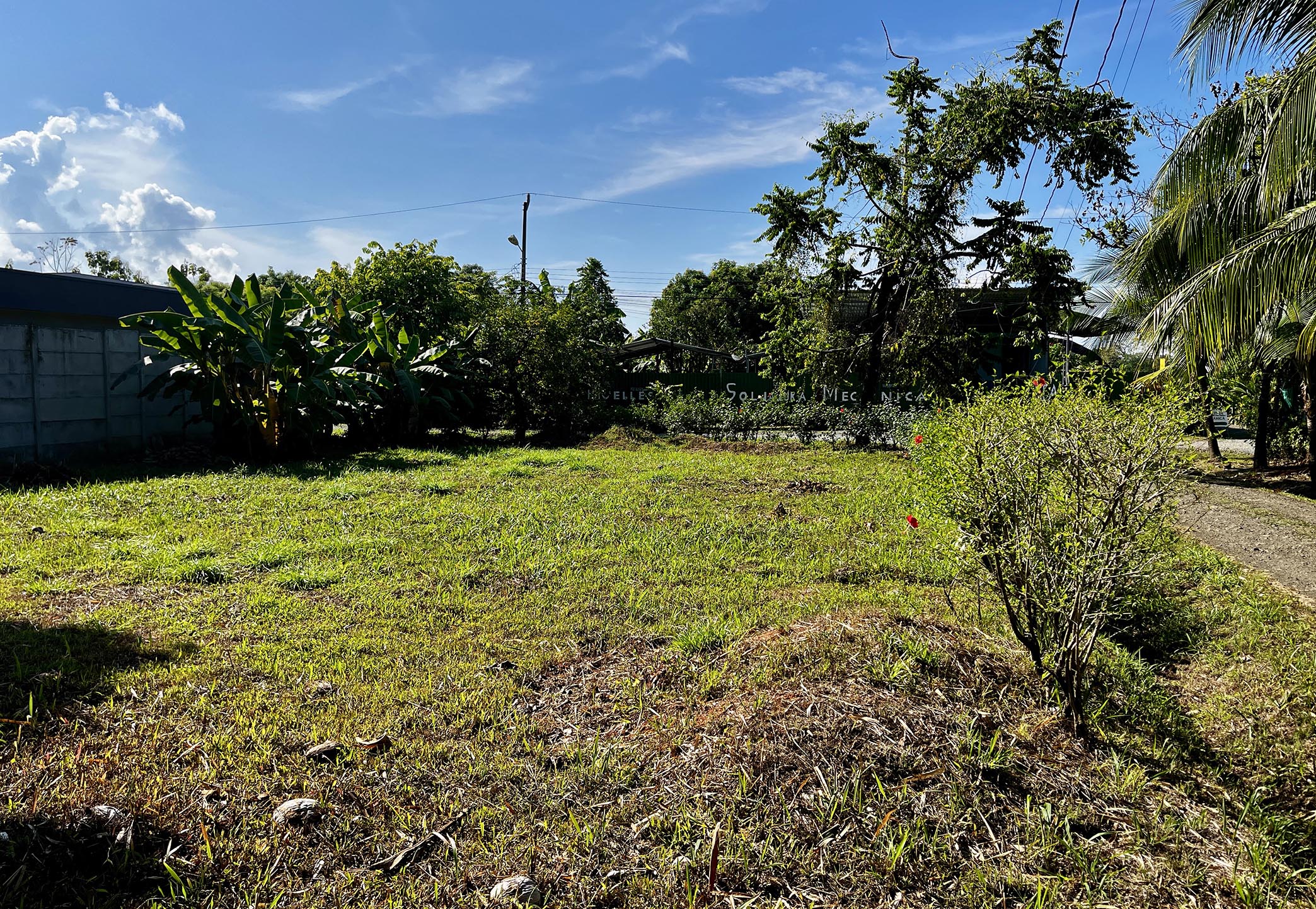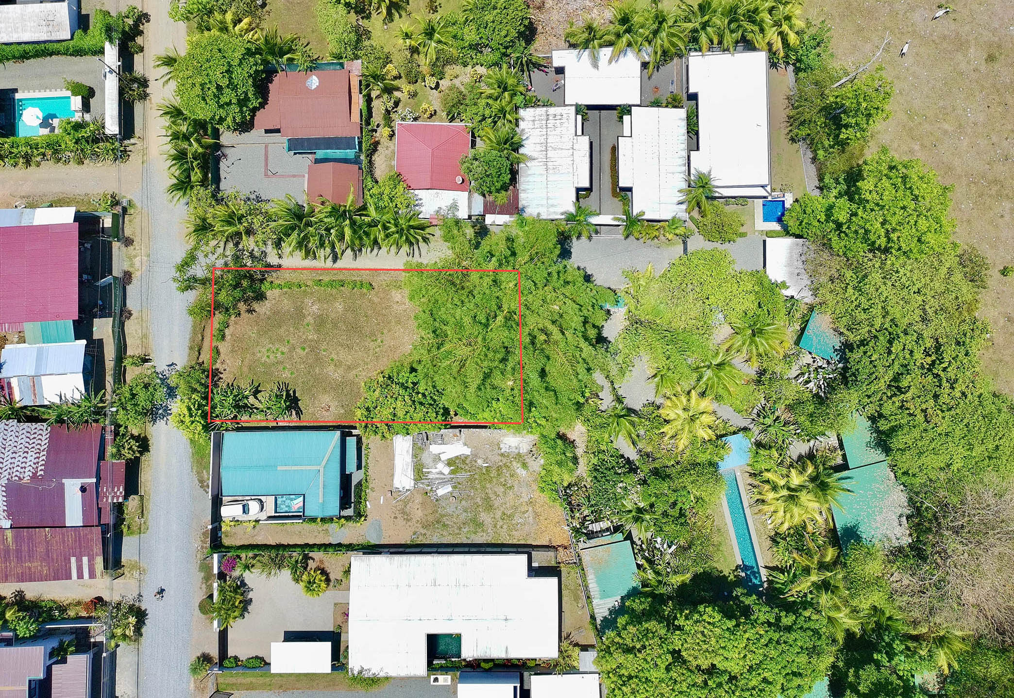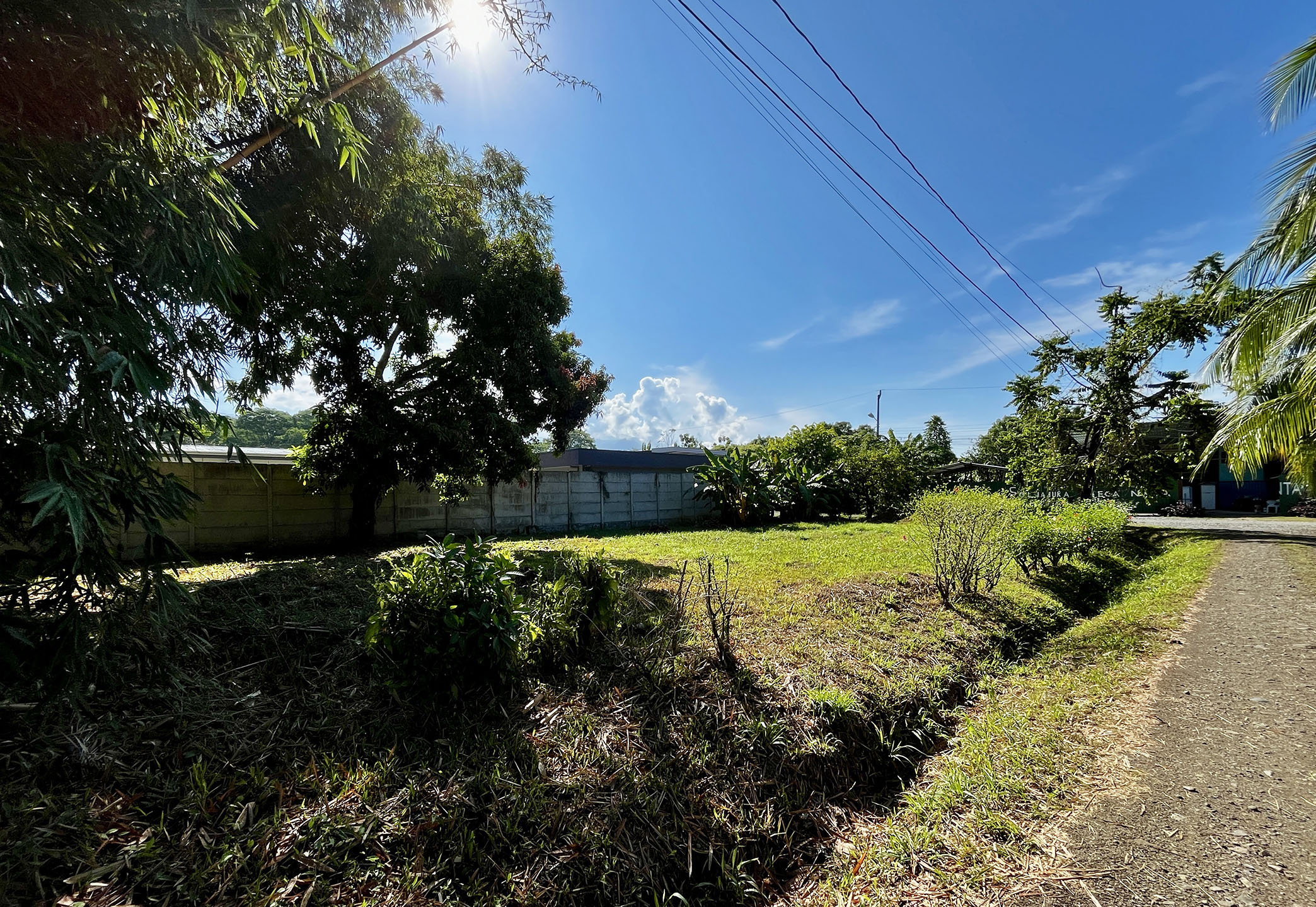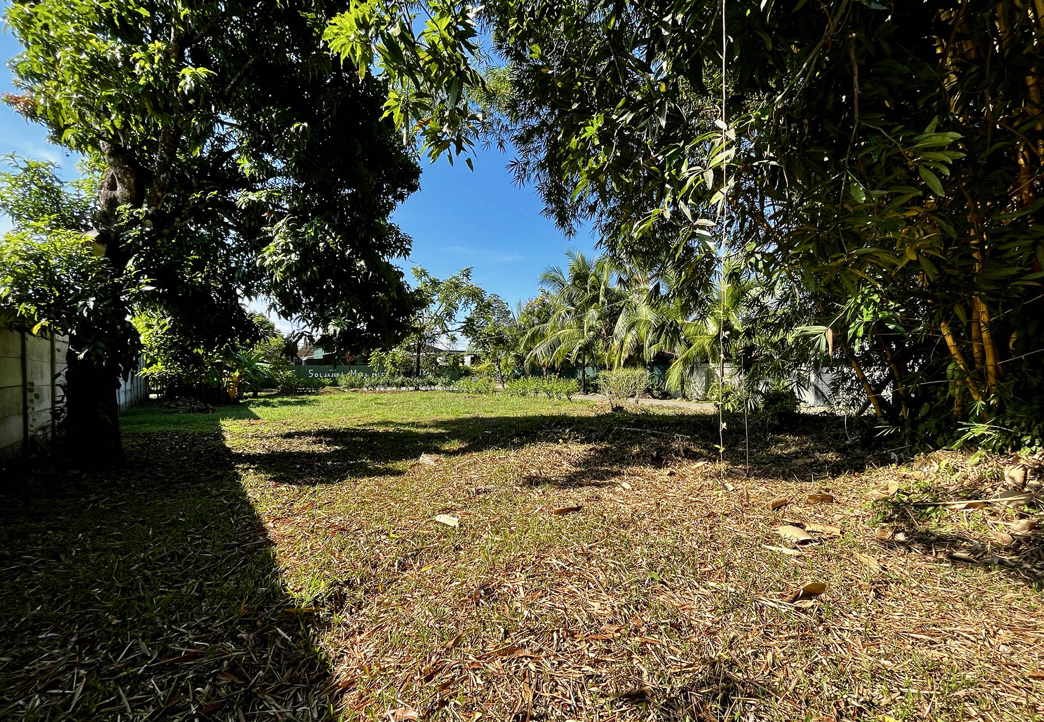 Imagine… you turn down the quiet side street and enter on the north end of the property. You pass under the towering stand of golden bamboo that provides shade throughout the day. A mature mango tree stands in front of the 8-foot privacy wall running the entire eastern property line. This flat land is a blank canvas, and there is ample room for a large custom construction, parking area, and swimming pool. All utilites—electrical, water, internet—run along the property line and easy for your builder to connect. There are no HOA dues.