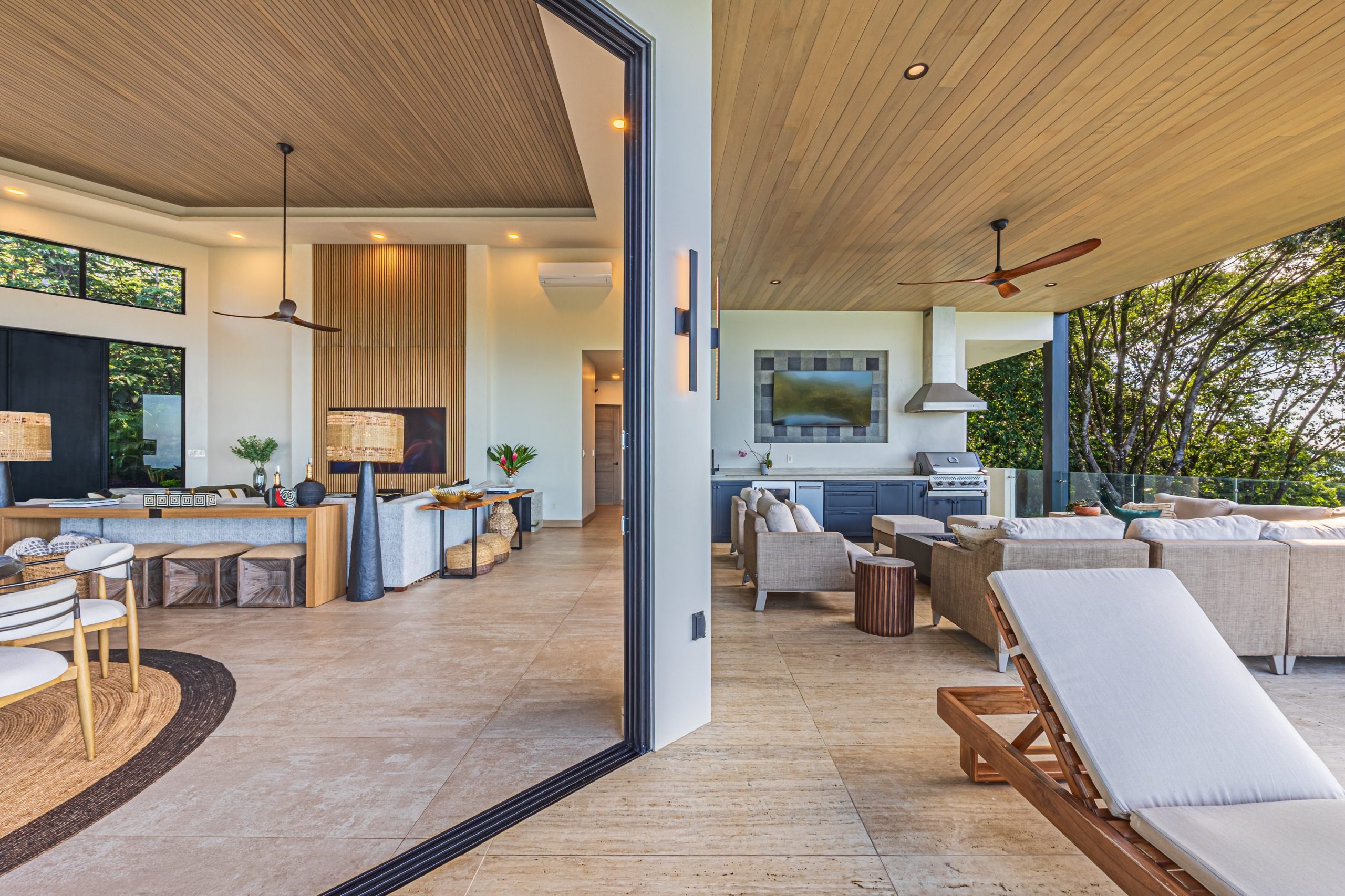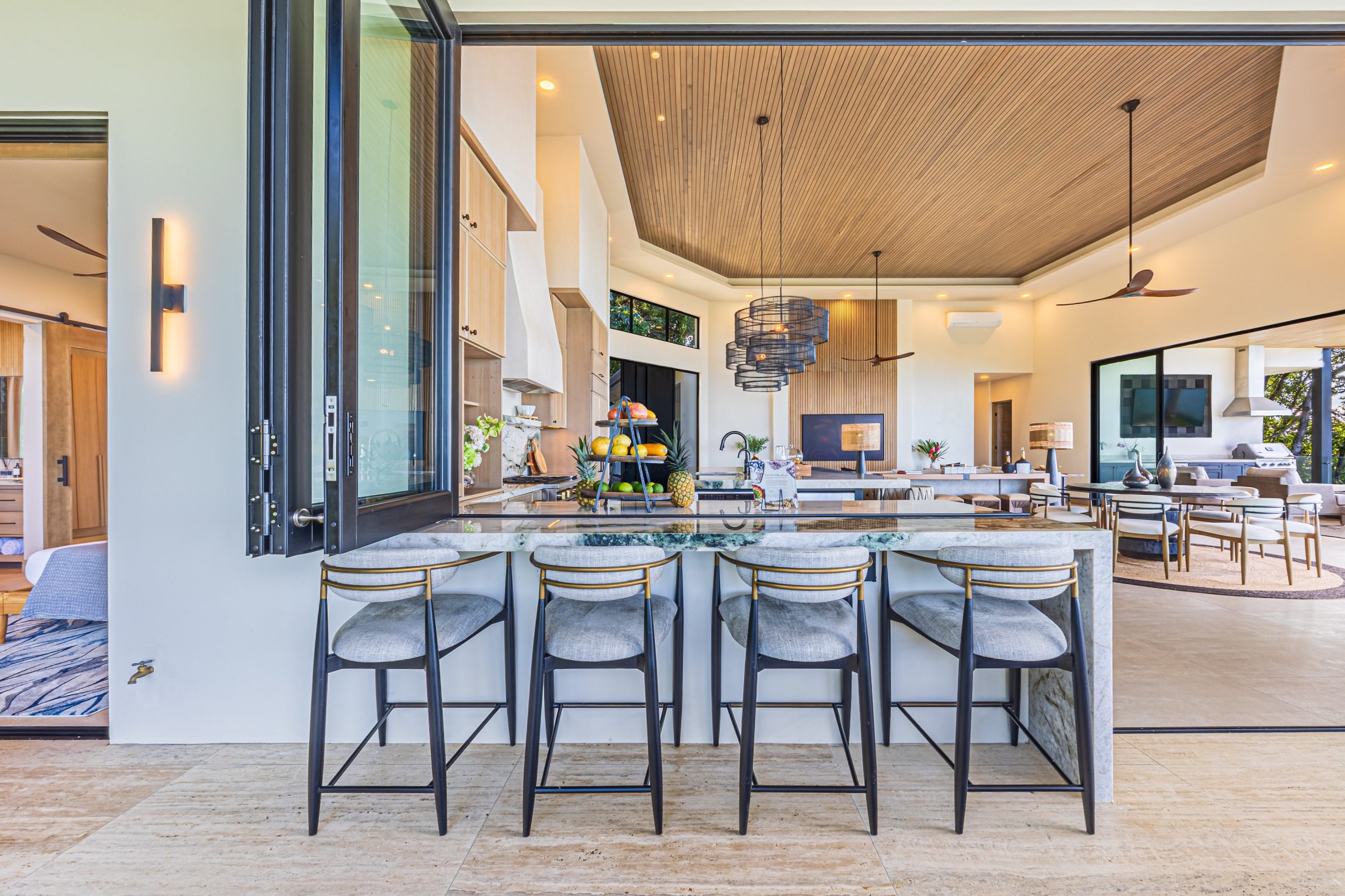 Los principales espacios de la residencia han sido estratégicamente orientados hacia el mar, ofreciendo una de las vistas más impactantes de Costa Rica: la icónica formación de la Cola de Ballena, el rompimiento de las olas sobre las rocas y atardeceres inolvidables que transforman cada tarde en una experiencia única.