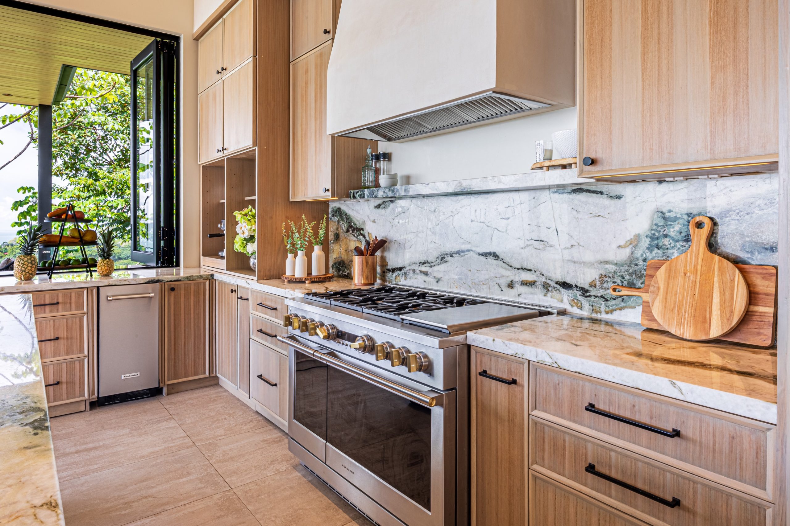 Cocina profesional de alto nivel con vistas panorámicas al mar