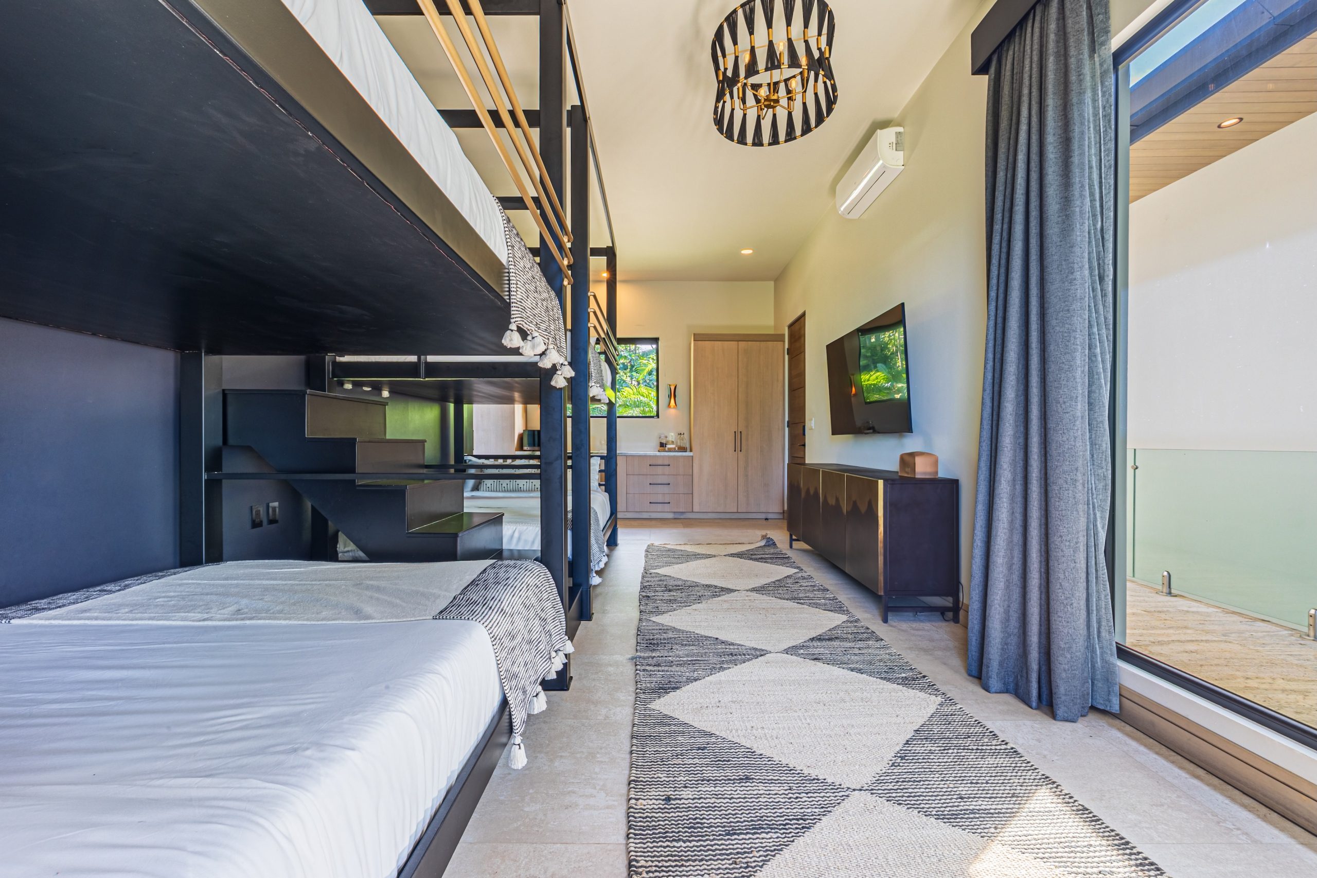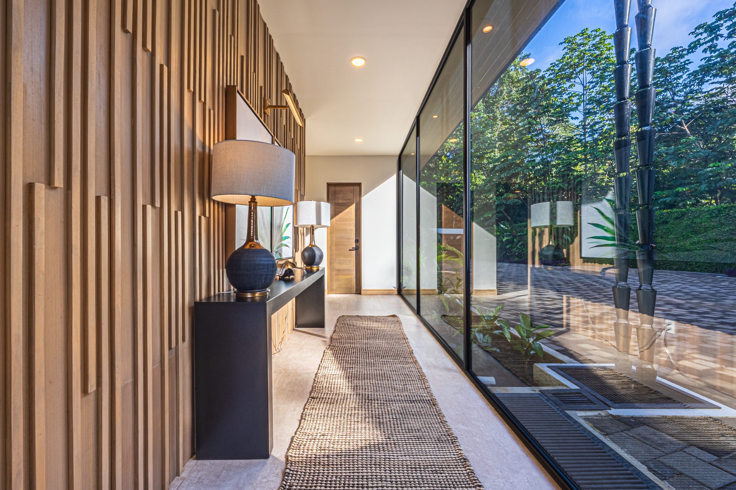 The main spaces of the residence have been strategically oriented towards the sea, offering one of the most impressive views in Costa Rica: the iconic Whale’s Tail formation, the breaking of the waves on the rocks and unforgettable sunsets that transform each evening into a unique experience.