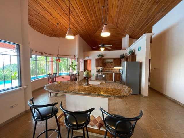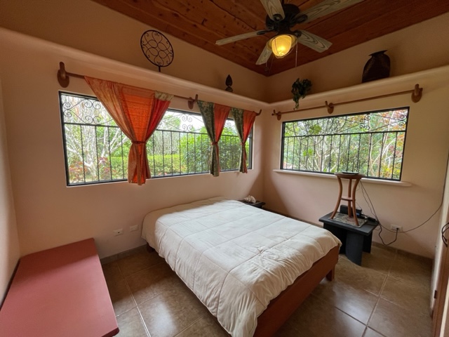La propiedad cuenta con una casa principal de dos dormitorios con piscina infinita, además de una casa de huéspedes independiente de un dormitorio, lo que la convierte en una excelente opción tanto para vivienda familiar como para inversión. Se encuentra a solo 5 minutos en vehículo por un camino de lastre en excelente estado hasta el pueblo de Platanillo, y a 10 minutos por carretera asfaltada hasta Playa Dominical, un reconocido destino de surf con una hermosa playa y un ambiente vibrante.
