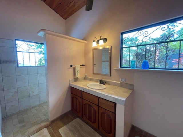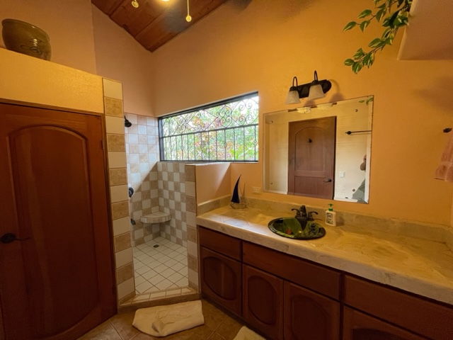 The guest house has independent access from the street, though it can also be connected to the main house. It includes a spacious covered carport, a locked storage room for tools that can also accommodate a vehicle, a kitchen and living area, one bedroom, a full bathroom, and a comfortable walk-in closet. It also enjoys beautiful ocean views and offers sufficient space for the construction of an additional pool.