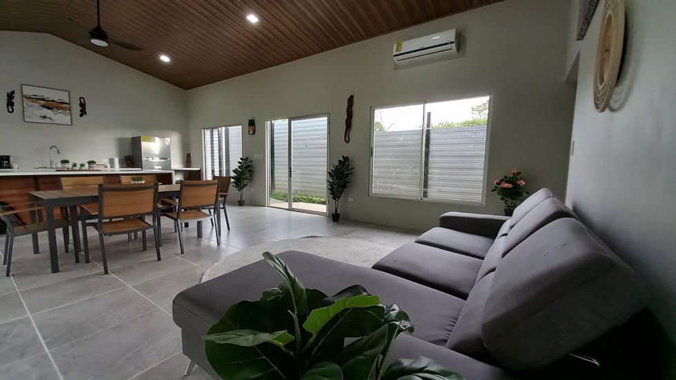 Situated in the beautiful hills surrounding Tinamastes, this 2,500 m² property stands out for its easy access and its two independent buildings. On the upper part of the land sits the main house, a cozy single-story residence with 1,054 square feet, offering 2 bedrooms and 2.5 bathrooms. The fully equipped living room and kitchen connect to a spacious open corridor, ideal for relaxing, enjoying morning coffee, and observing local wildlife.