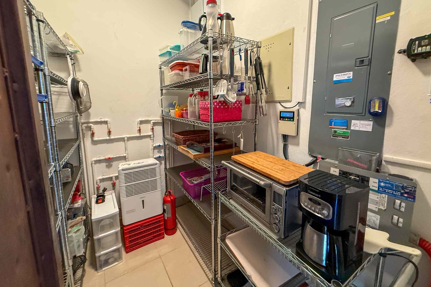 El rancho: Un amplio rancho completamente cerrado con mosquiteros, decorado con un mural personalizado y equipado con un gran ventilador, ofrece un espacio cómodo y libre de insectos para el entretenimiento. Además, incluye amplios armarios para almacenamiento de herramientas y otros artÃculos.
